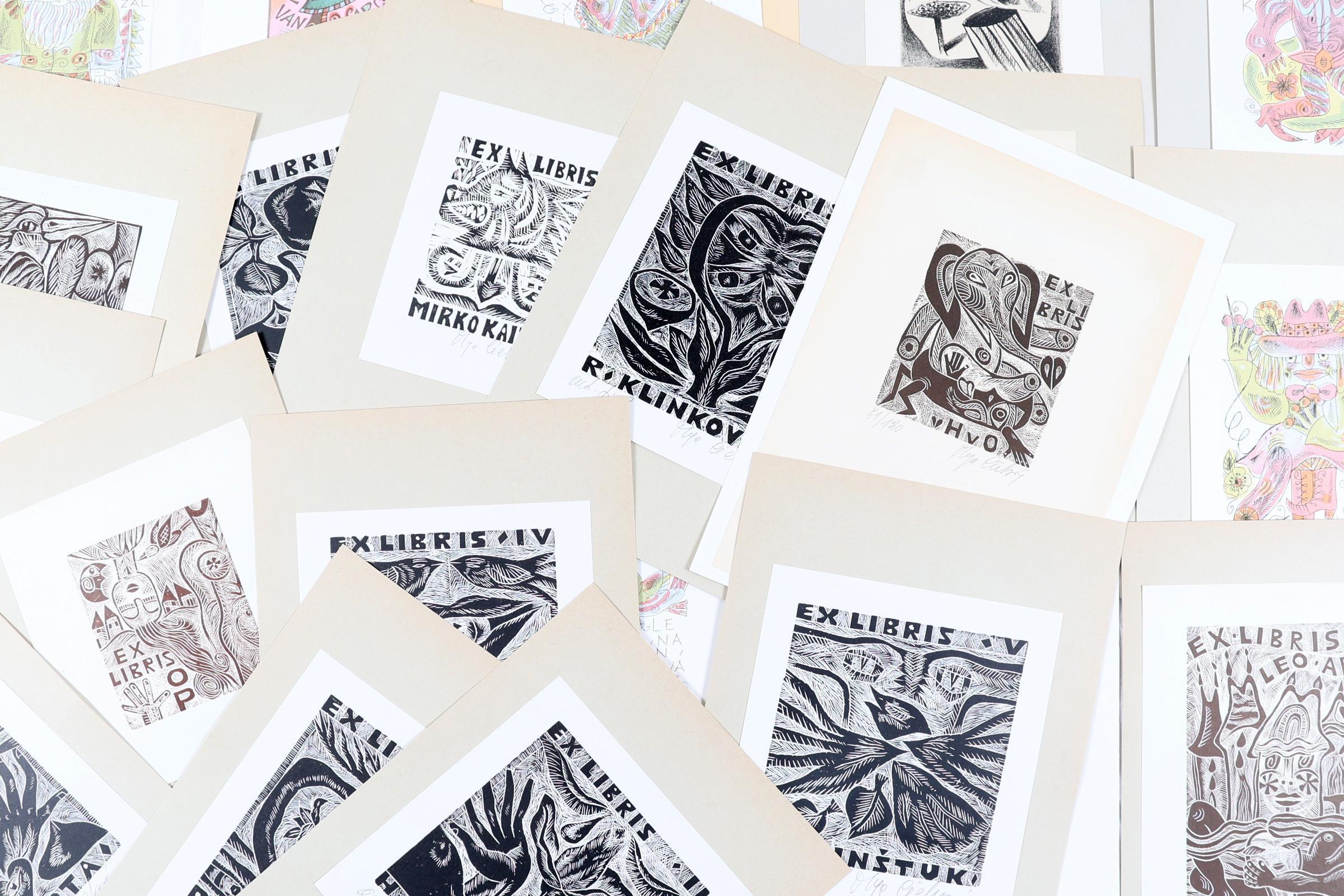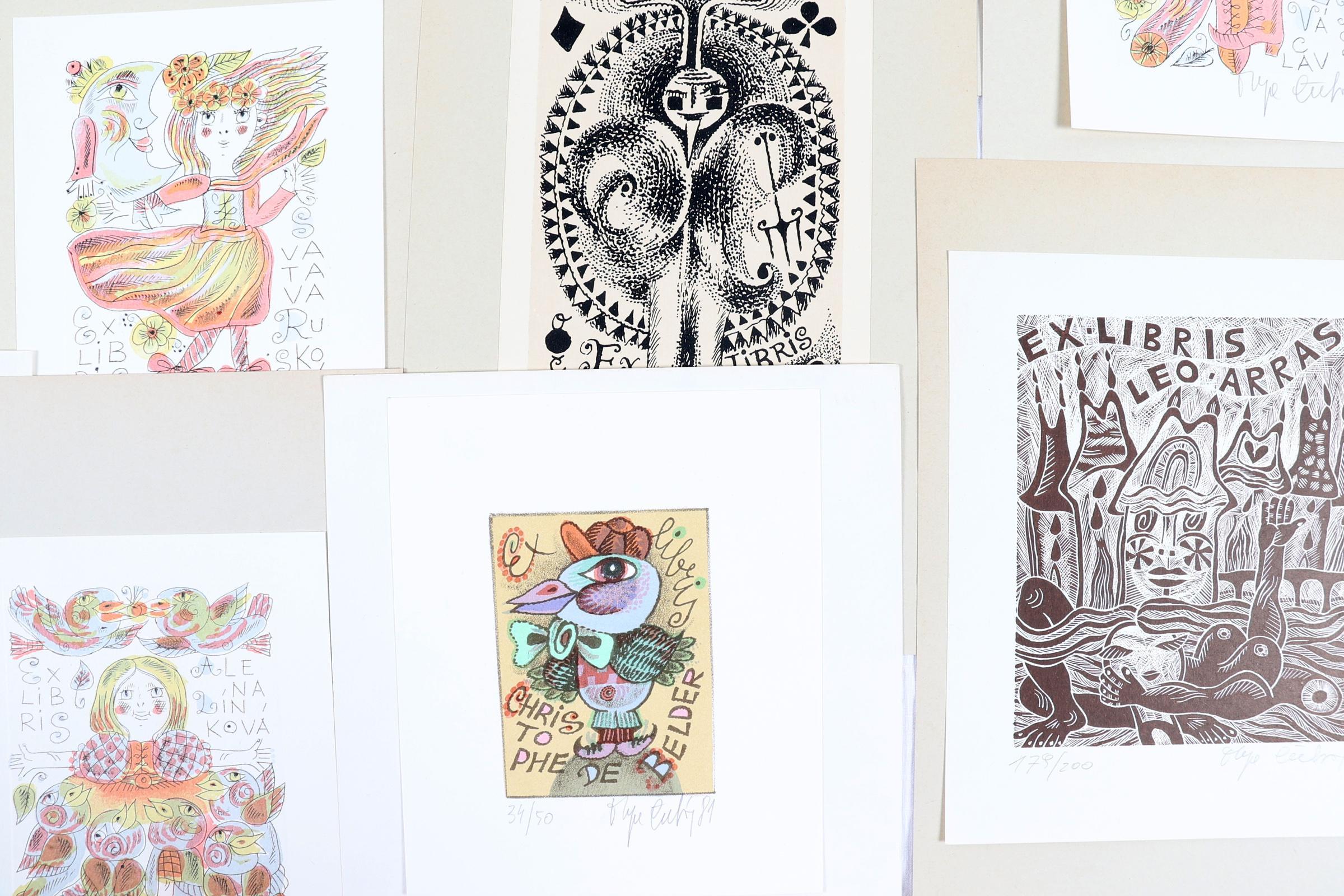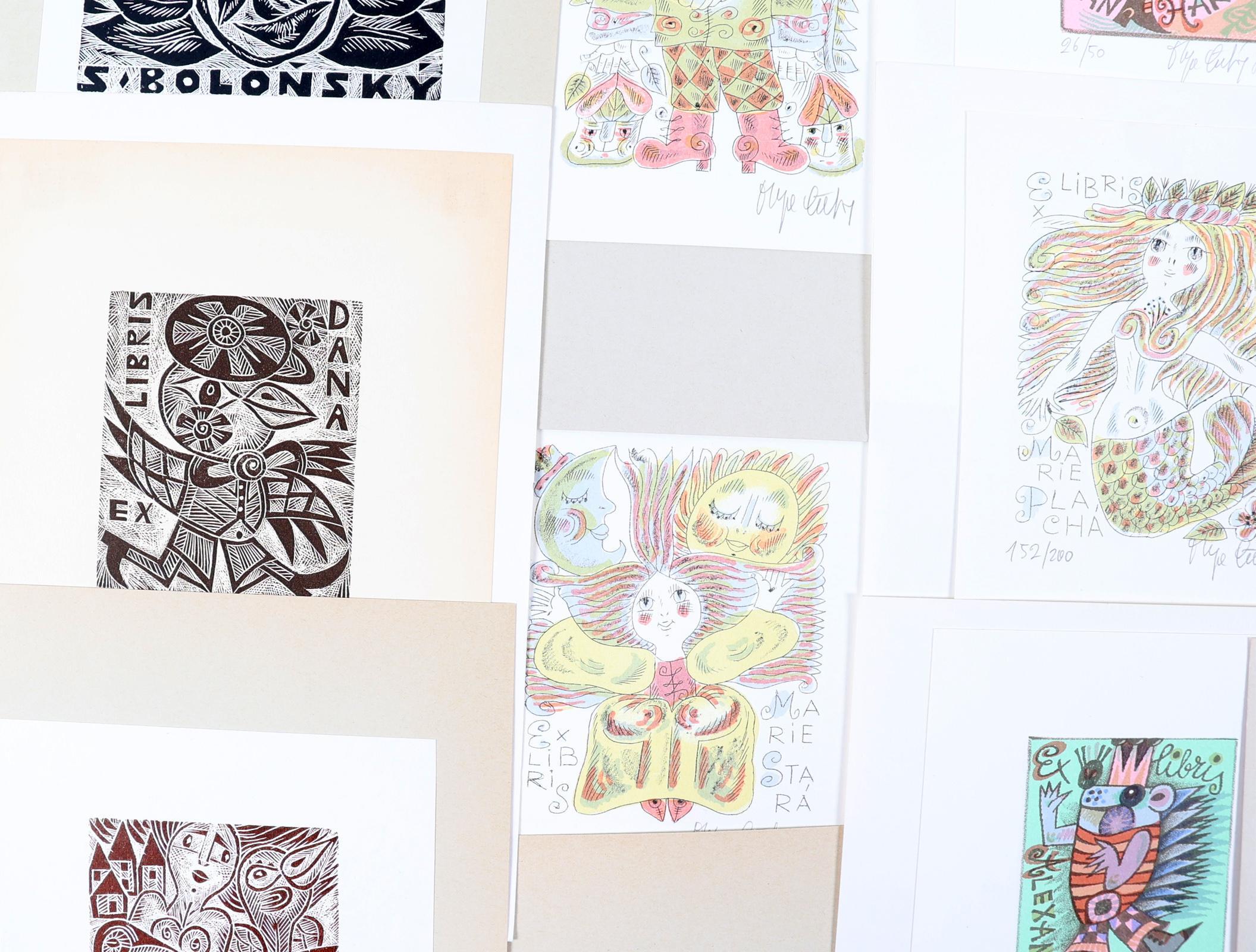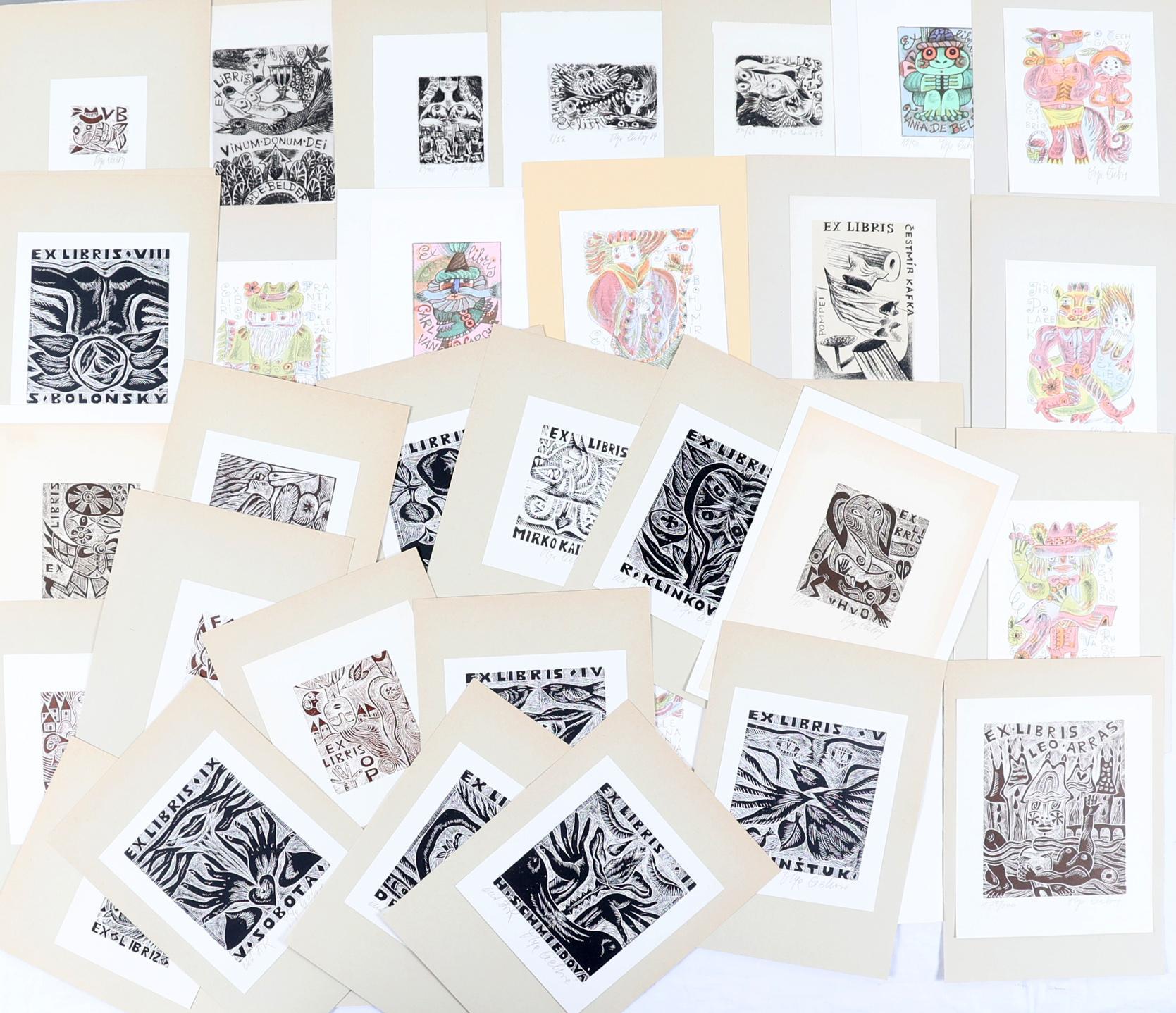 Cechova, O., plm. 39 exlibris, diverse technieken (19 x houtgravure, 16 x litho, 4 x diepdruk). Grotendeels gesigneerd. Opgeplakt