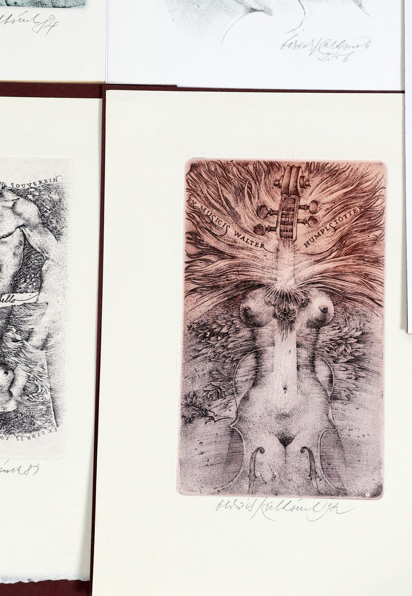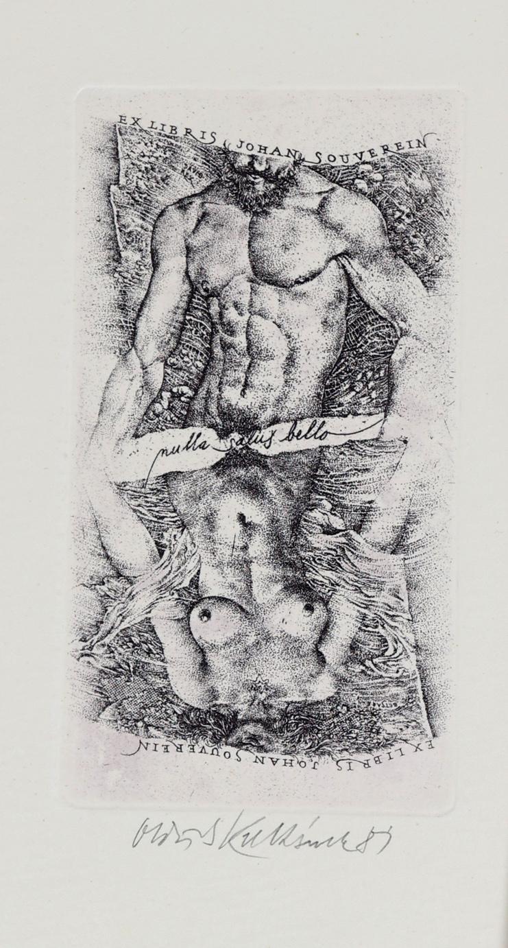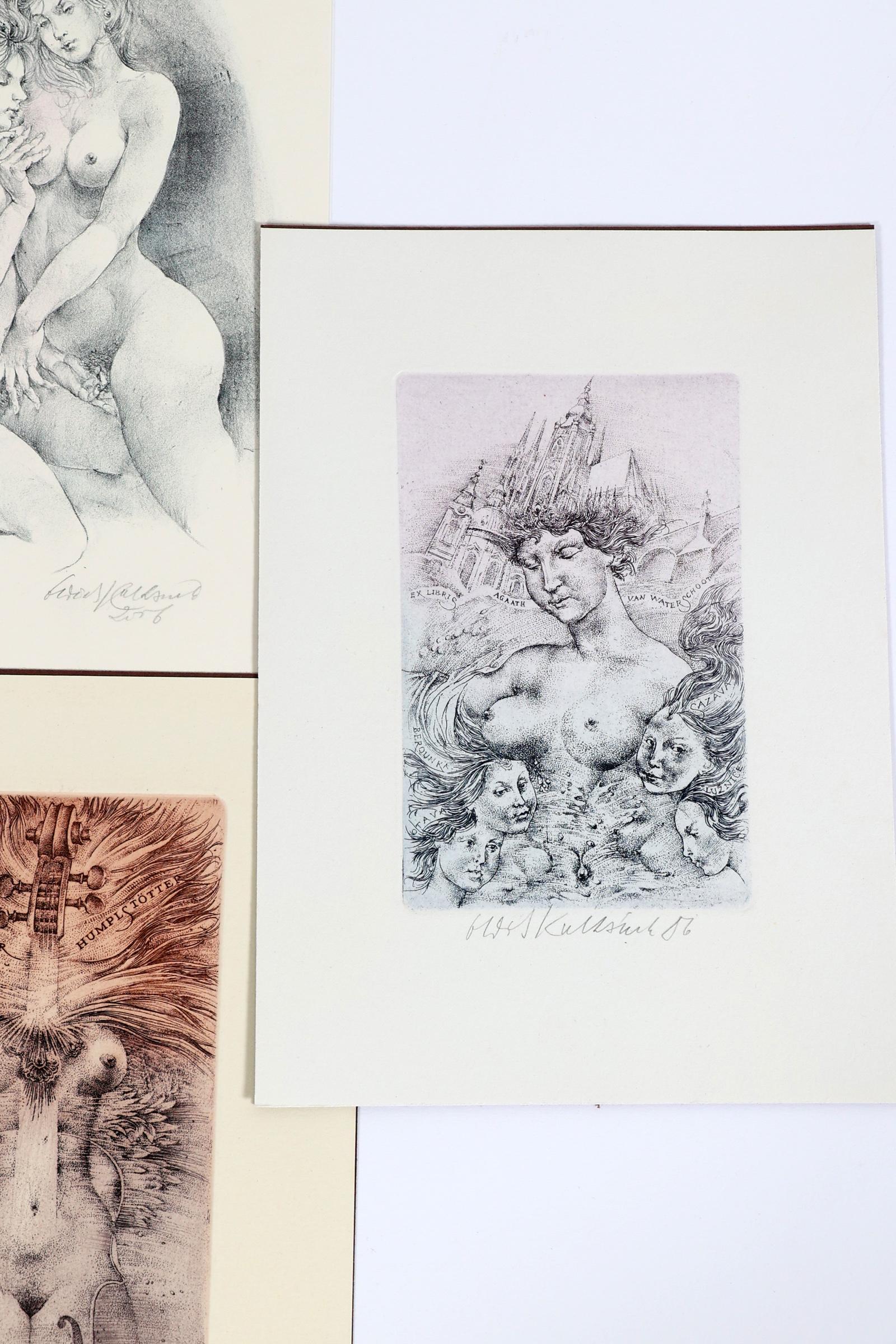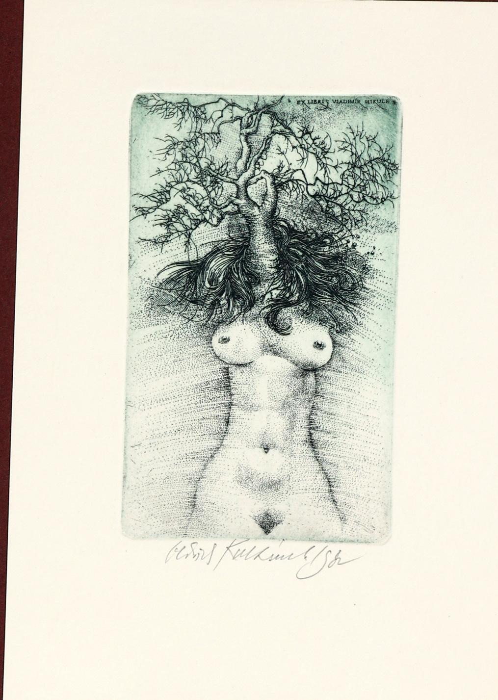 Kulhanek, O., 7 exlibris, 5 x diepdruk, 2 x litho. Thema: naakt / erotiek. Voor: Blum, Smith, Mikule, Souverein, Humplstotter, Van Waterschoot. Alle gesigneerd.