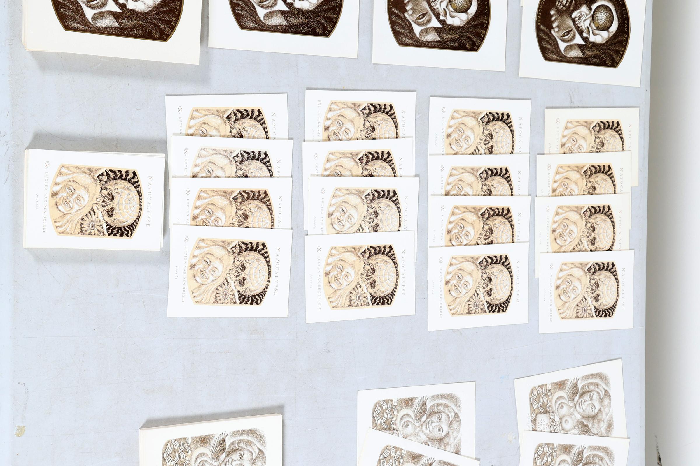 4) voor V.d. Briele, authorship, man with pan and paper, 65 stuks, gesigneerd, litho/2.