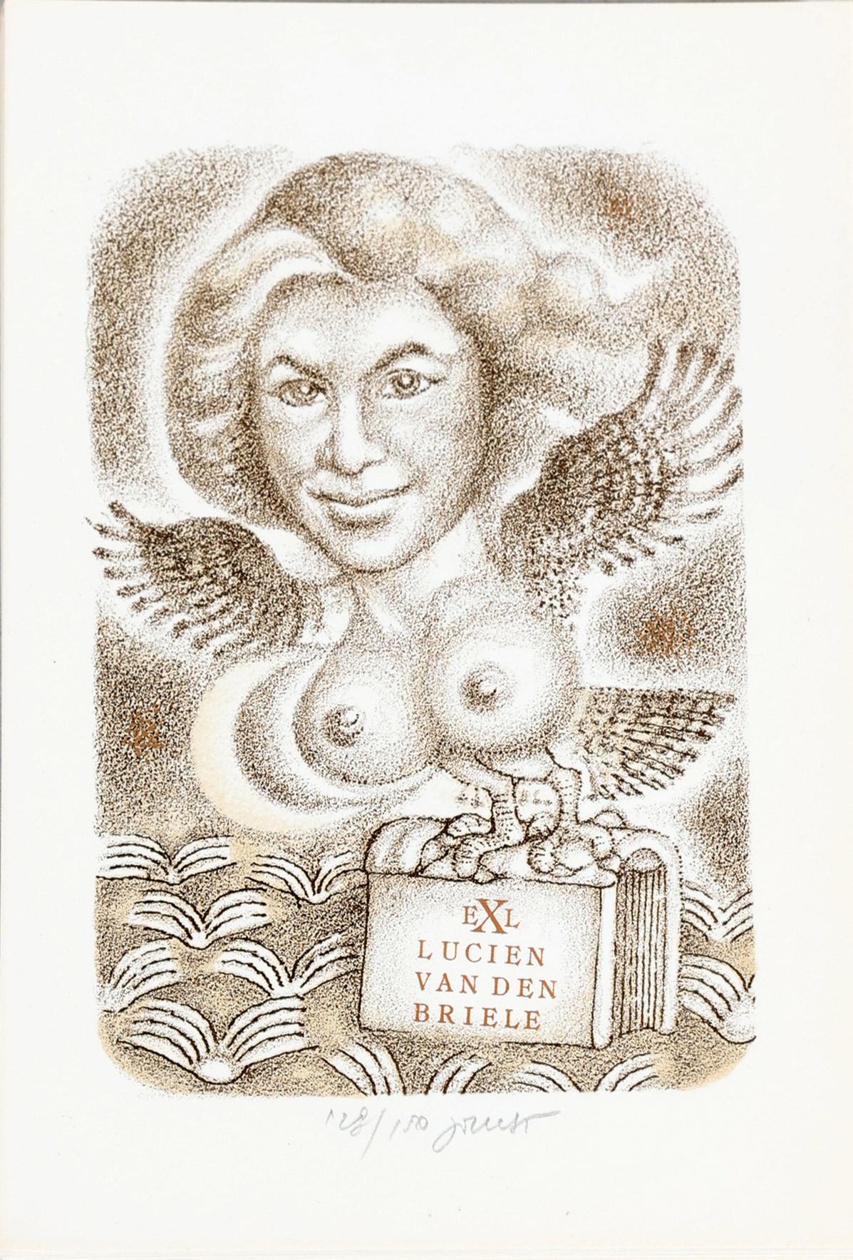 1) voor V.d. Briele, naakte vogelvrouw, 49 stuks, genummerd en gesigneerd, Litho/2,