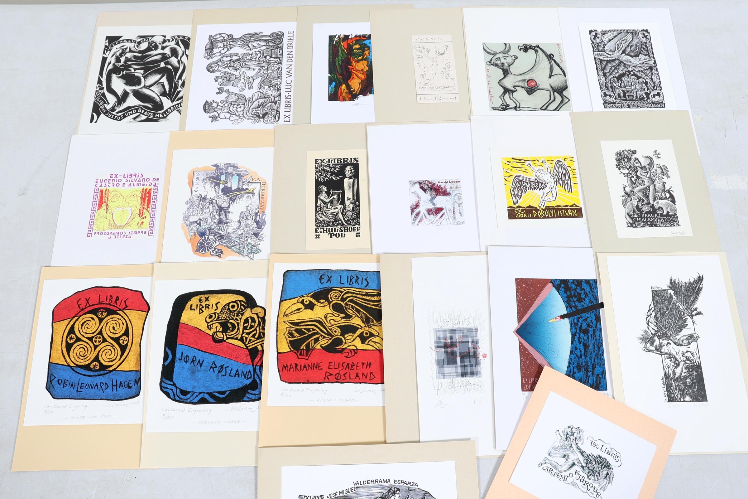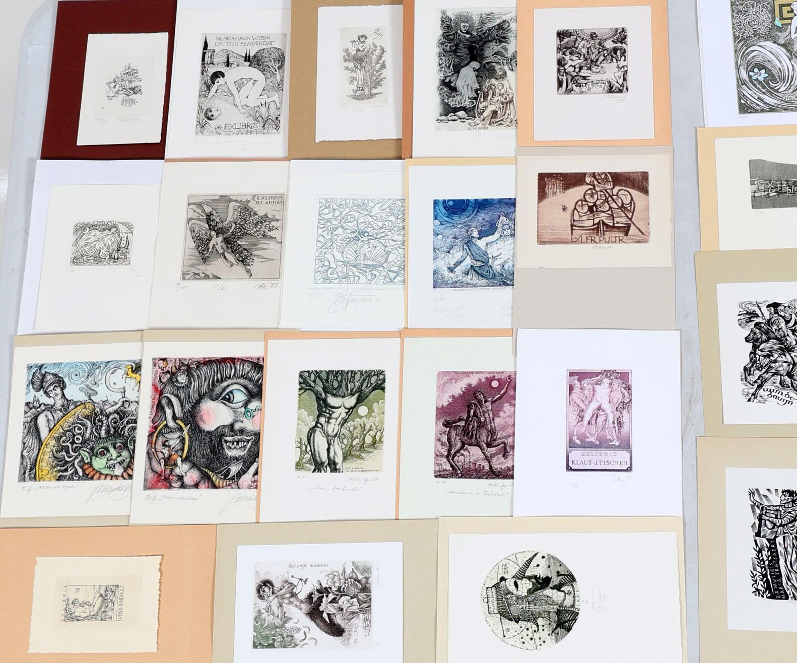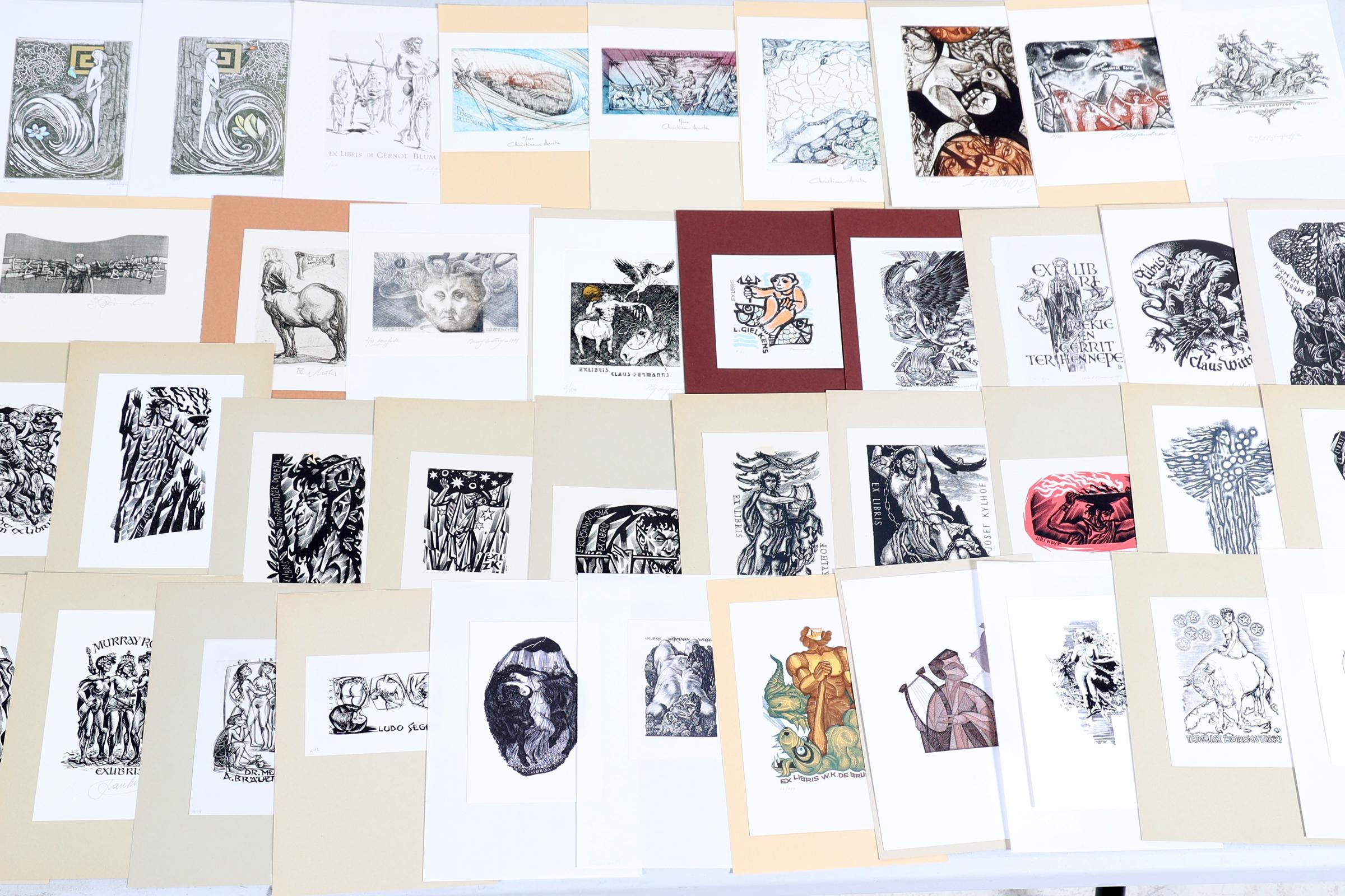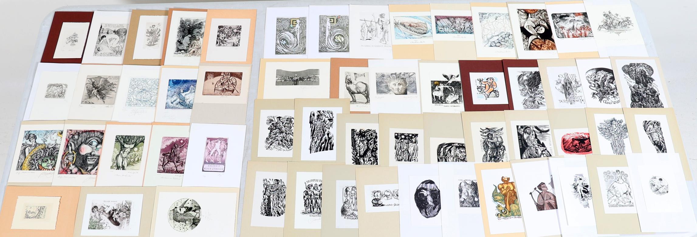collectie van plm. 75 exlibris, thema: mythologie. Diverse technieken, plm. 30 x diepdruk, rest hoogdruk. Deels gesigneerd, opgeplakt. O.a. Pauwels, Benenson, Lazarov, Pugachevsky, Didelyte, Bednarek, De Koster, Martinescu, Weidenhaus, Zwiers, Kvartelny, Knap, Kisza, Denisenko.