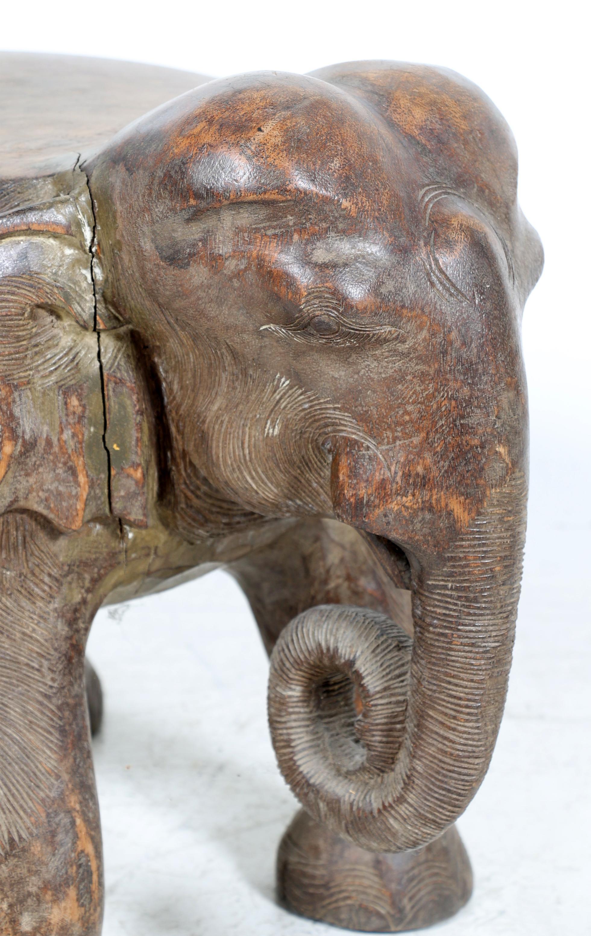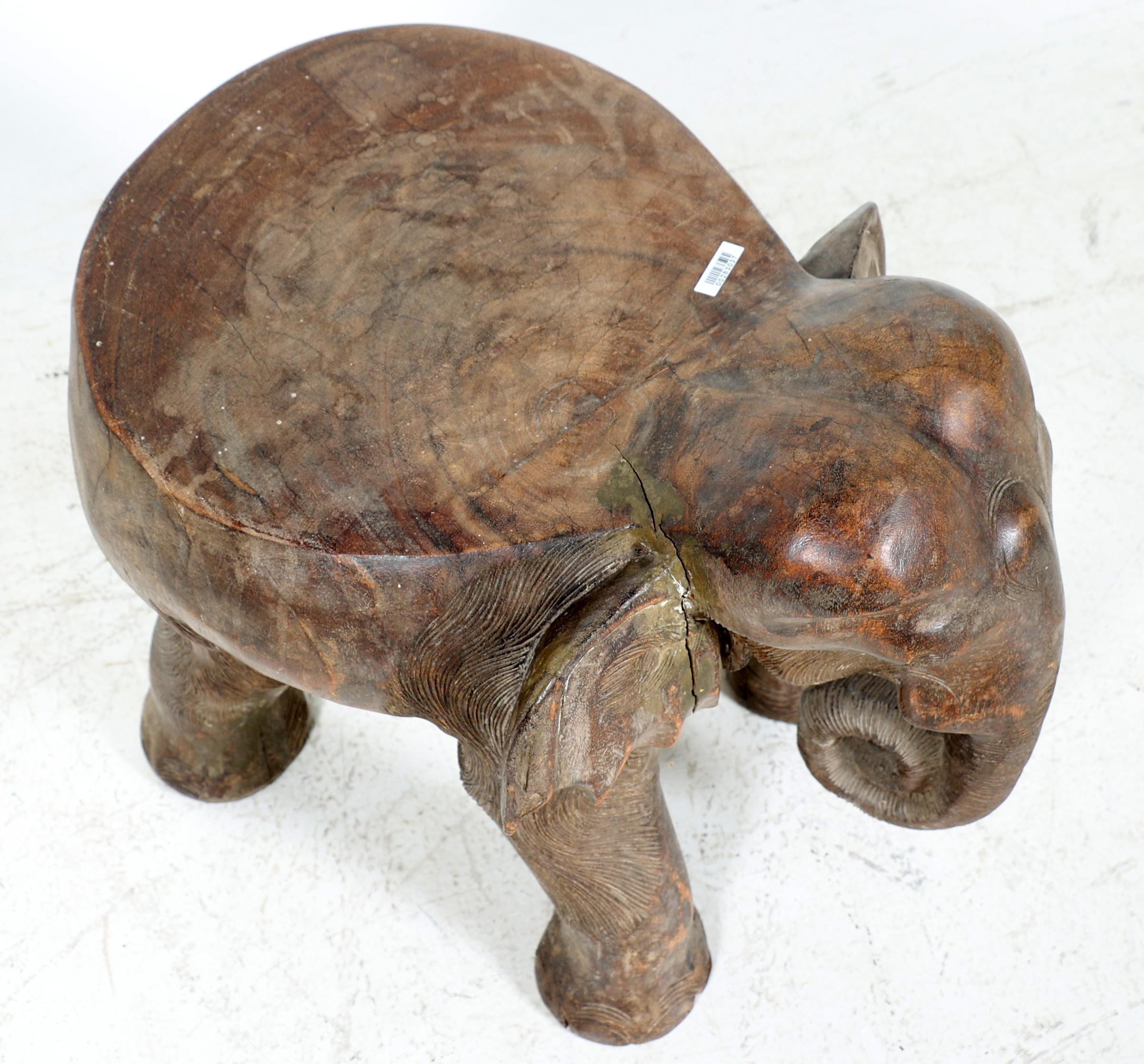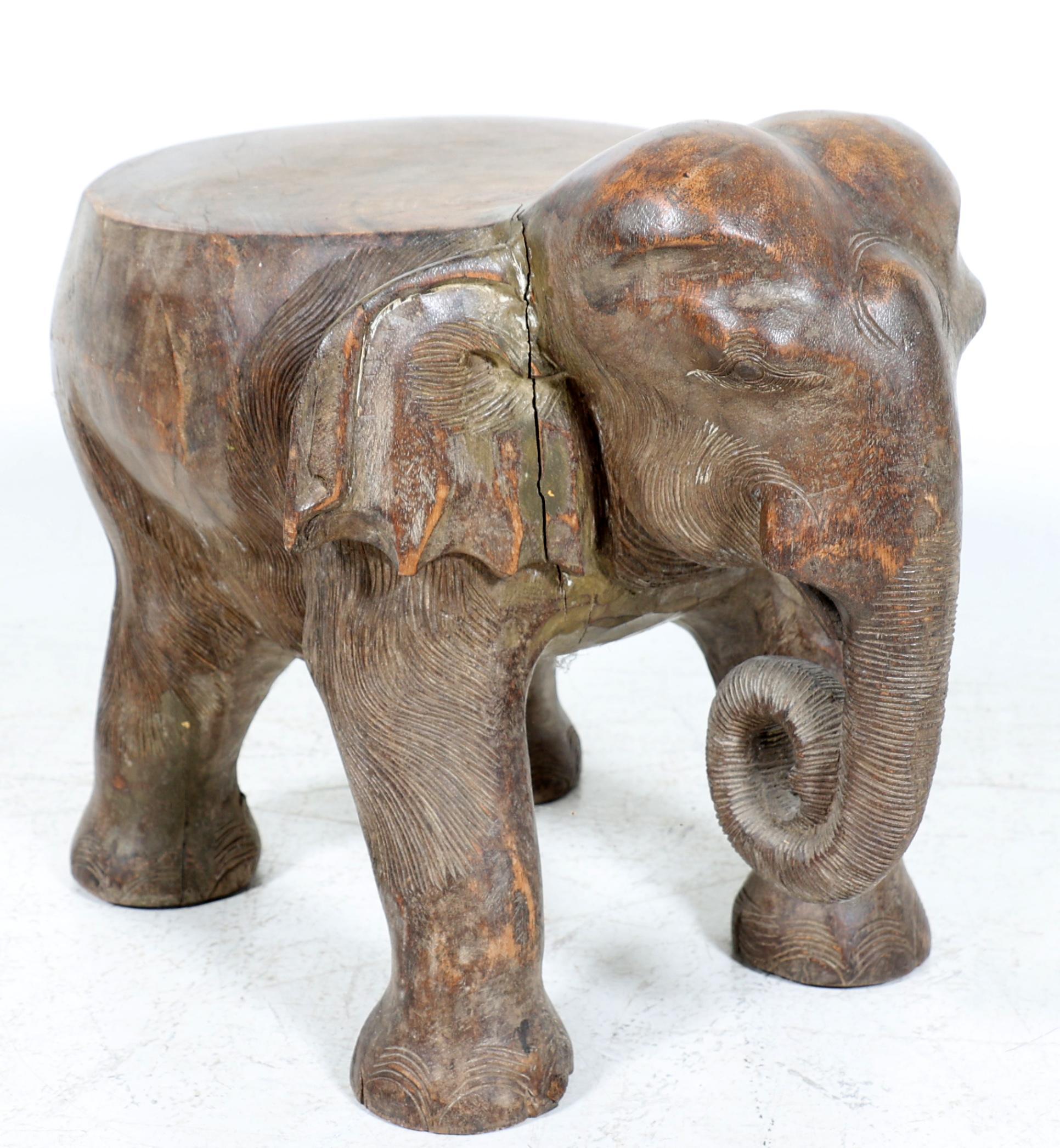 Houten krukje i.v.v. een Olifant, h.41 cm.