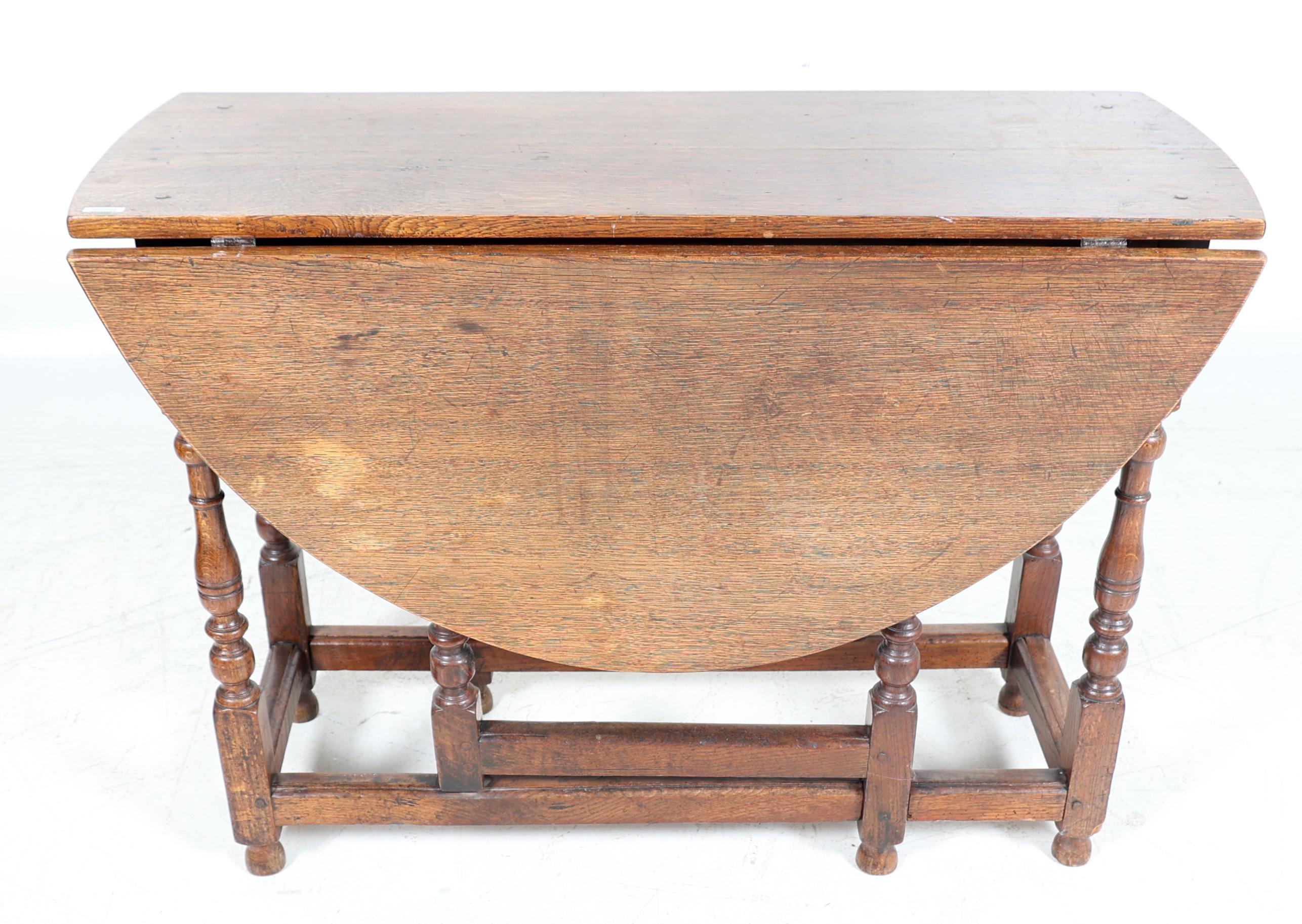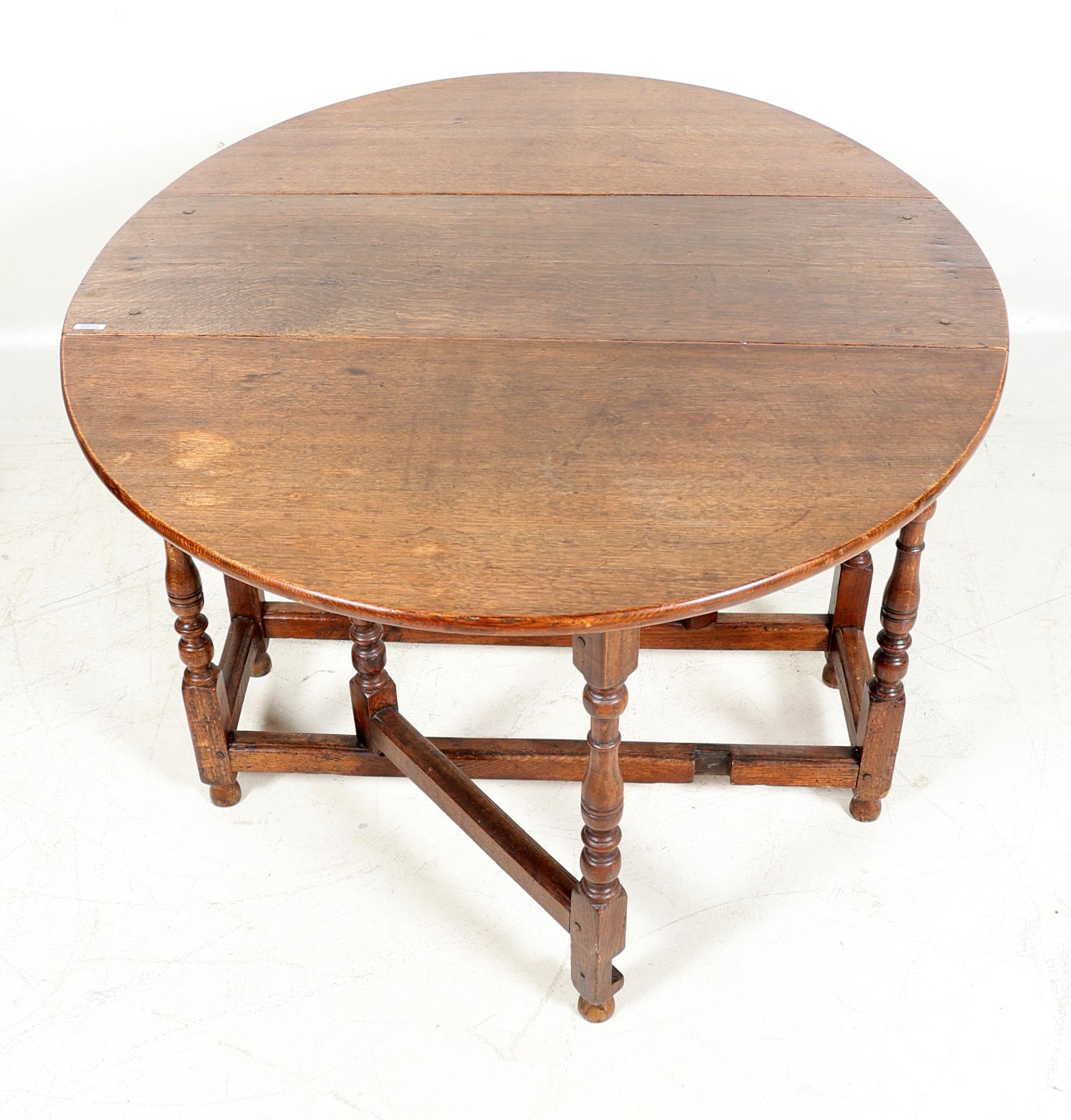 Eikenhouten gate-leg tafel met getorste poten, h.74 x b.101 x d.37 of 2x 43 cm. erbij