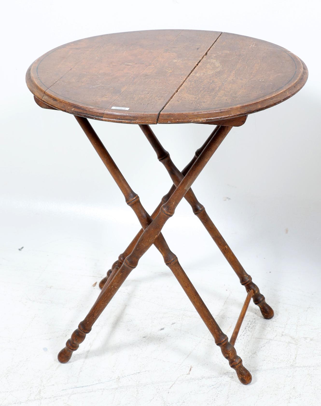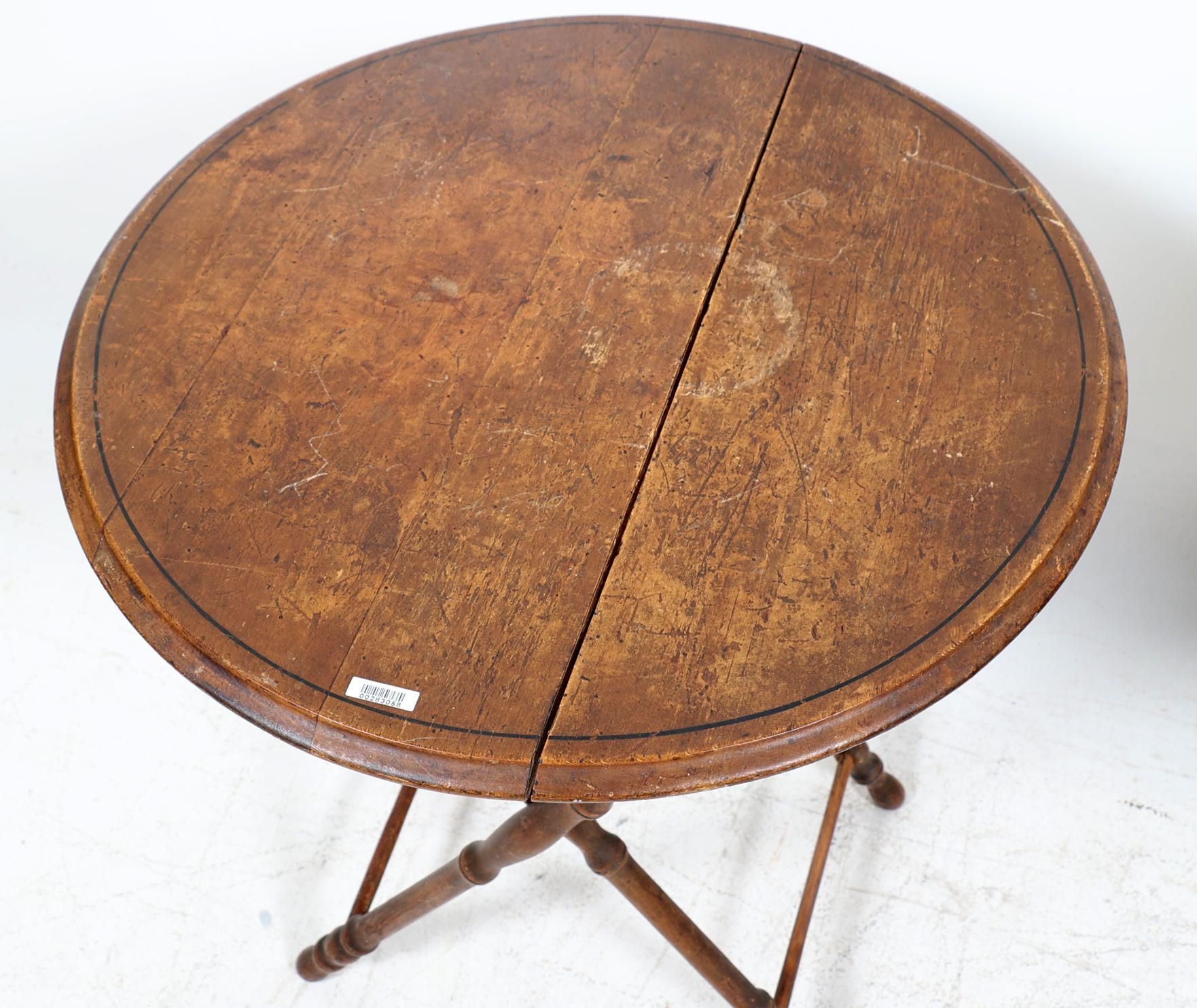Opklapbare eikenhouten bijzettafel, h.68 x diam.58 cm.