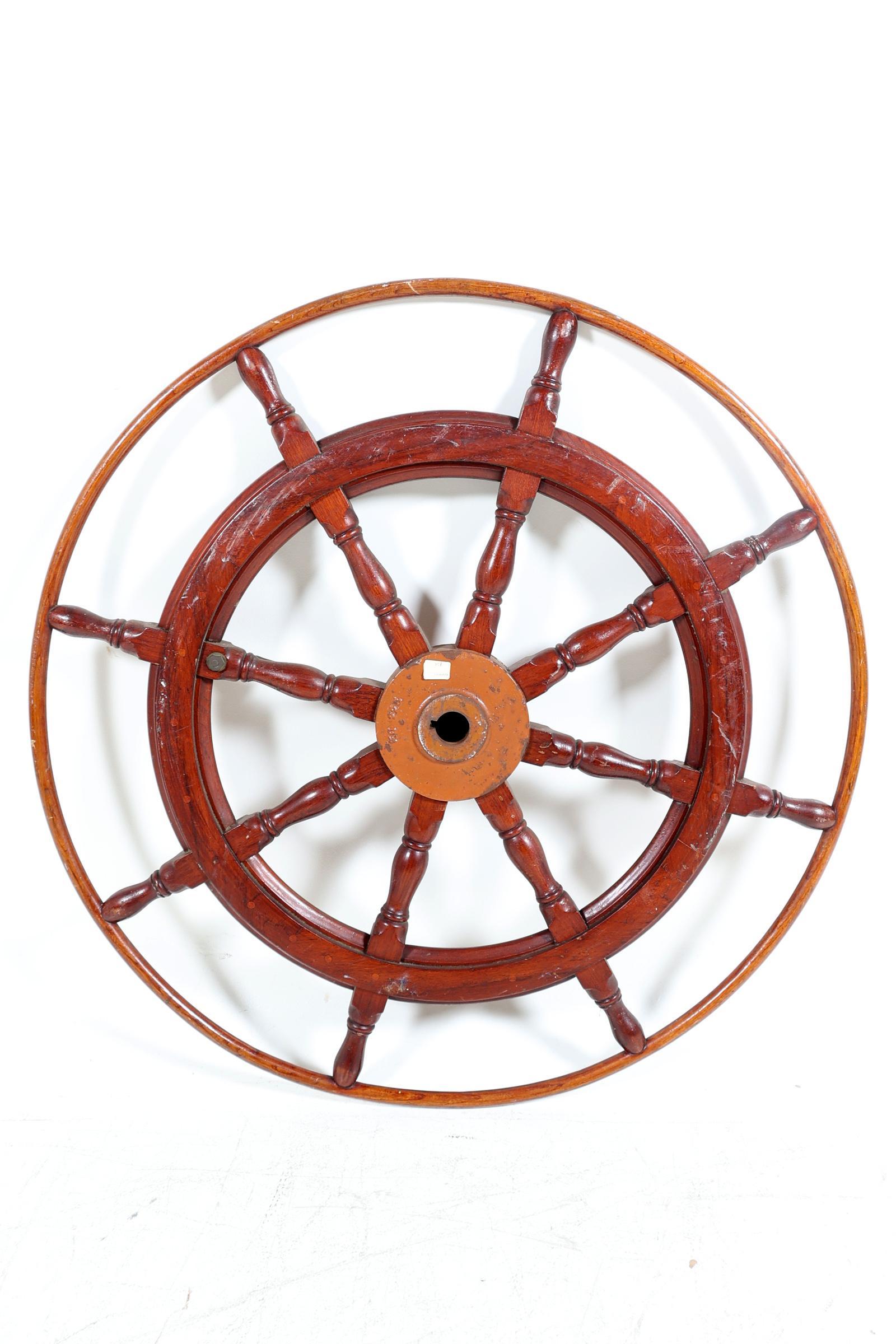 Oud houten scheepsstuurwiel, diam.130 cm.
