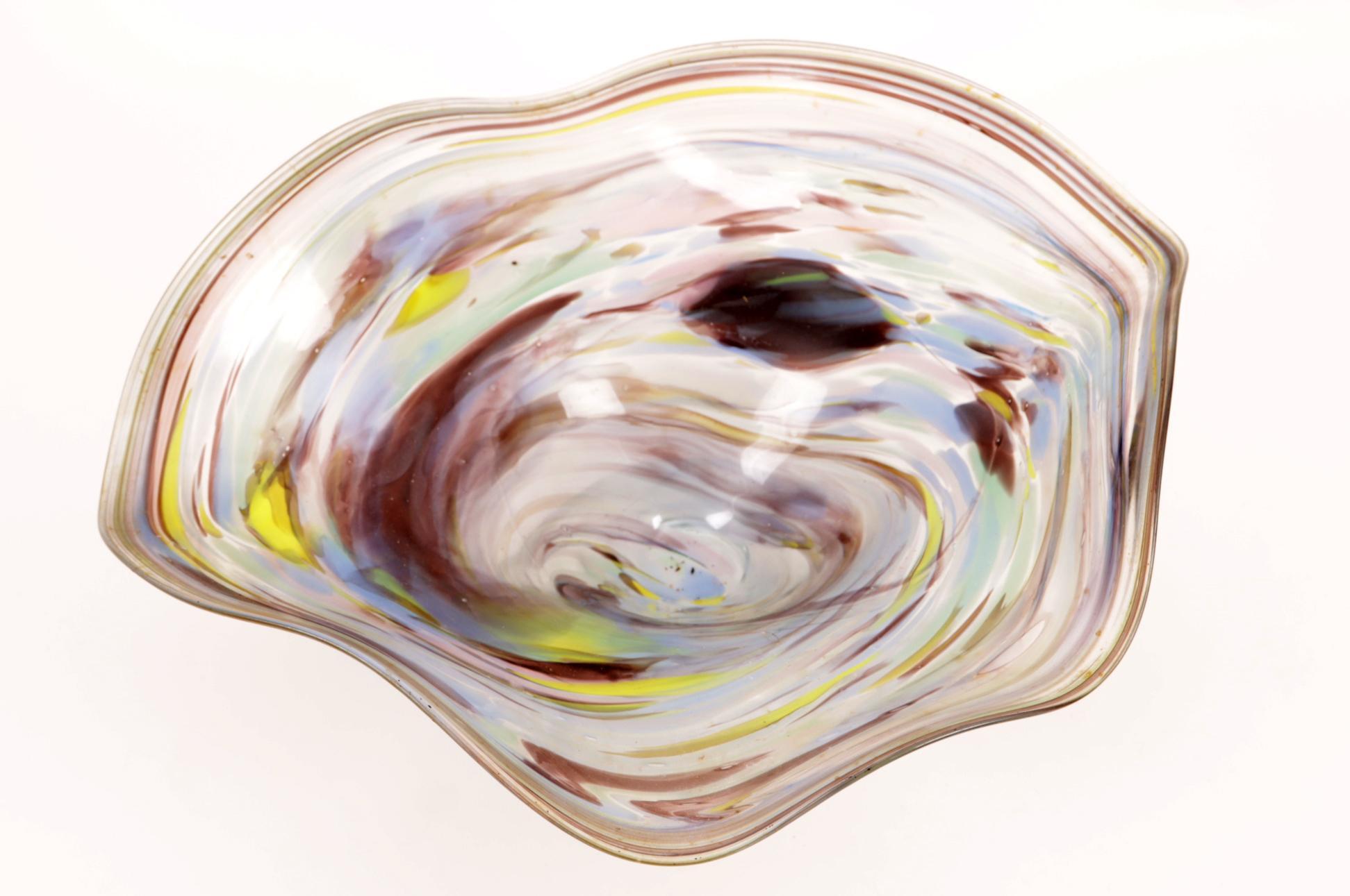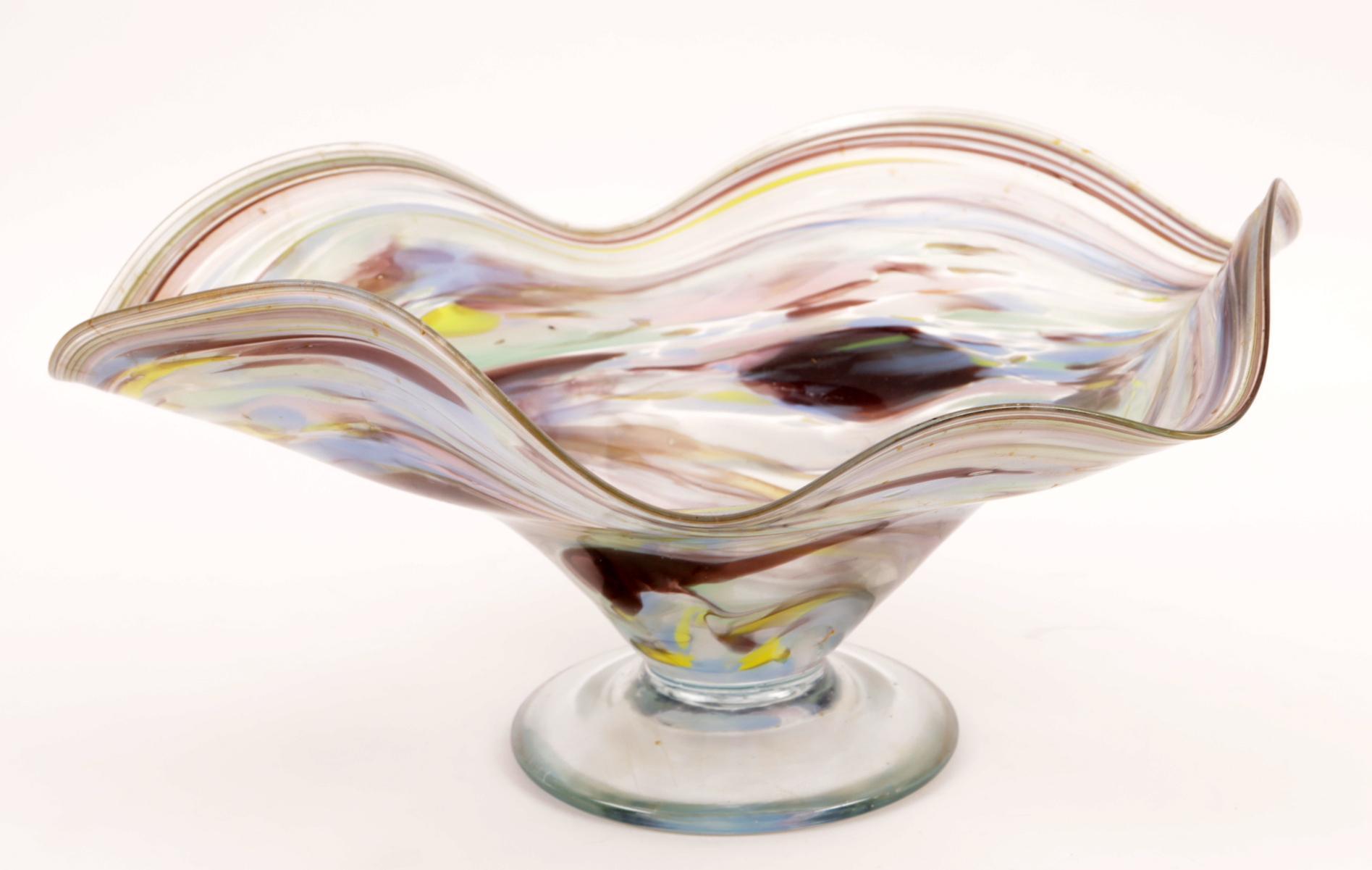 Meerkleurige glazen sierschaal, h.19 x b.41 cm.