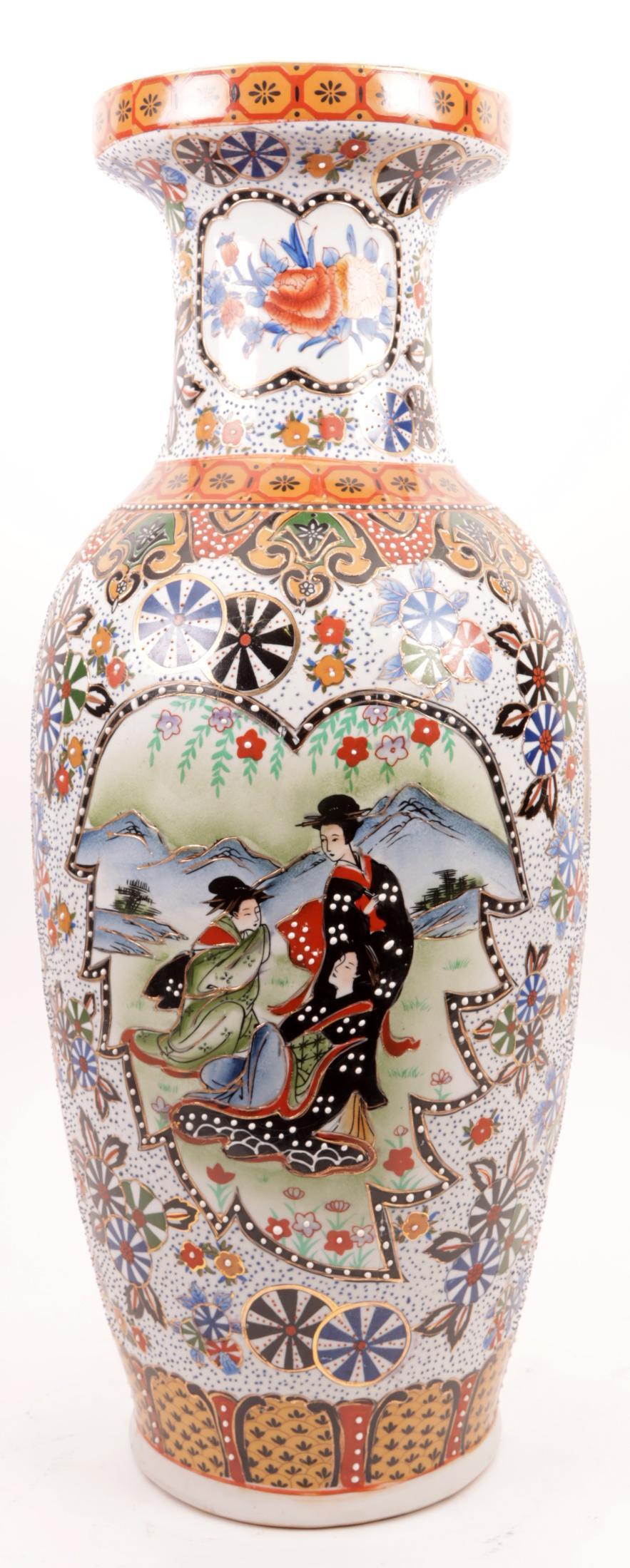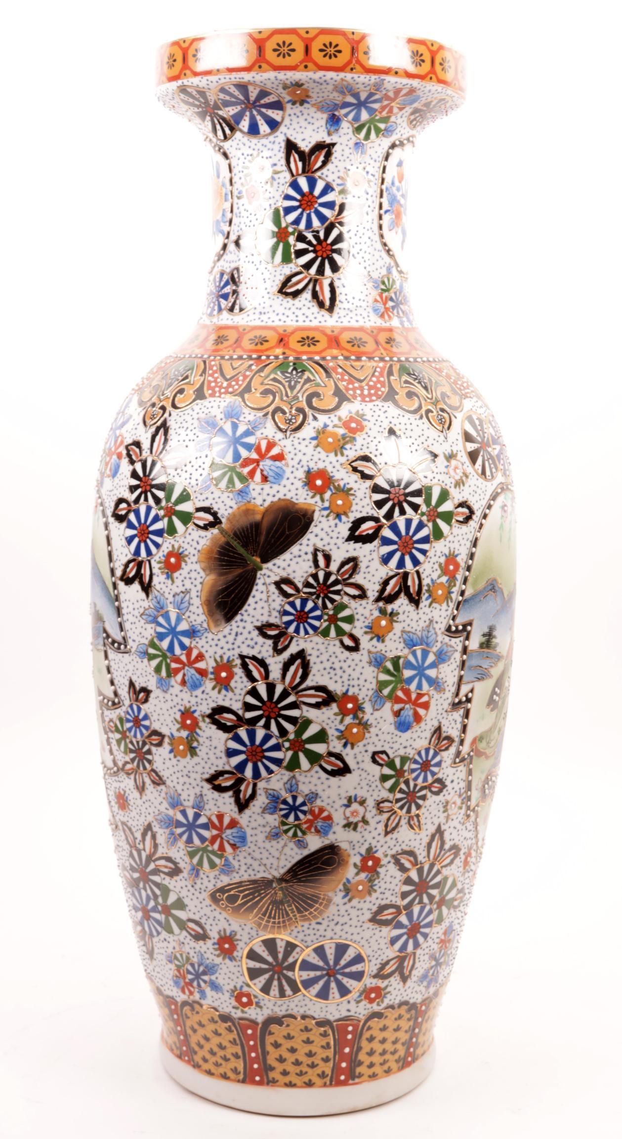 Gepolychromeerde Chinees porseleinen vaas, h.61 cm.