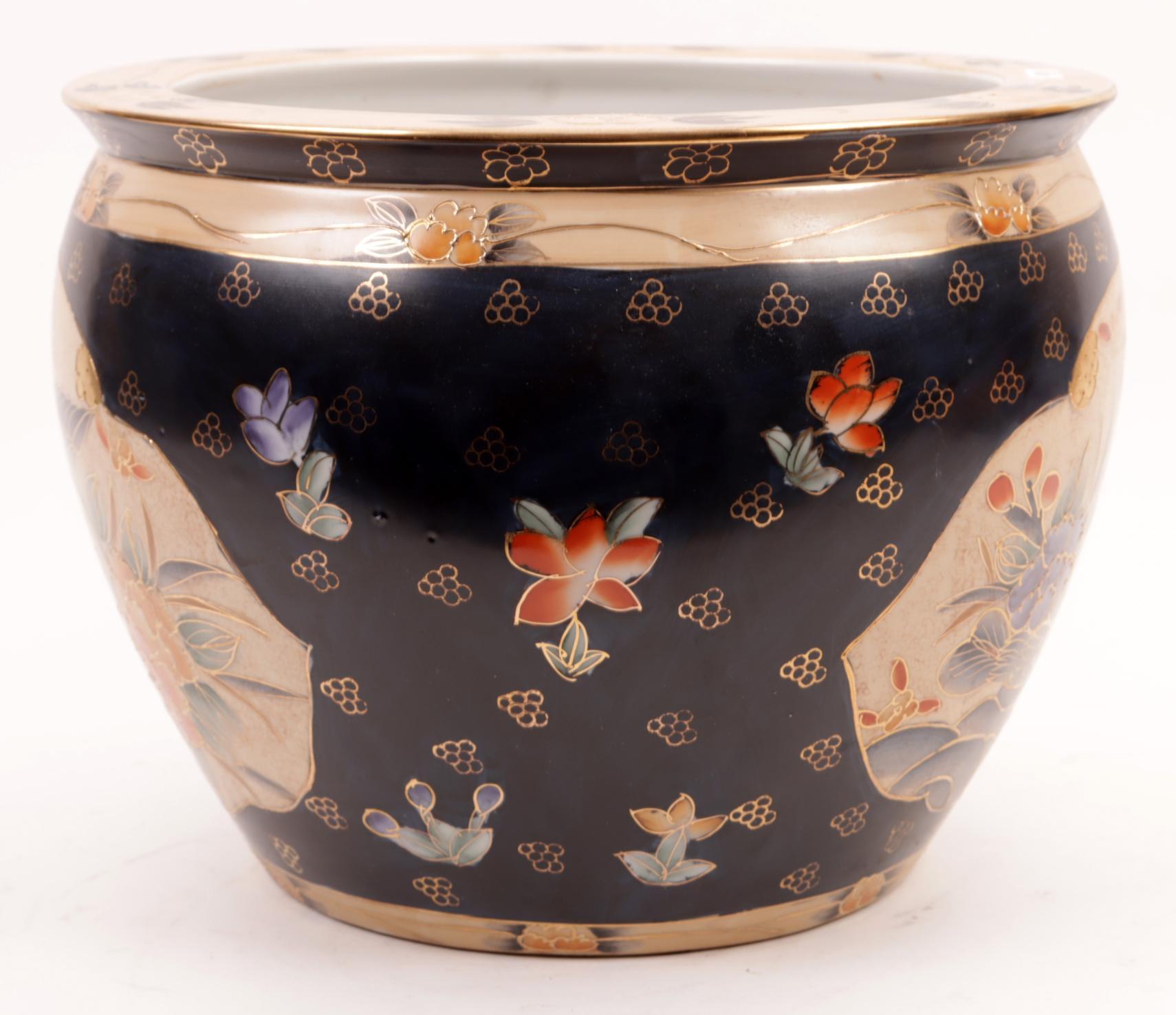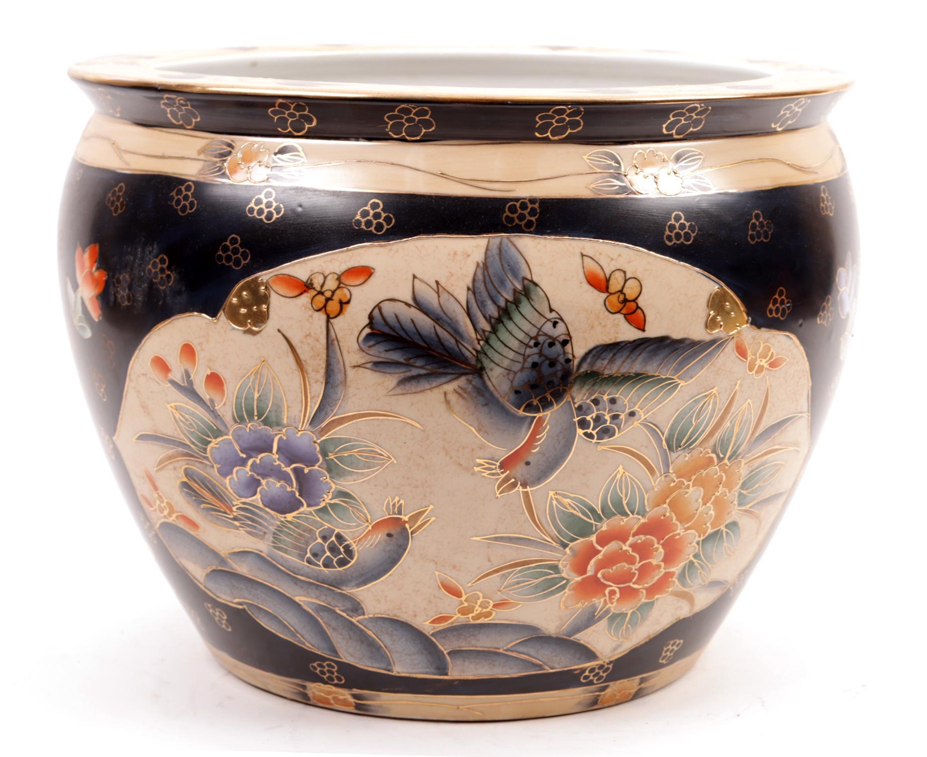 Gepolychromeerde Chinees porseleinen cache pot met decor van vogels en bloemen, h.25 cm.