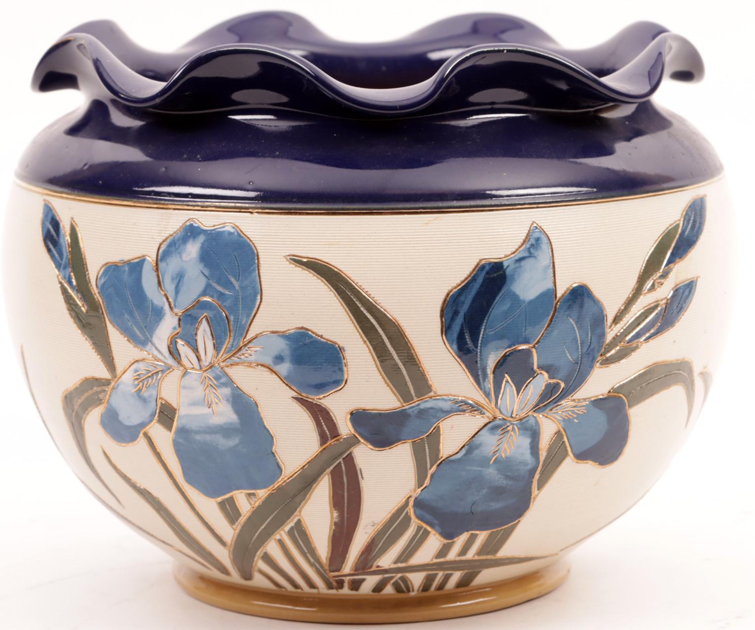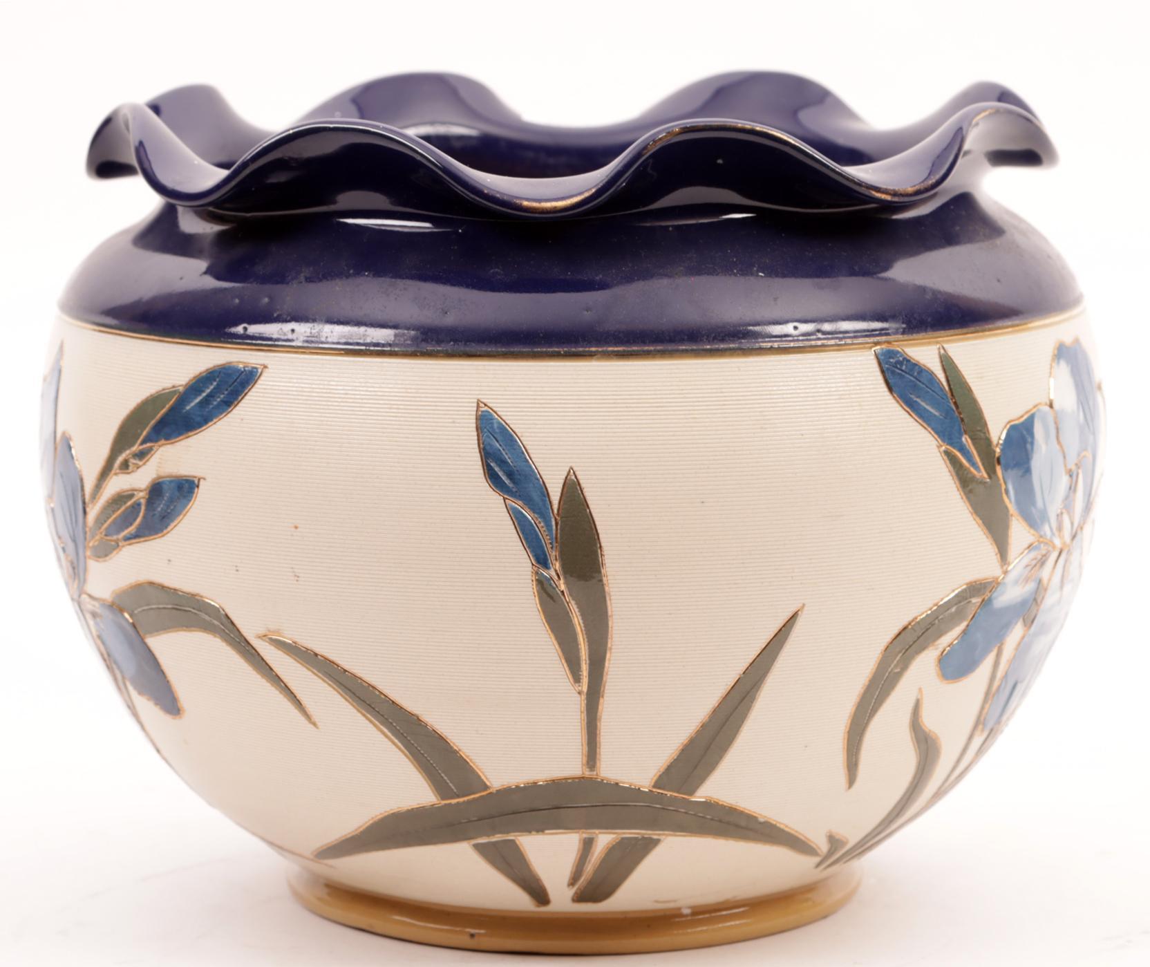 Engelse Langley Ware cache pot met decor van bloemen, h.21 cm.