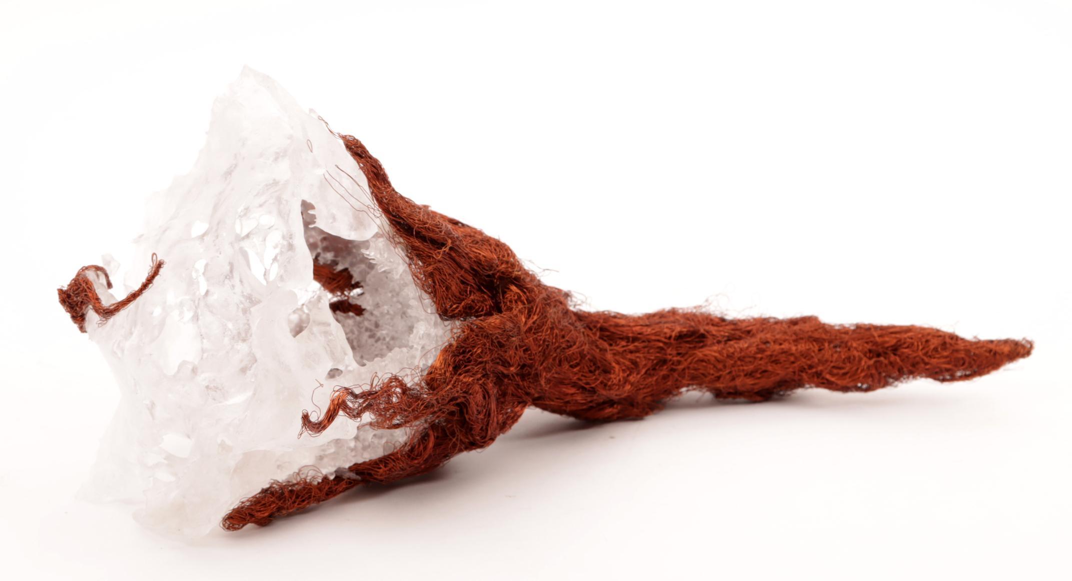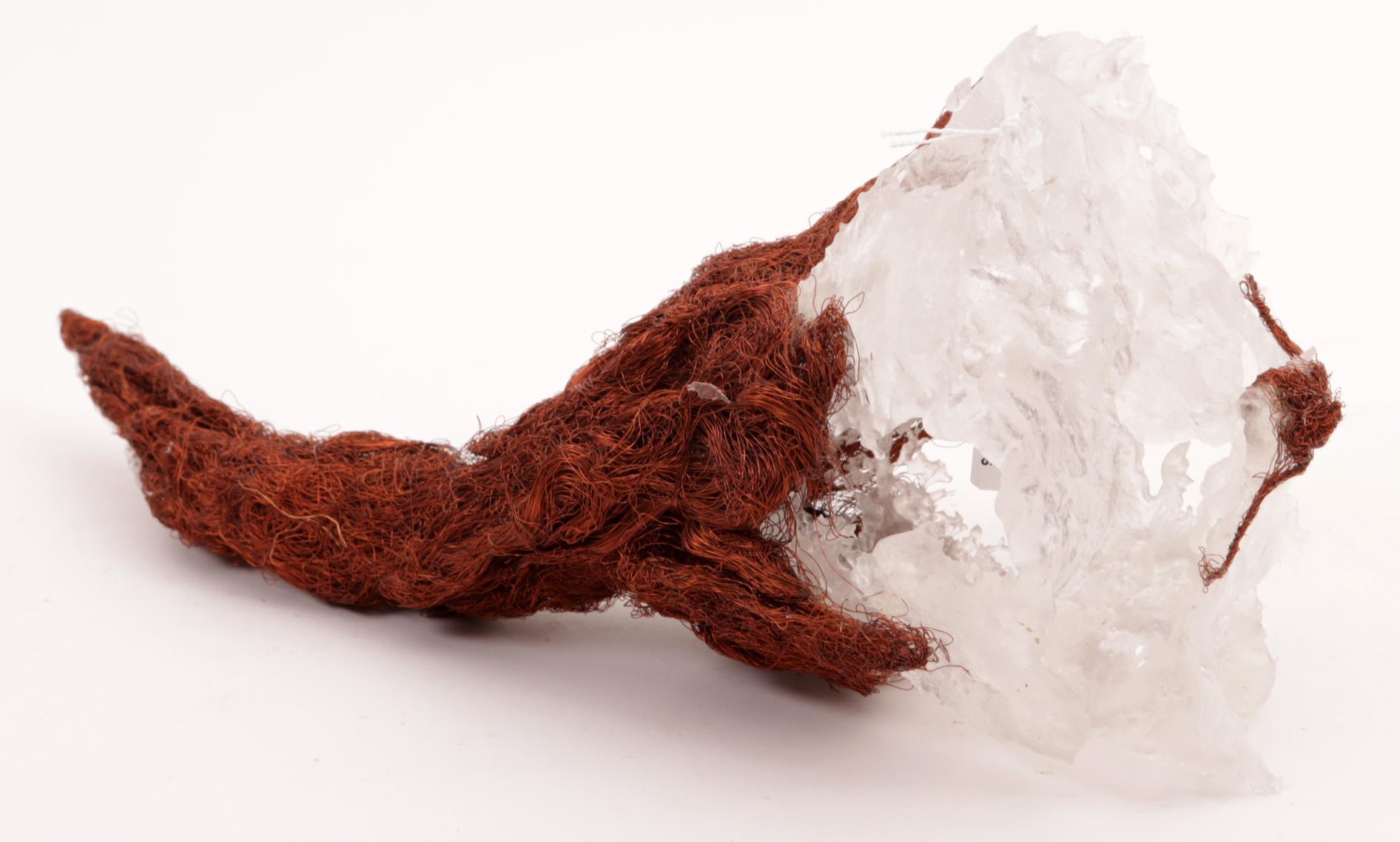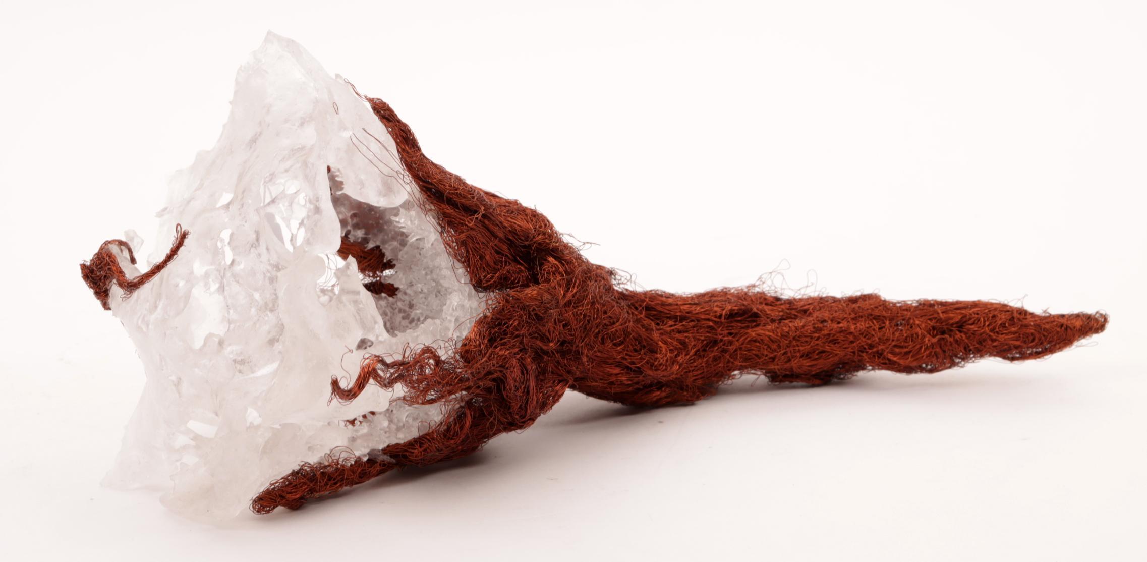Onb.meester, sculptuur i.v.v. een toorts vervaardigd uit glas en ijzerdraad, l.37 cm.