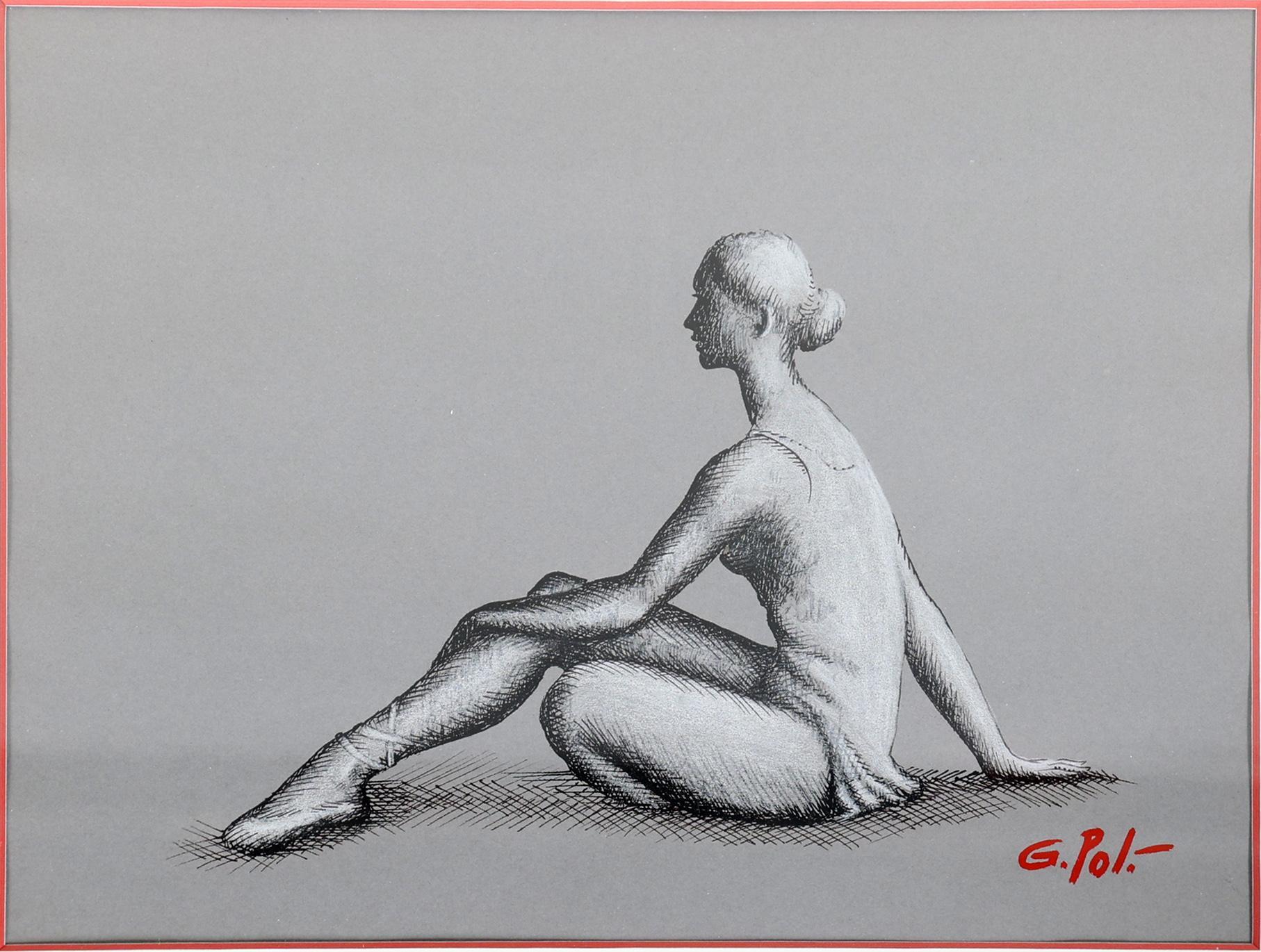 G. Pol, 2 diverse voorstellingen van Ballerina's, gemengde techniek, 20 x 28 cm. per stuk
