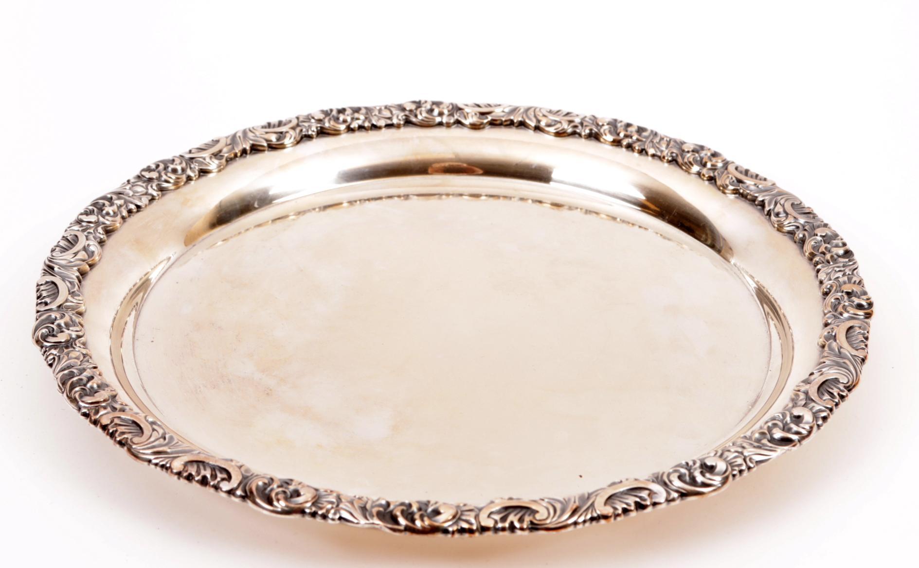 Rond verzilverd dienblad, diam.30 cm.