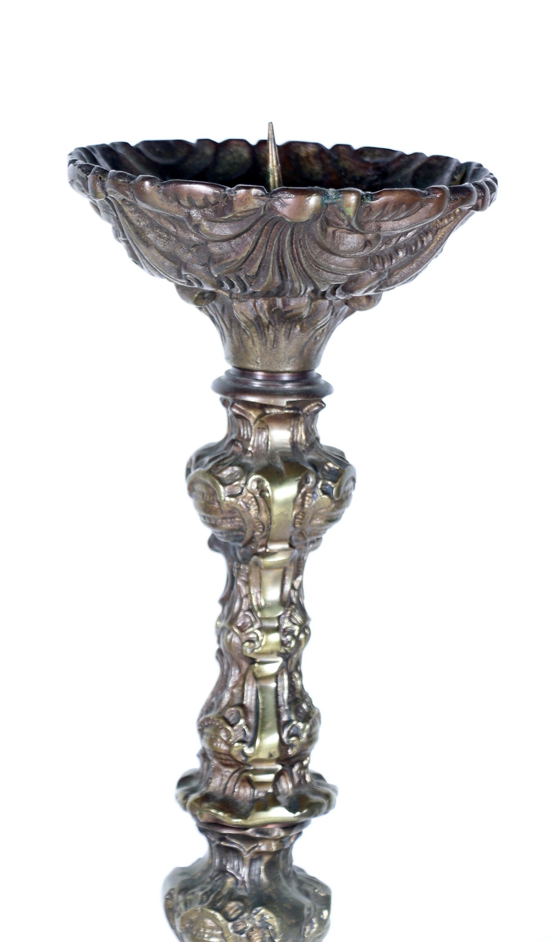 Geel koperen kerkkandelaar, h.80 cm.