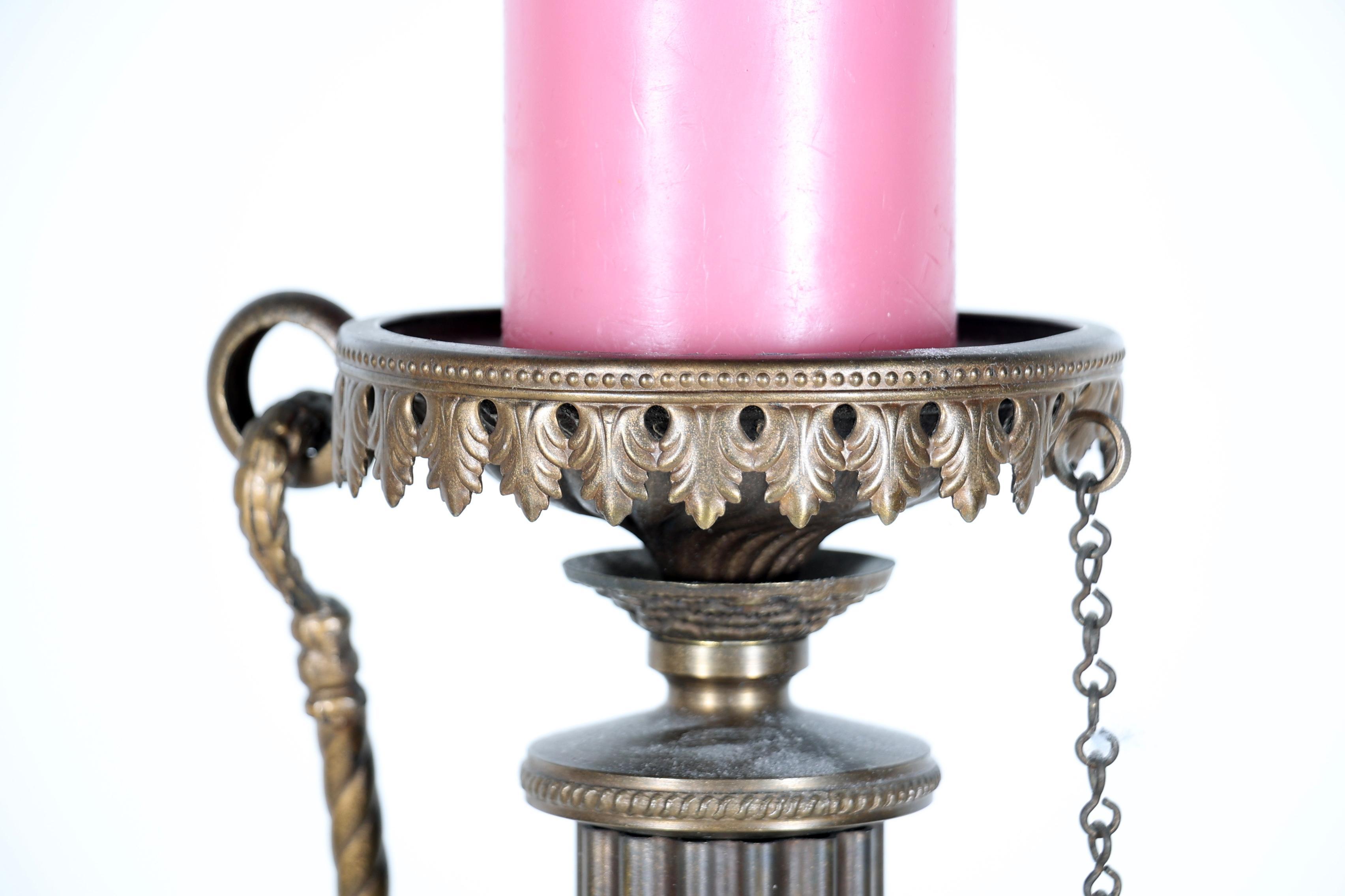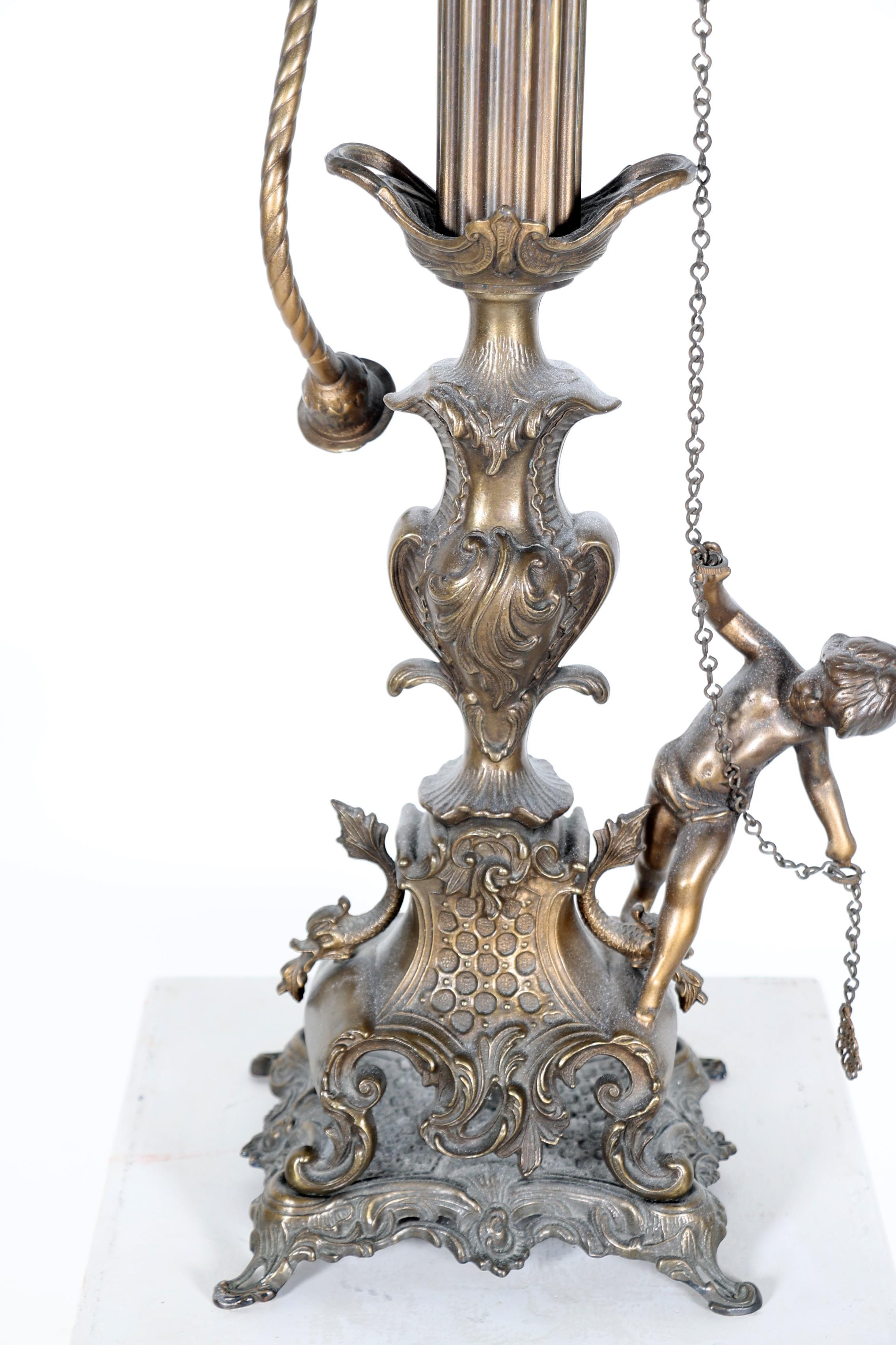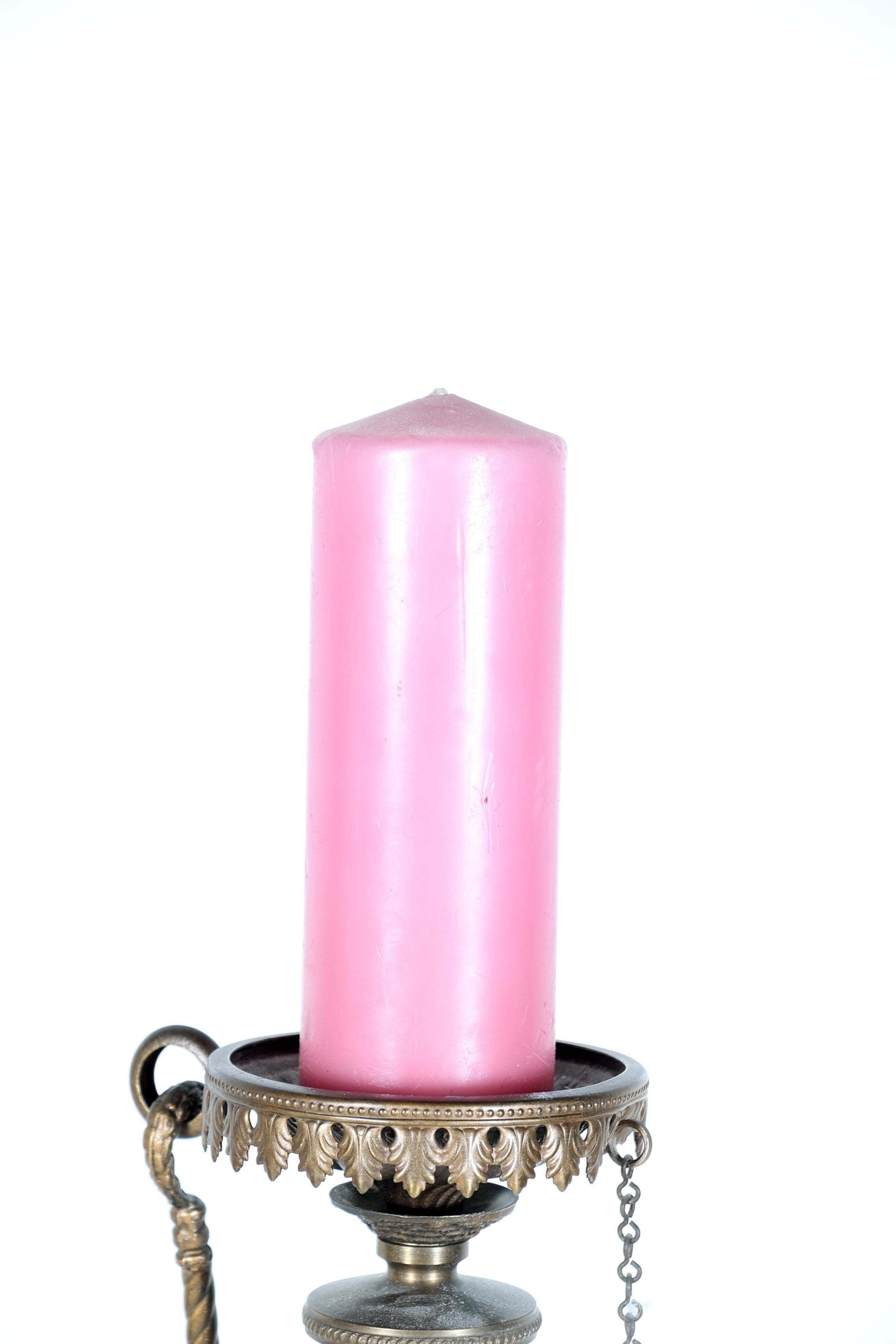 Geel koperen kandelaar met kindje, h.67 cm.