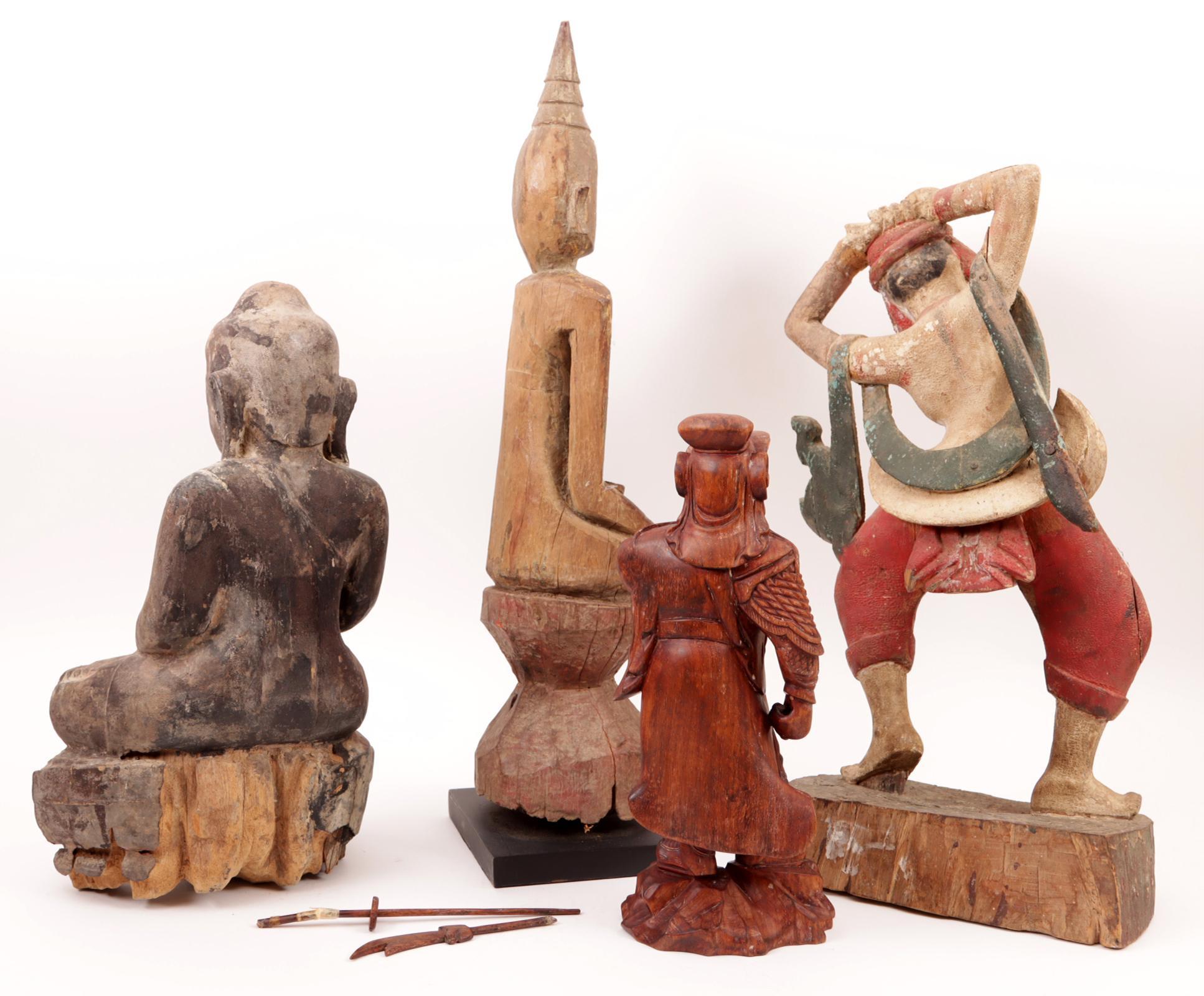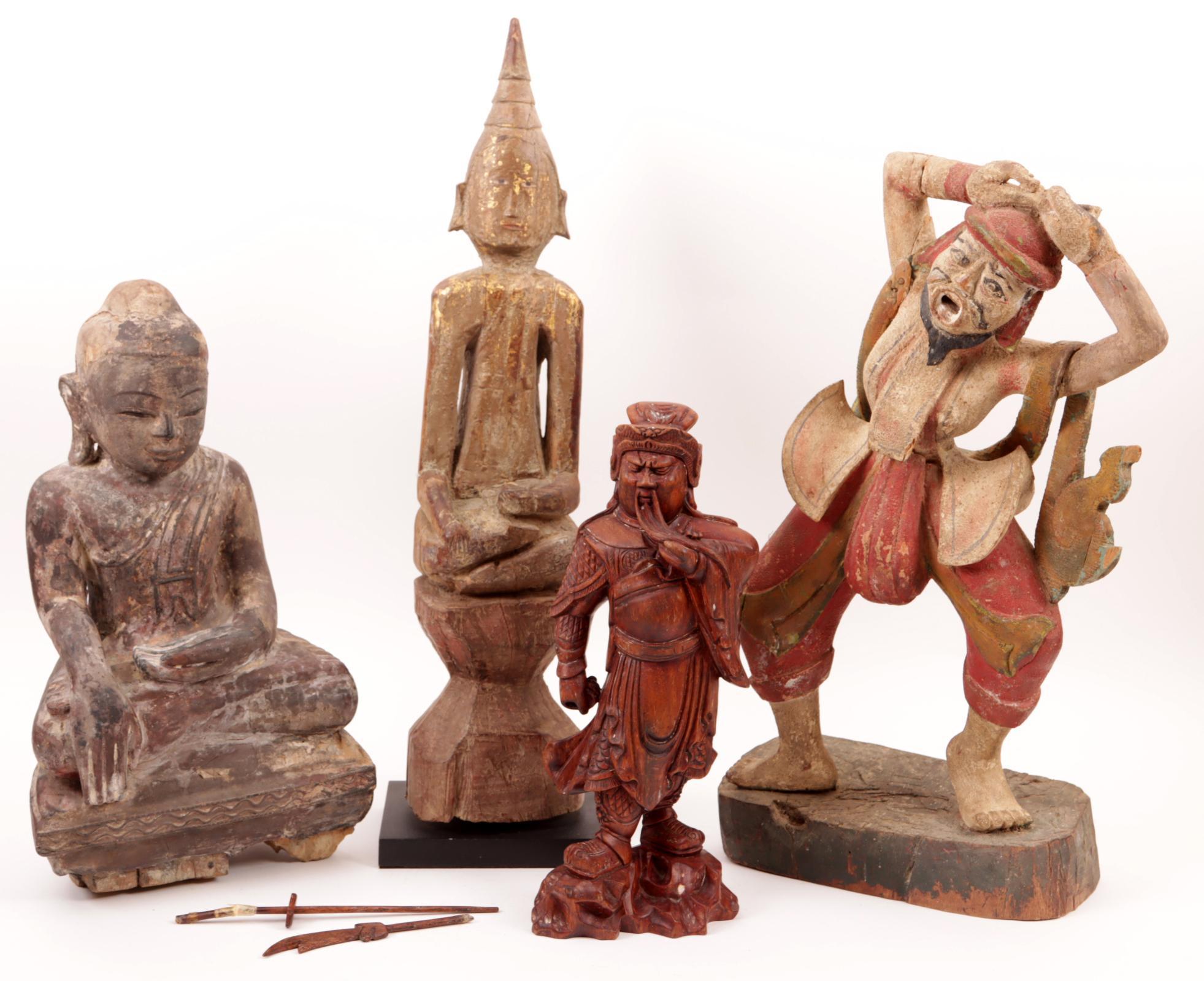 Koop van 4 diverse houten Oosterse beelden