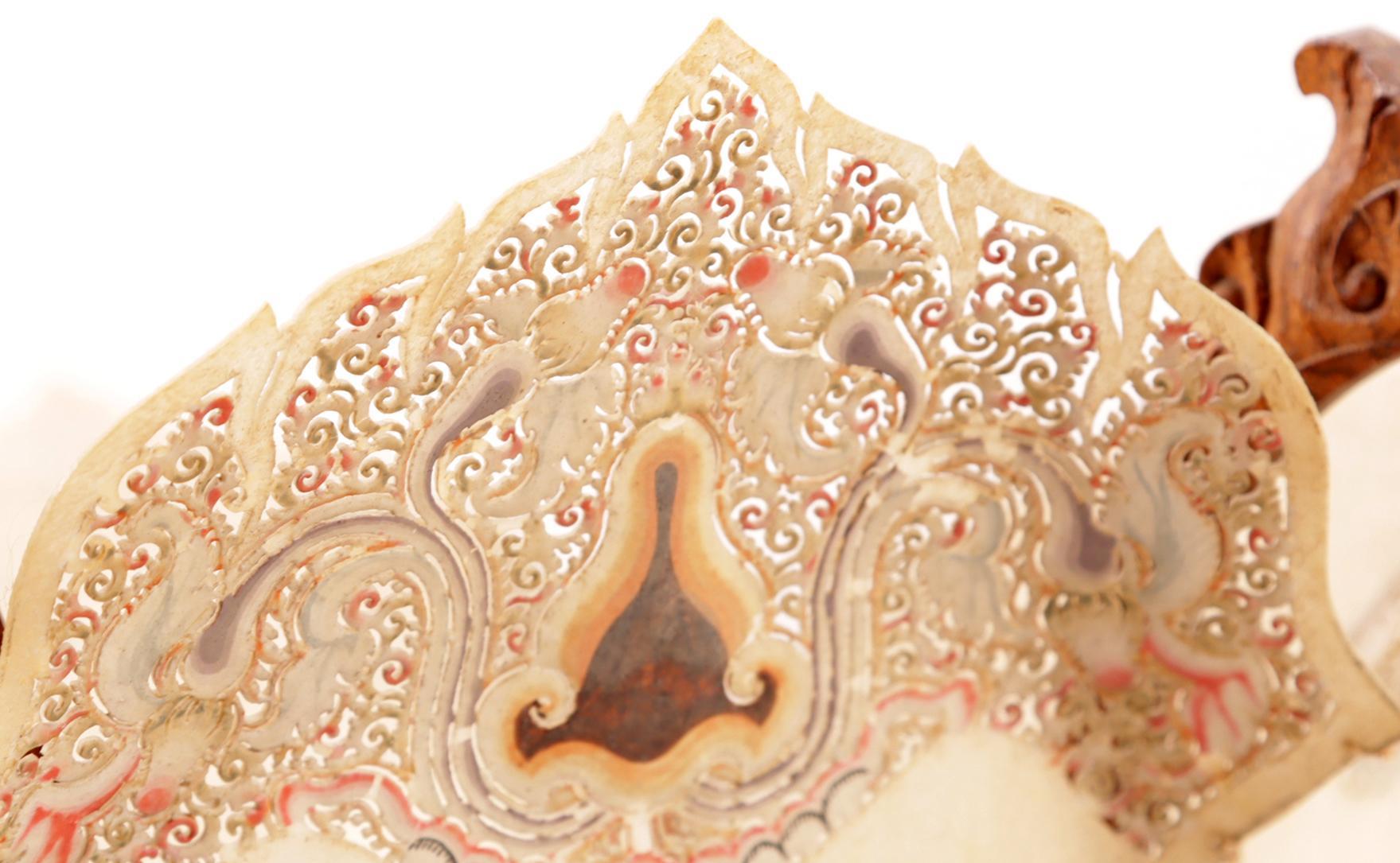 Balinese gestoken houten schemerlamp, h.40 cm.