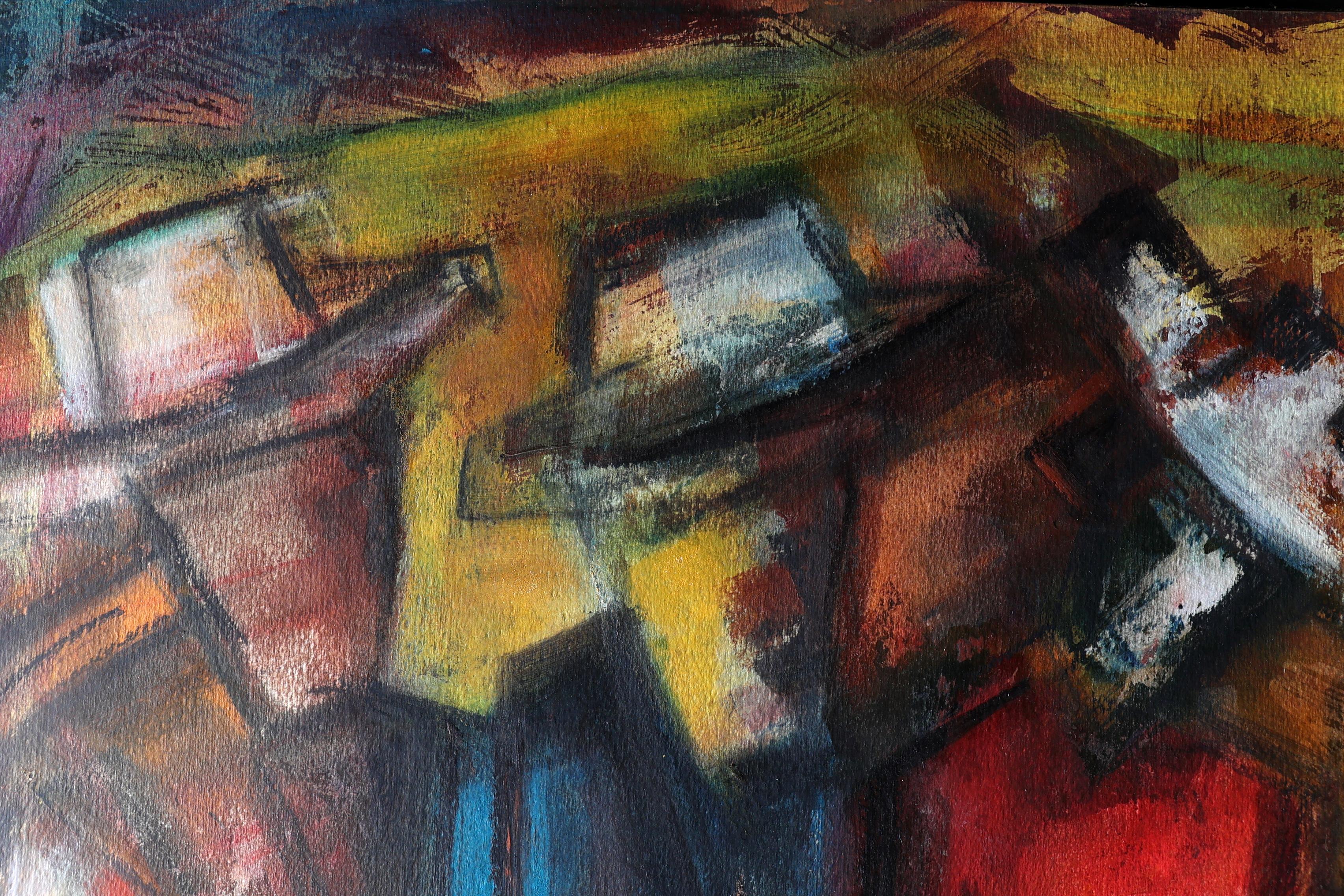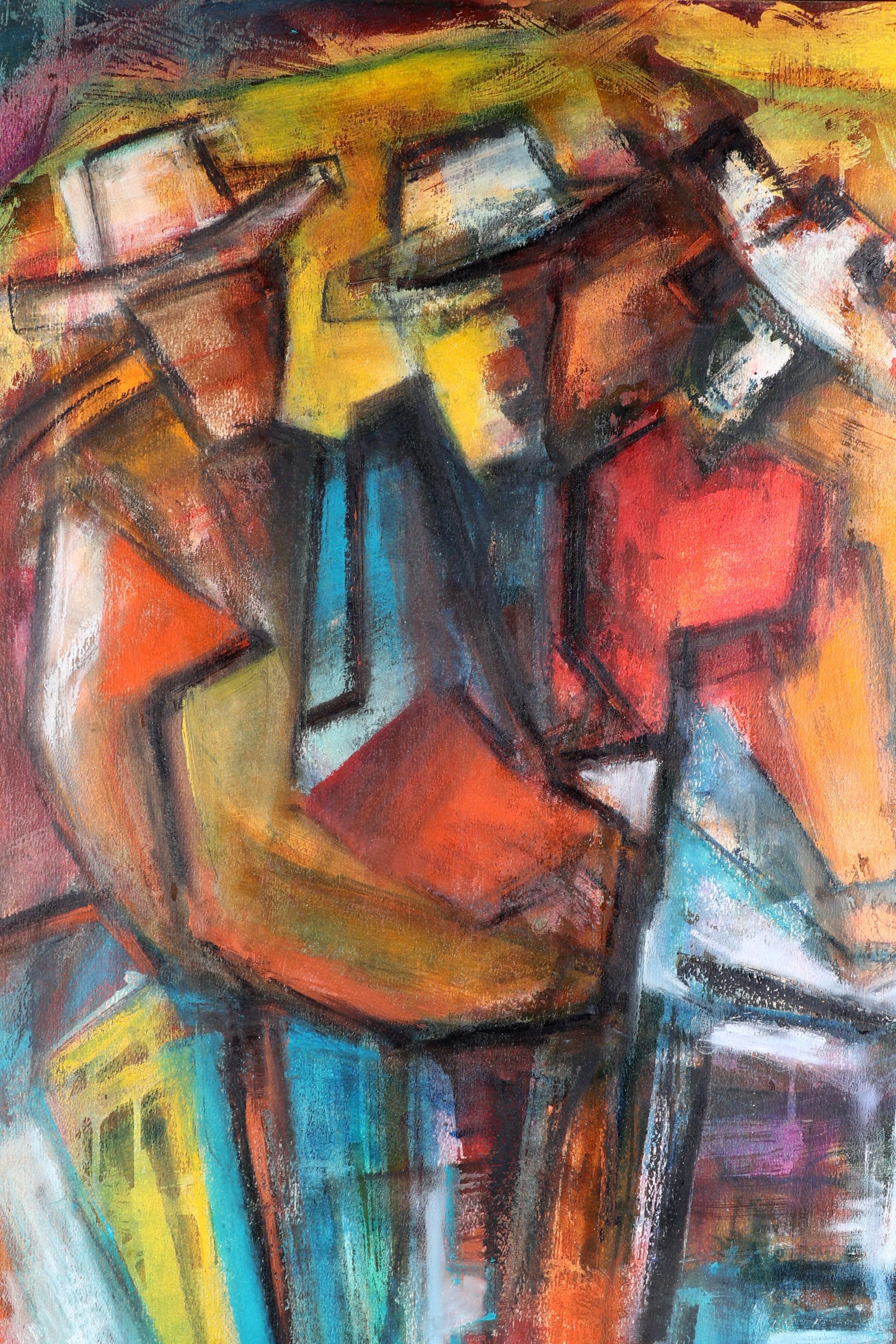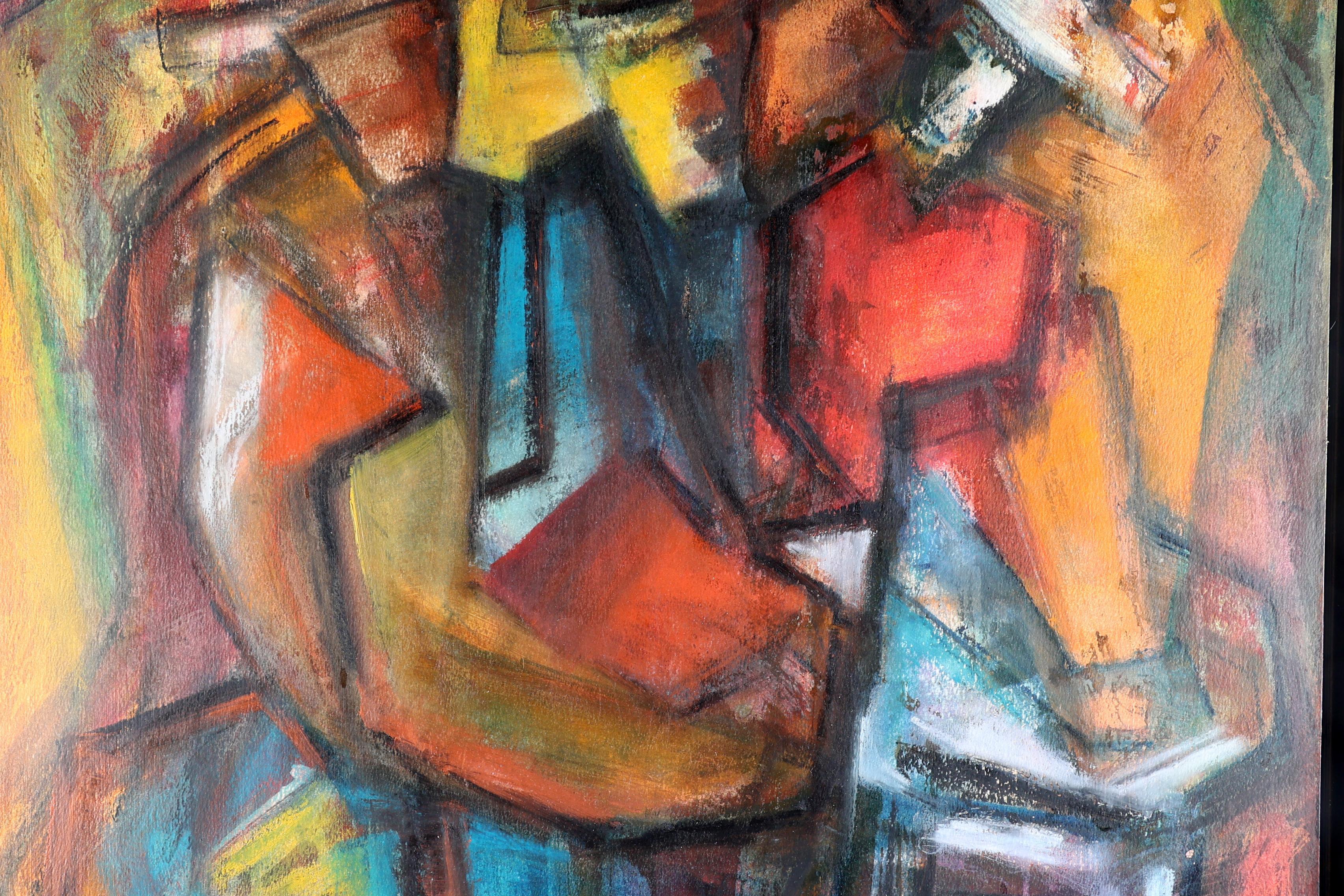 Boy Namias de Crasto (1935), Abstract compositie met personen, gemengde techniek, 100 x 70 cm.