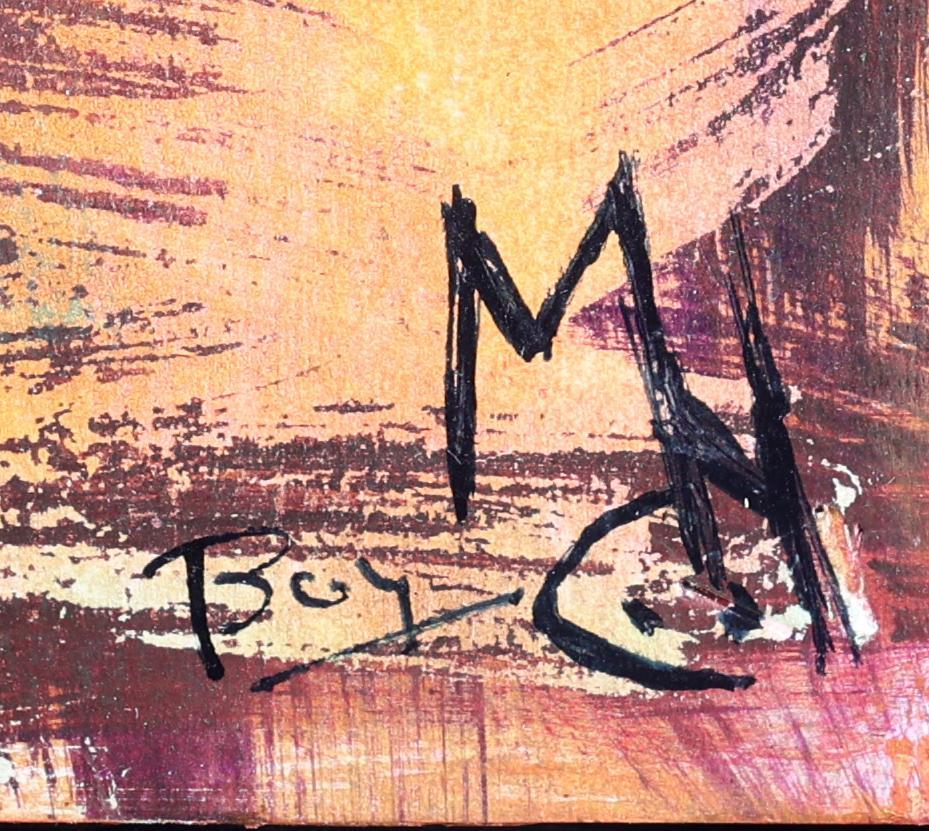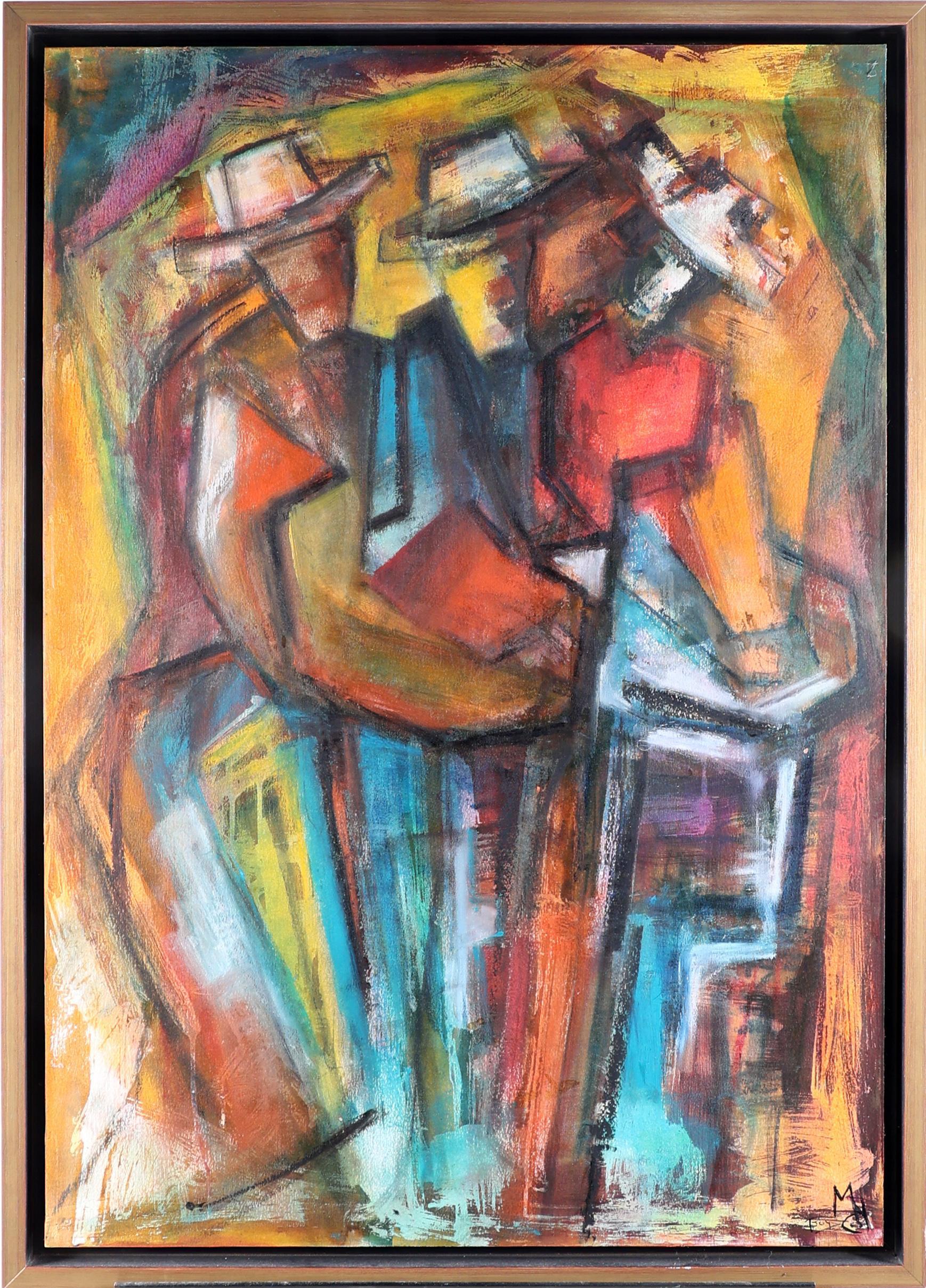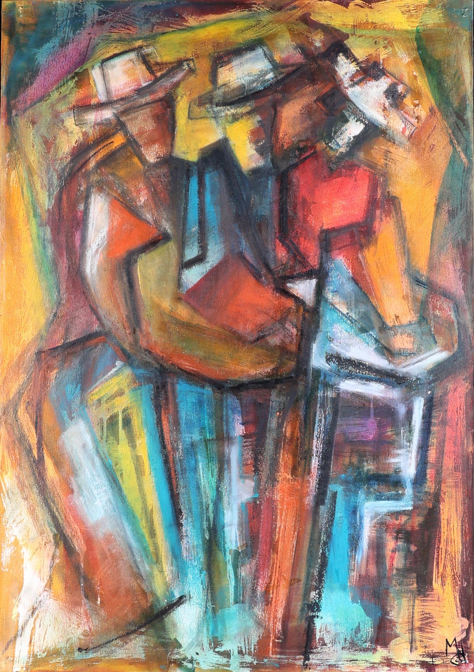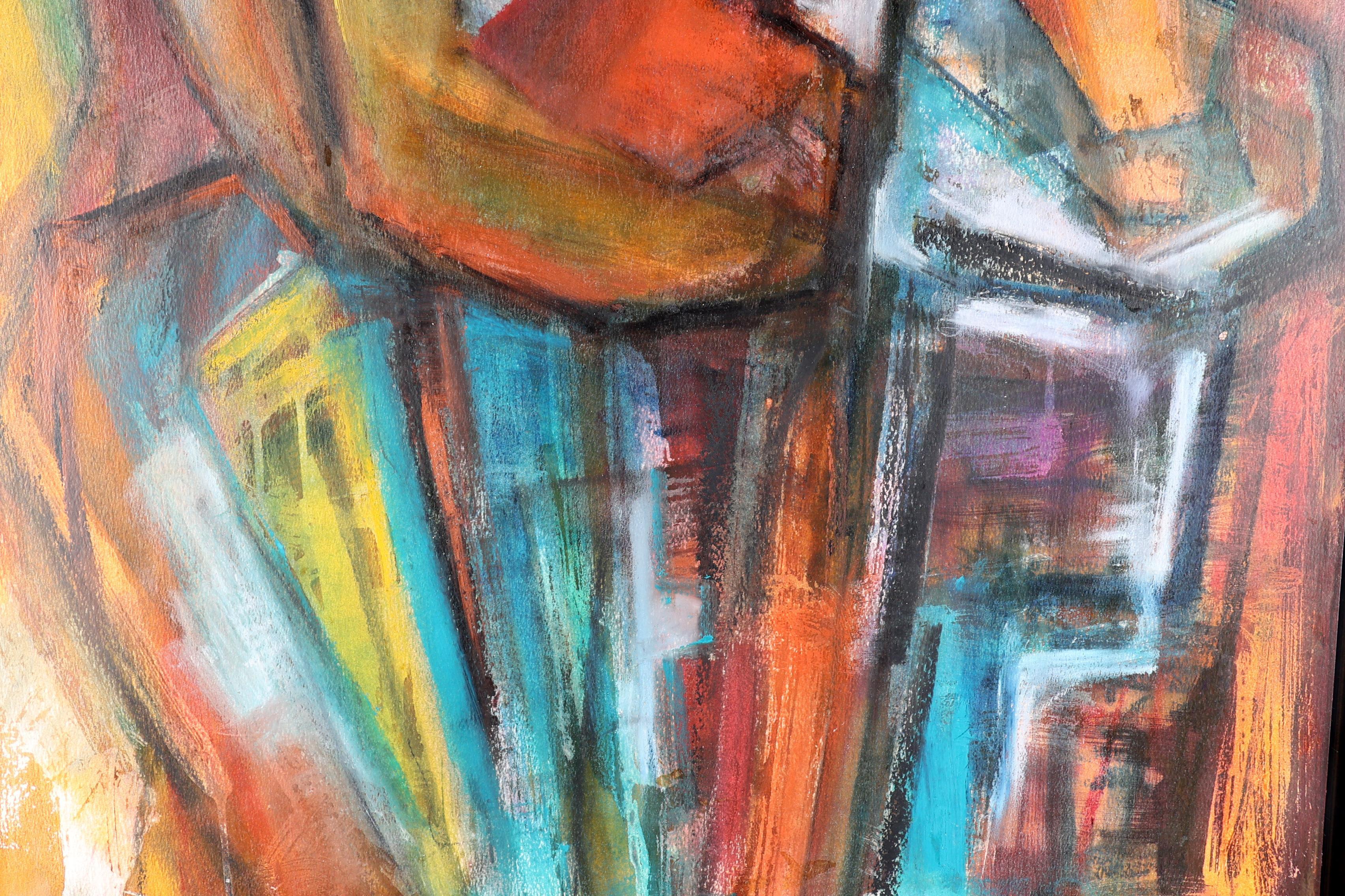 Boy Namias de Crasto (1935), Abstract compositie met personen, gemengde techniek, 100 x 70 cm.