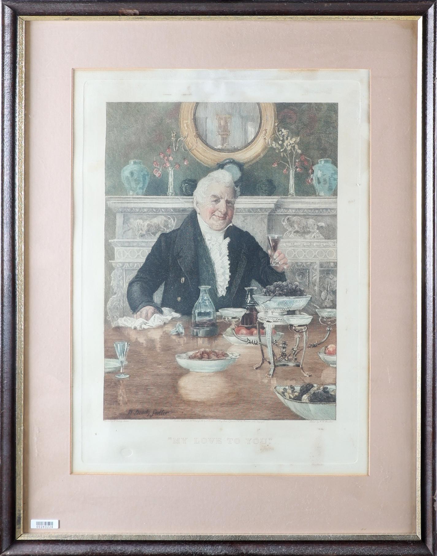 William Henry Boucher (1842-1906) 'My Love To You' naar Walter Dendy Sadler, handgekleurde ets gepubliceerd door L.H. Lefevre Londen, gesigneerd in de plaat, 48 x 35,5 cm.