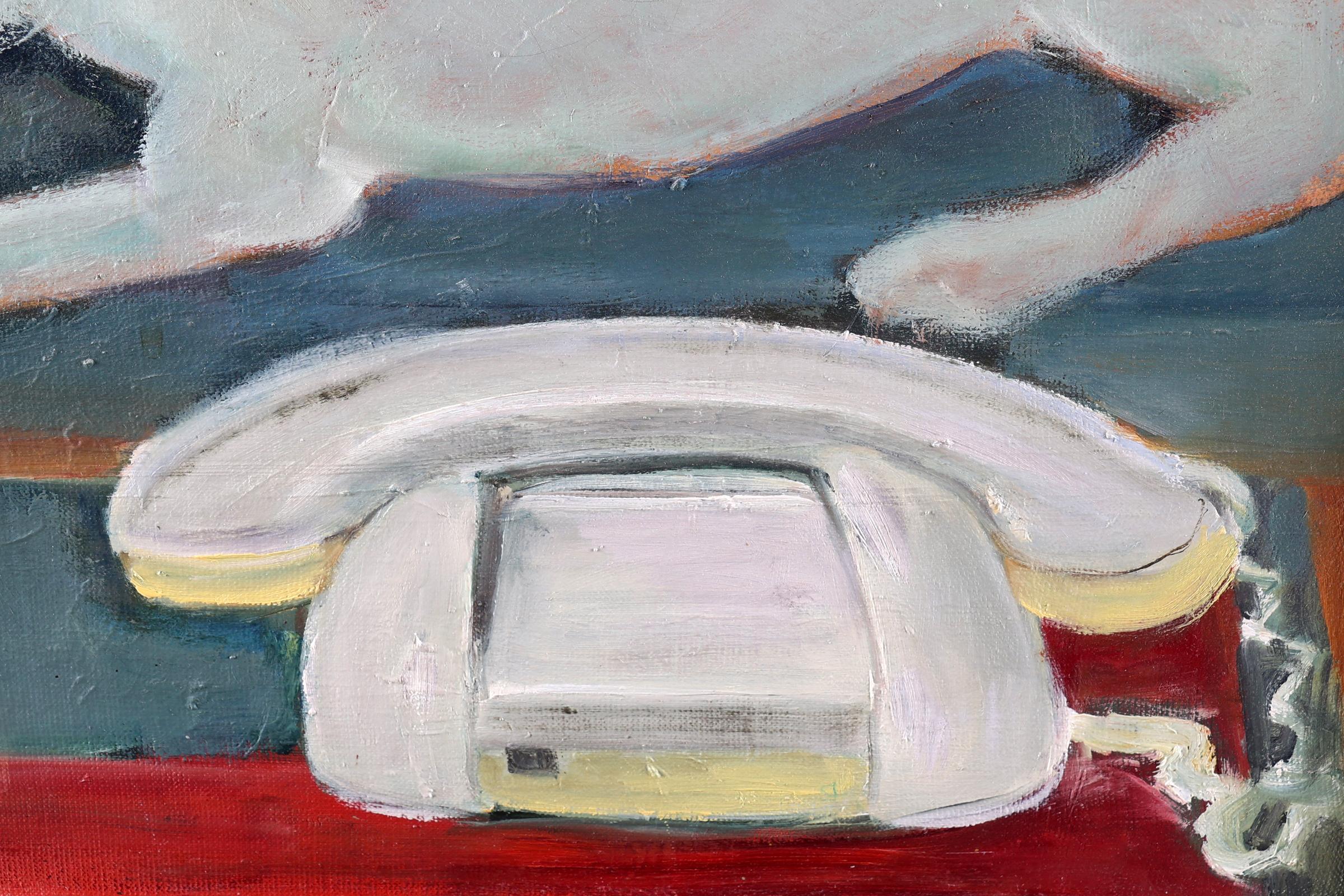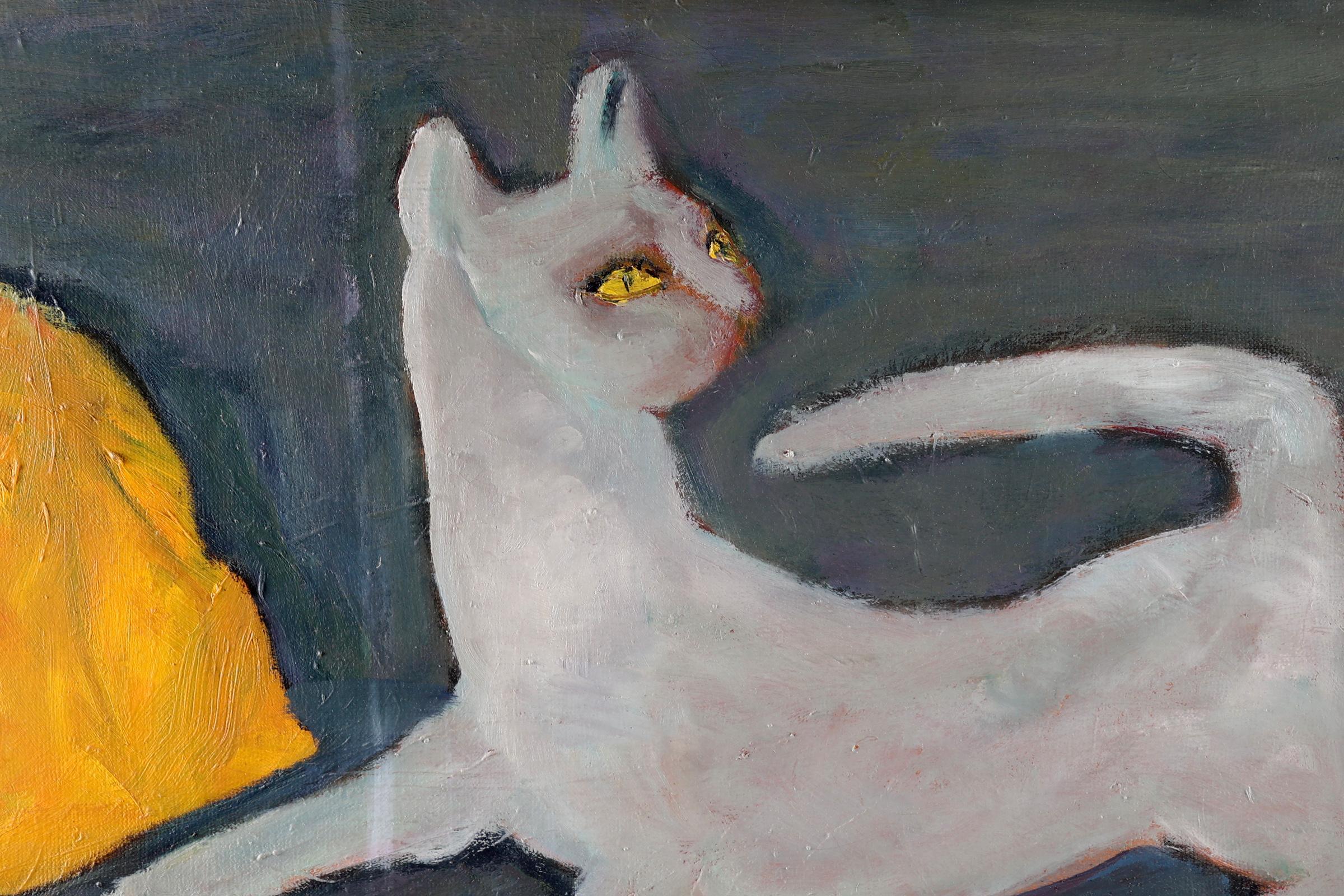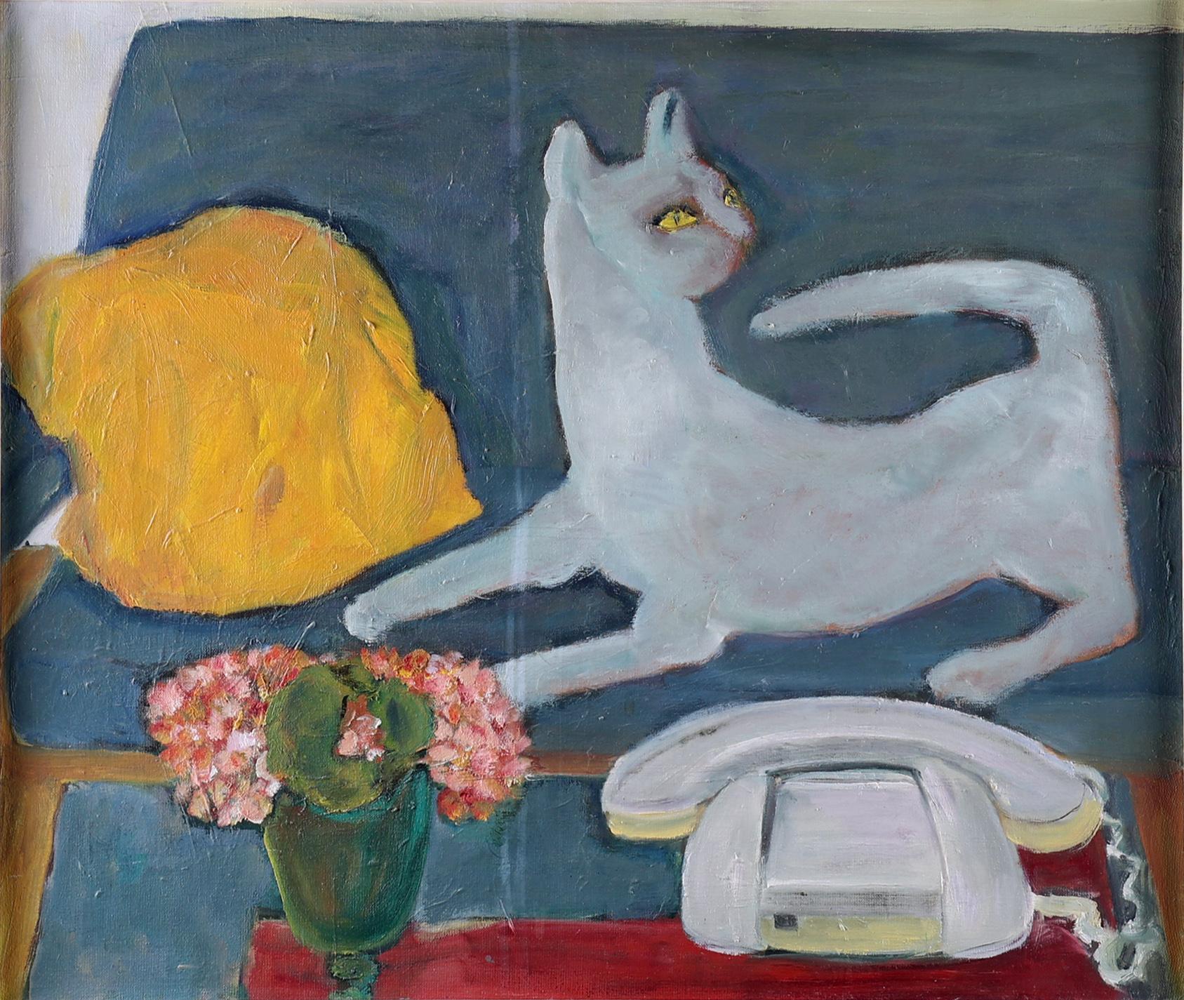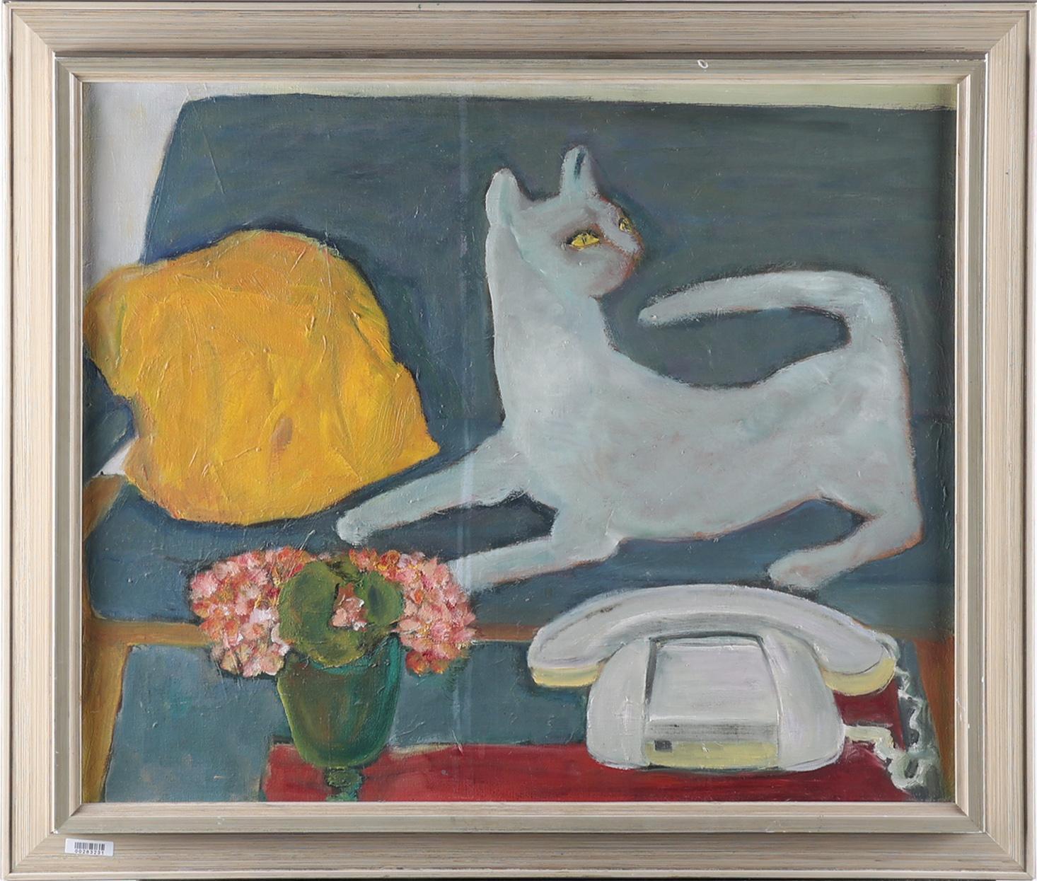 Onb. meester, Poes bij telefoon, olieverf op doek, 49 x 59 cm.