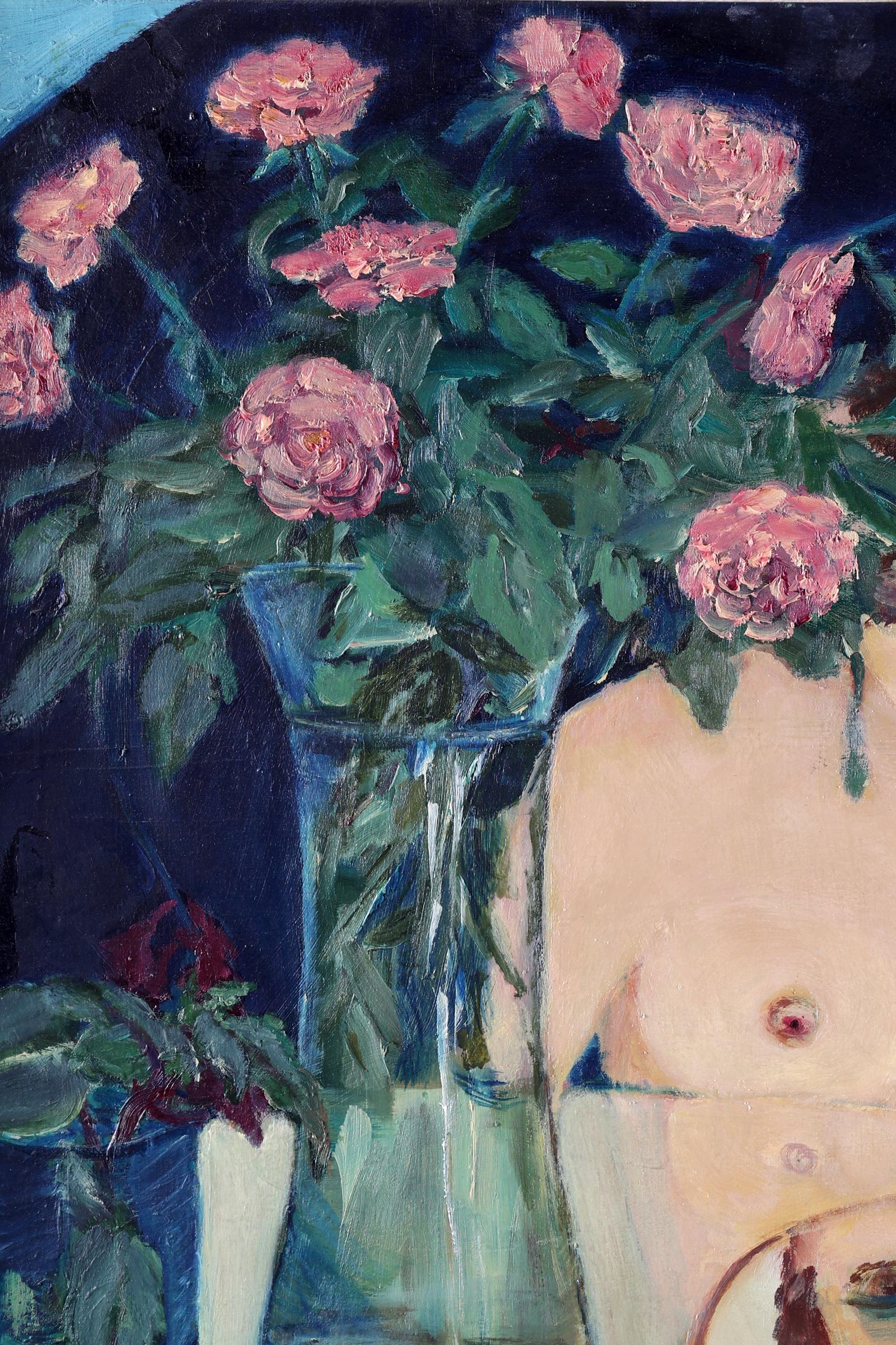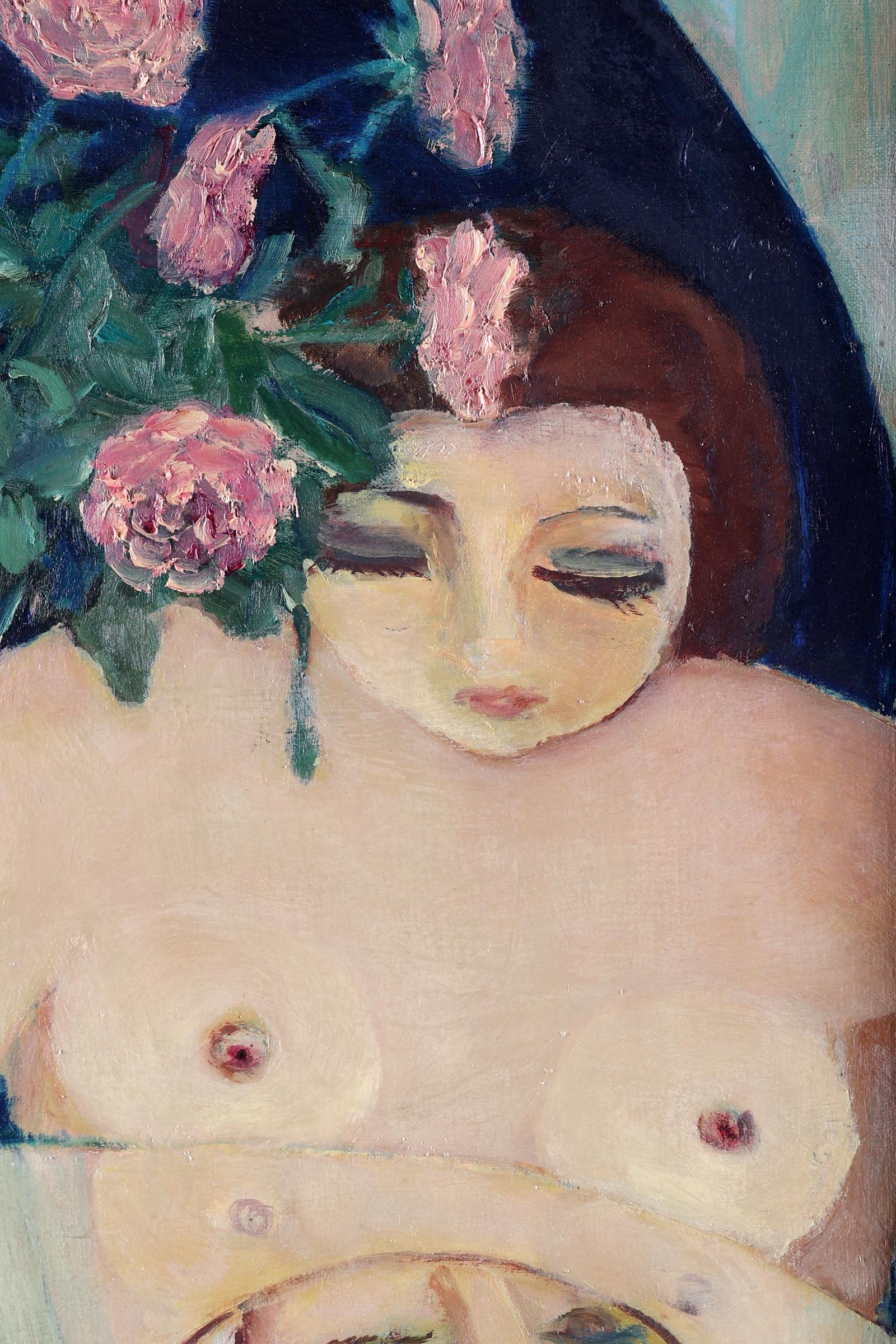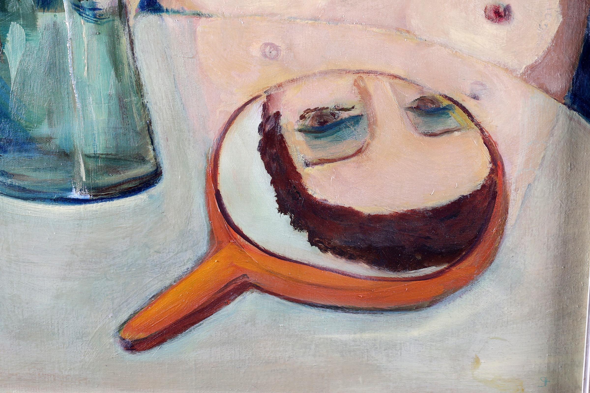 Onb. meester, Vrouw met spiegel, olieverf op doek, 59 x 48,5 cm.
