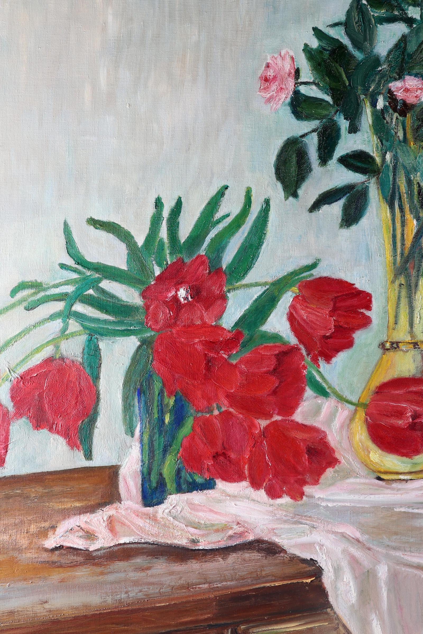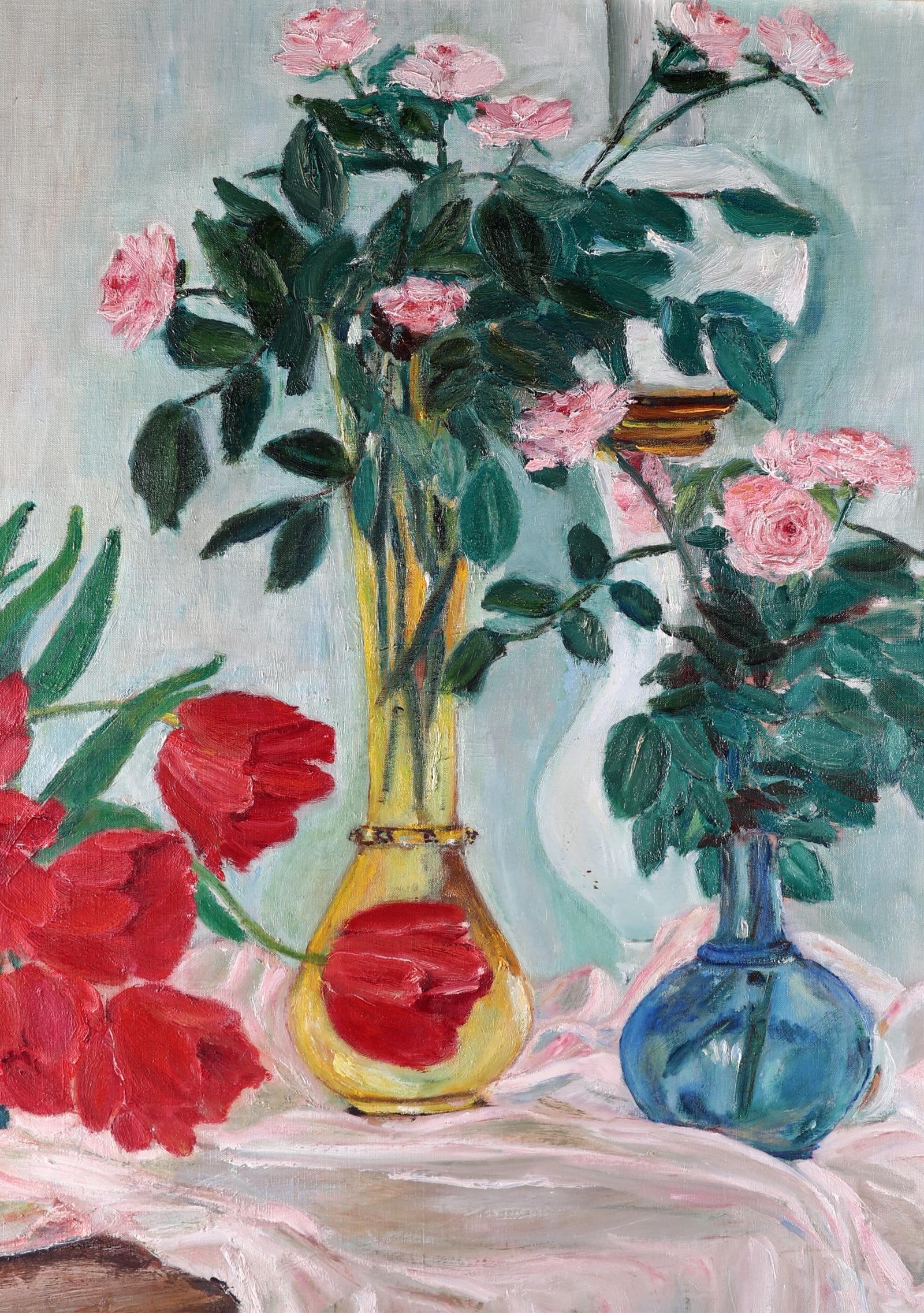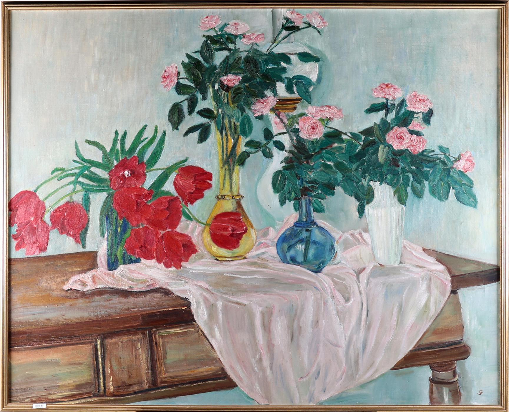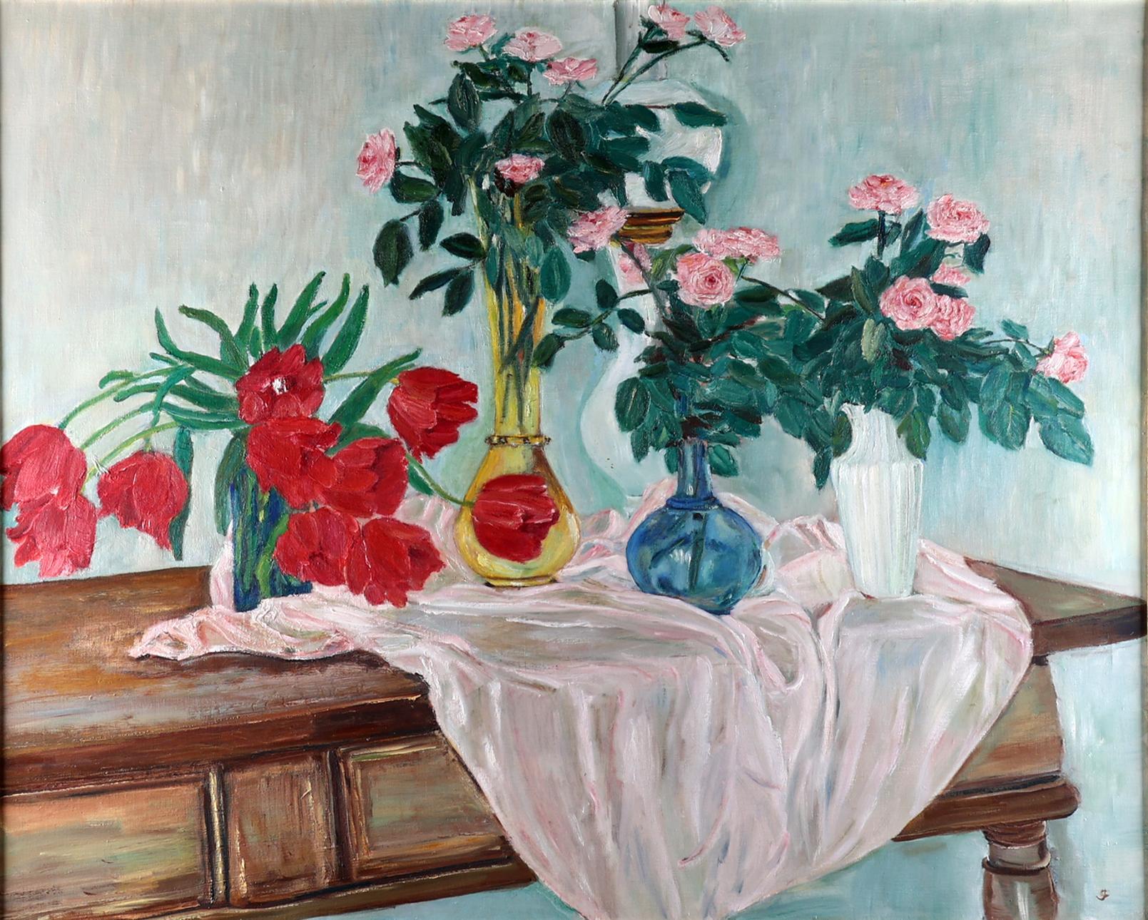André Schaller (1920 - 1981), Stilleven met bloemen, olieverf op doek, 100 x 124 cm.