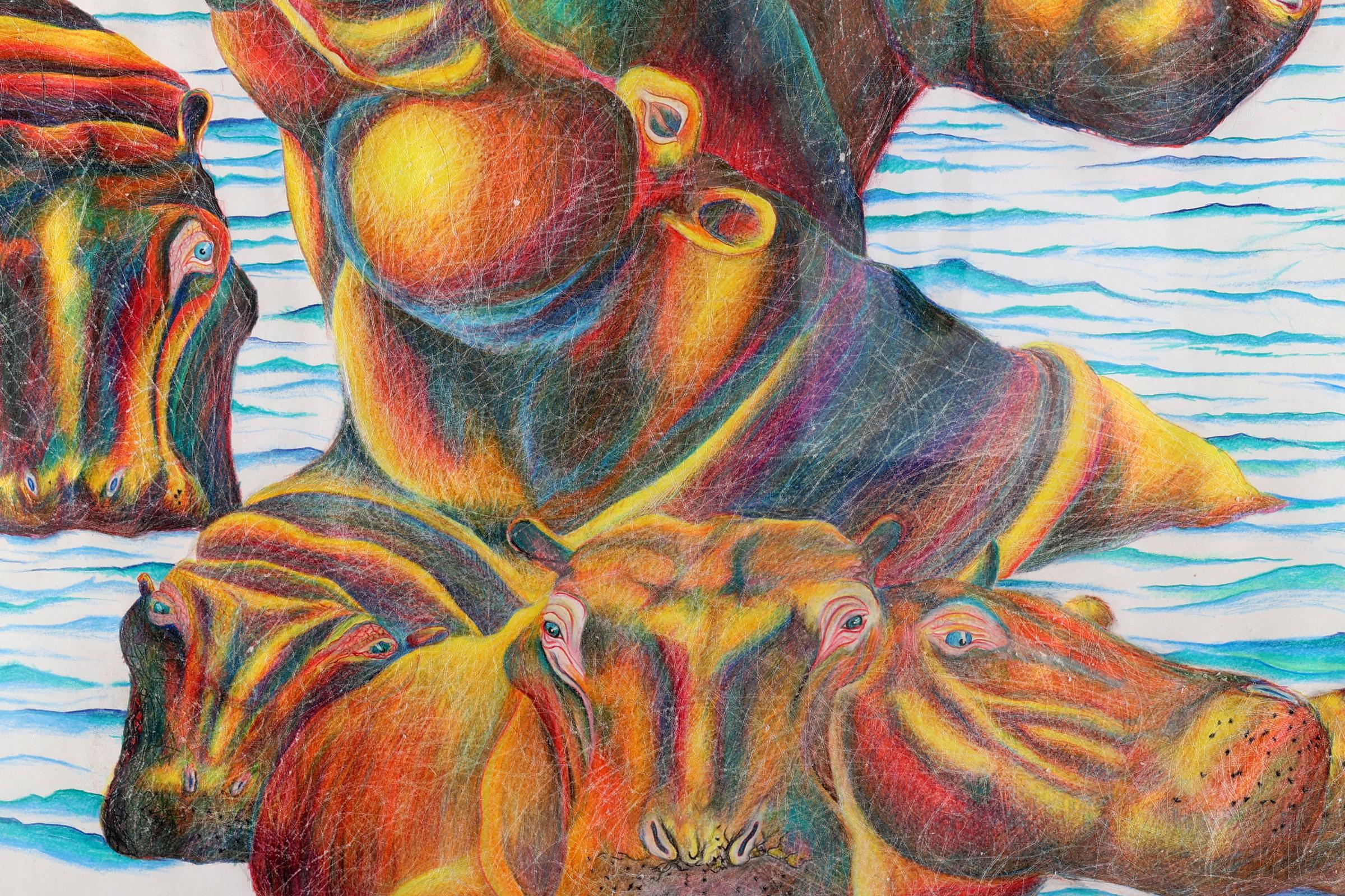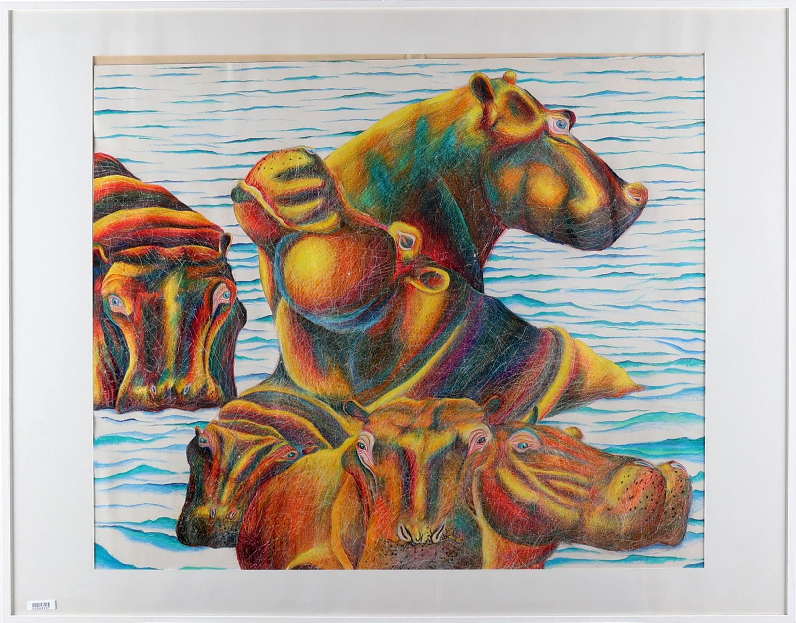 Onb. meester, Nijlpaarden. krijttekening, 59 x 70 cm.
