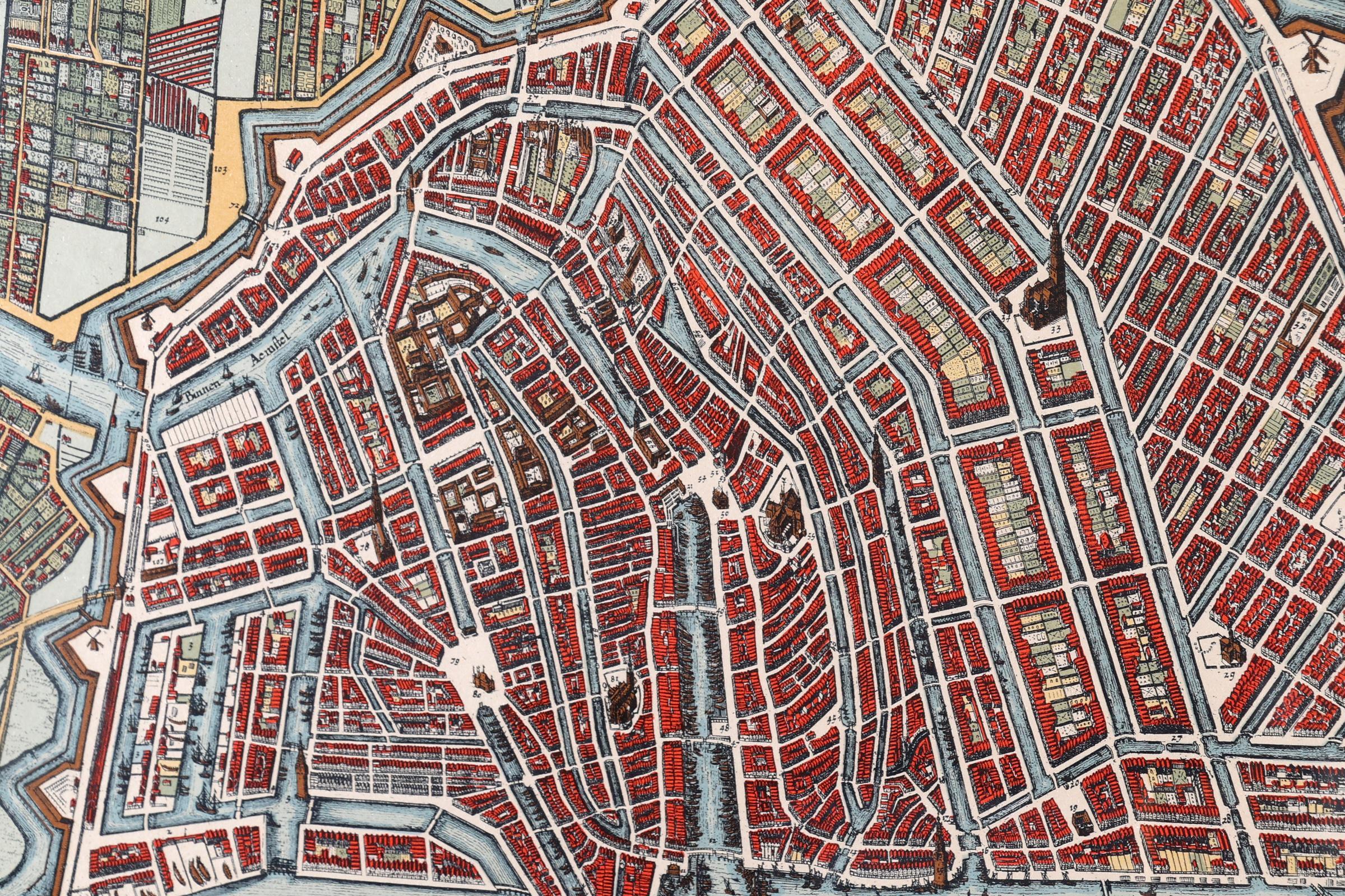 Lithografie van de stad Amsterdam, 49,5 x 61,5 cm.