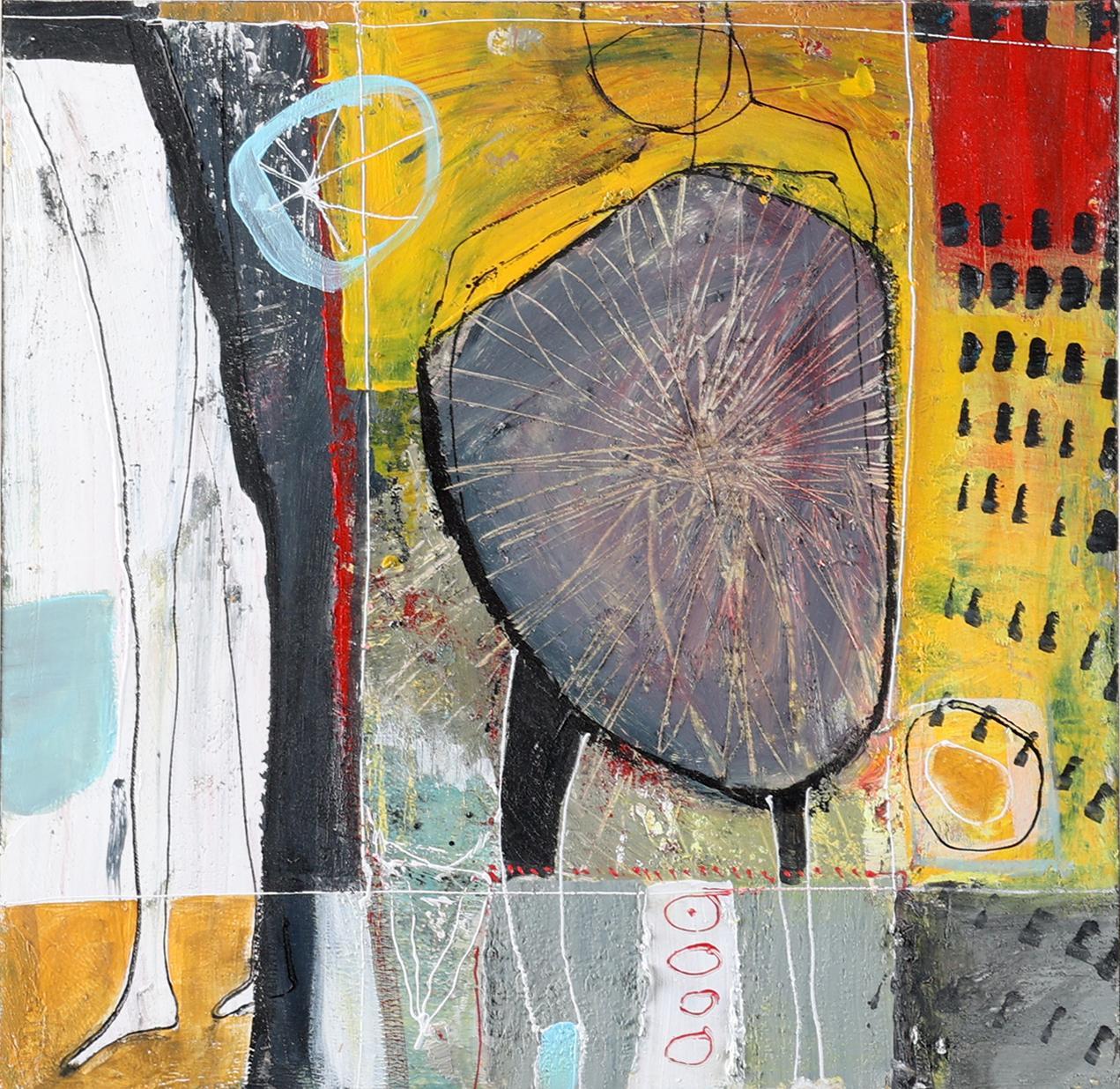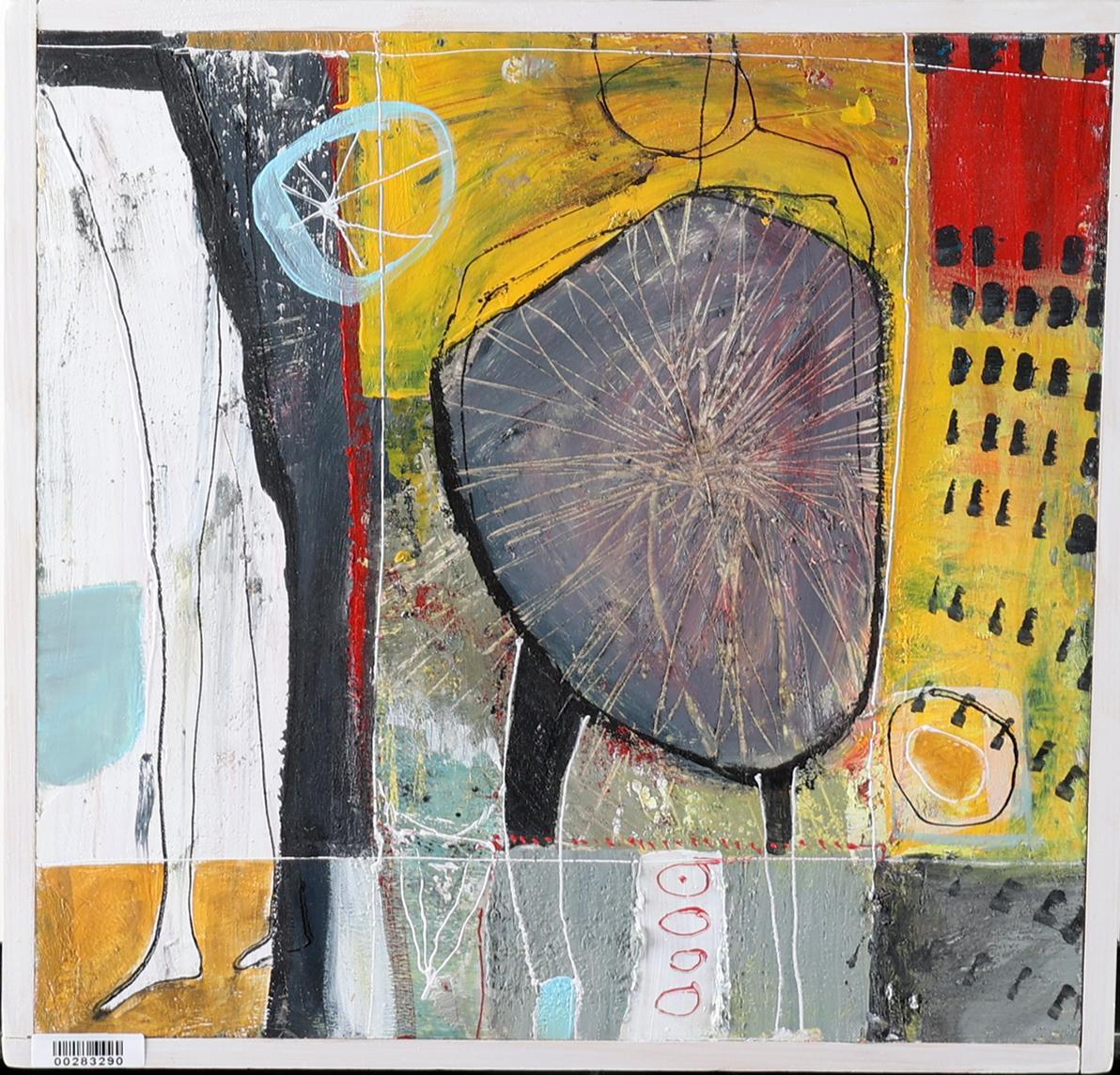 Mus Richter, Abstract, acryl op paneel, gedateerd 2017, 30 x 30 cm.