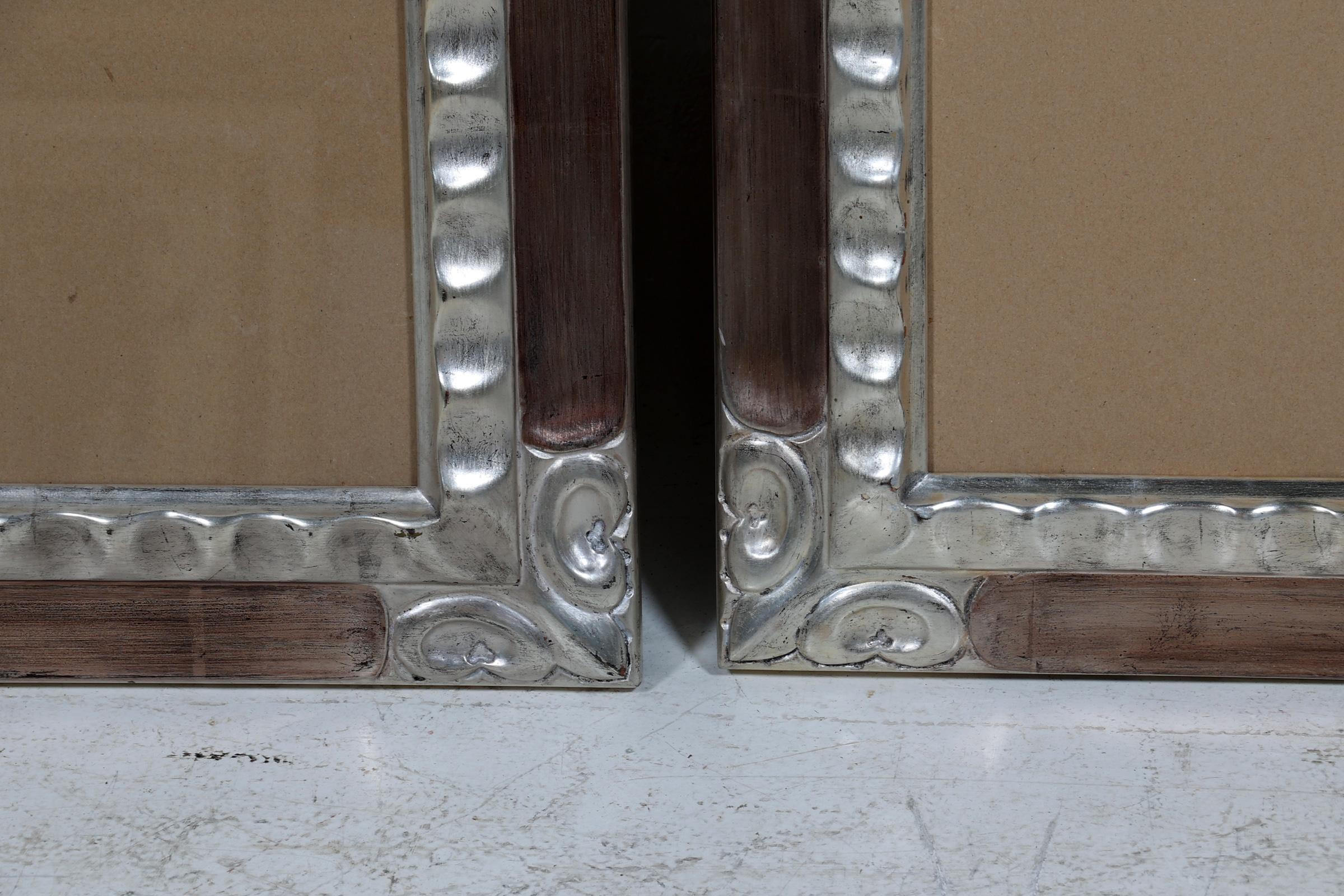 Twee zilverkleurige lijsten voorzien van glas, 87 x 66 cm (buitenmaat) en 69 x 48,5 cm. (binnenmaat)