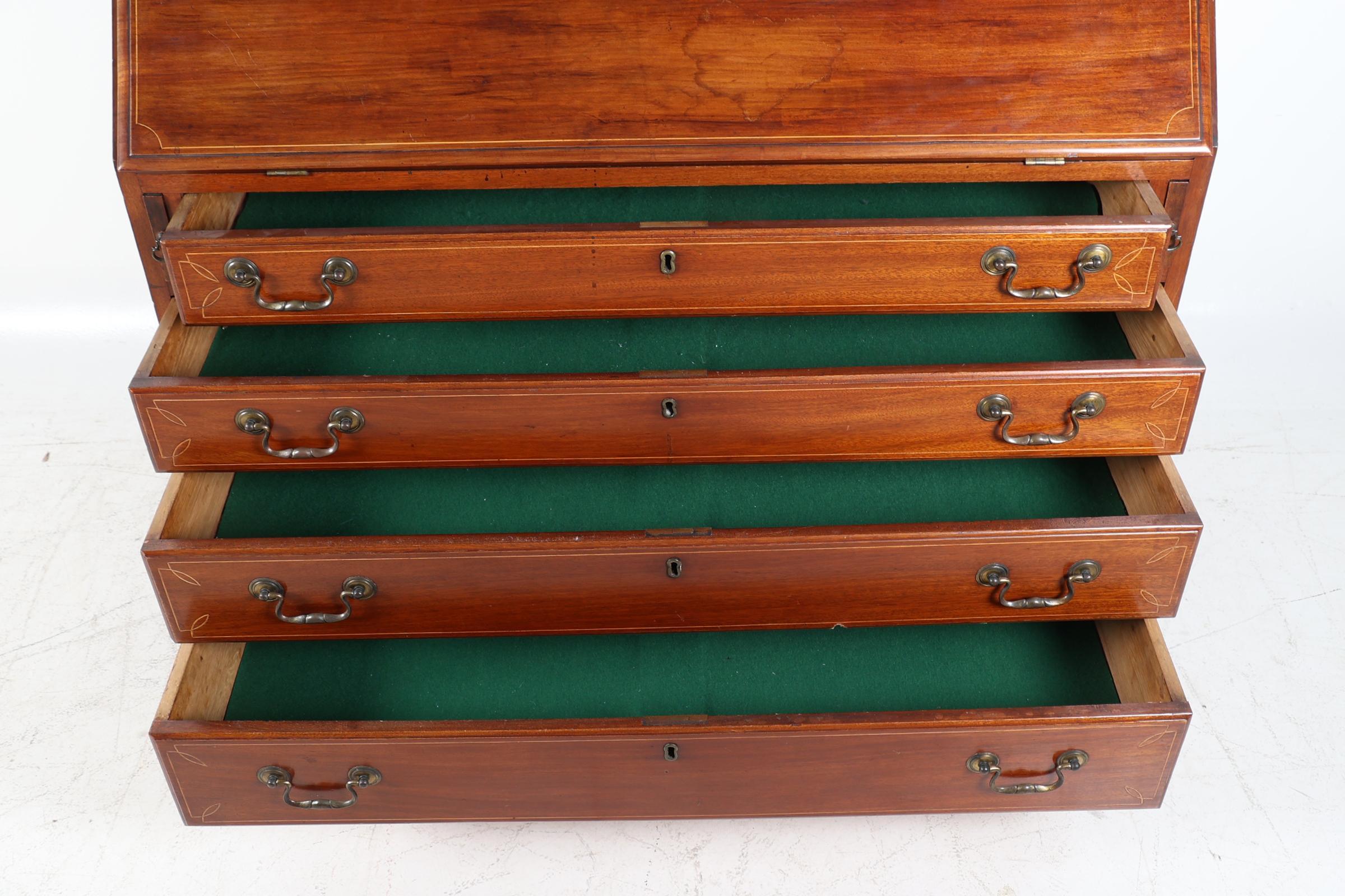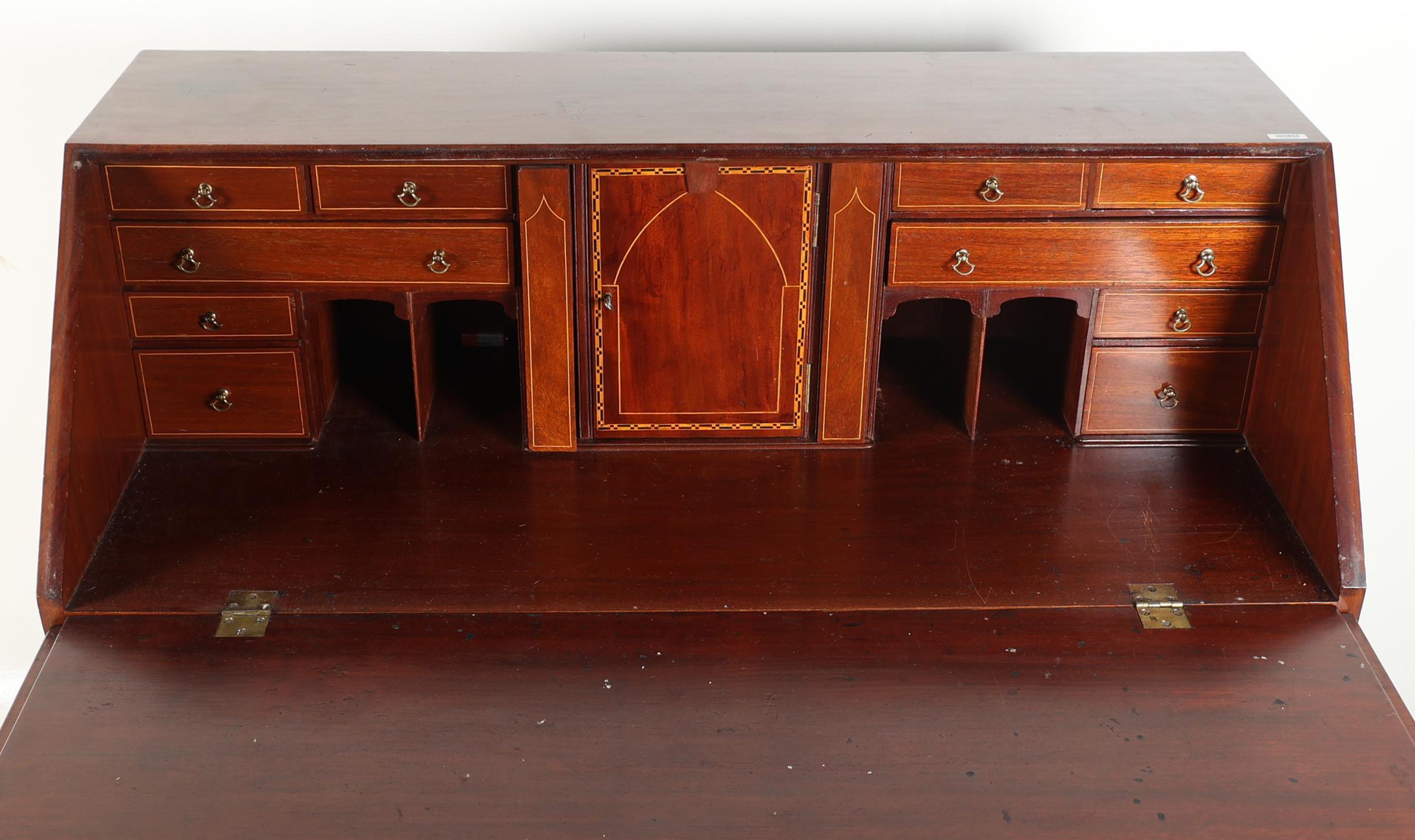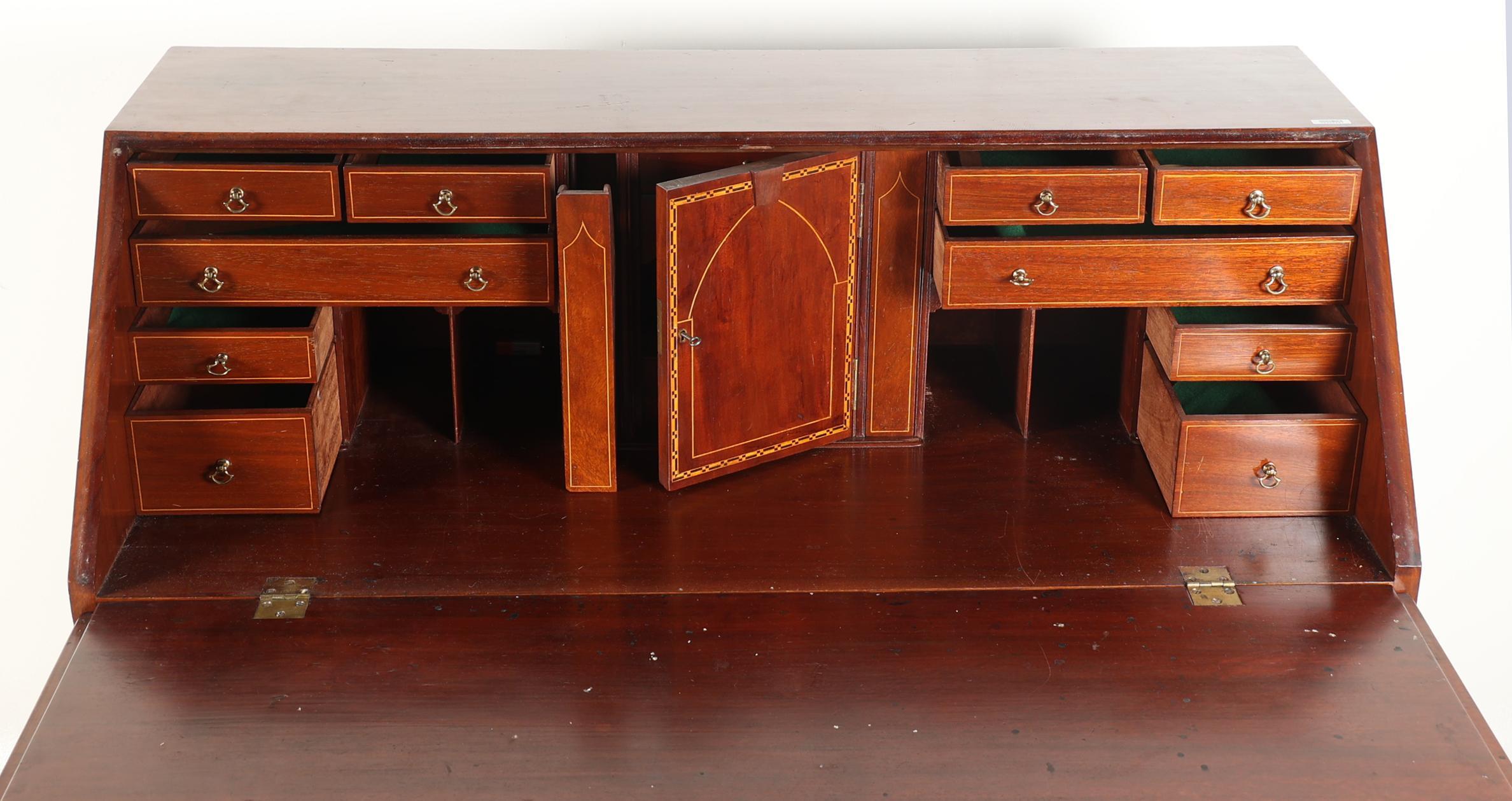 Oude mahoniehouten secretaire met bandintarsia, h.107 x b.107 x d.51 cm.