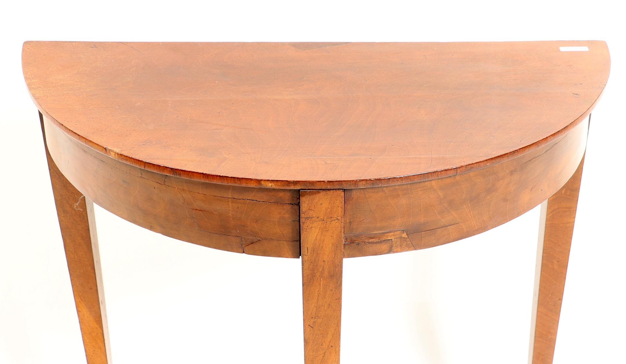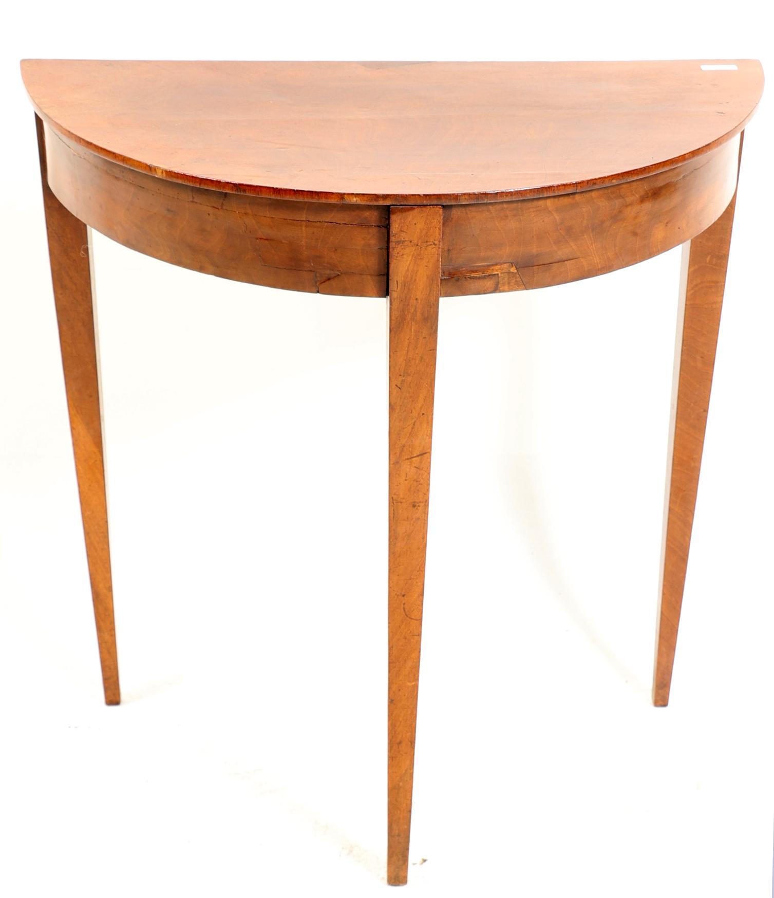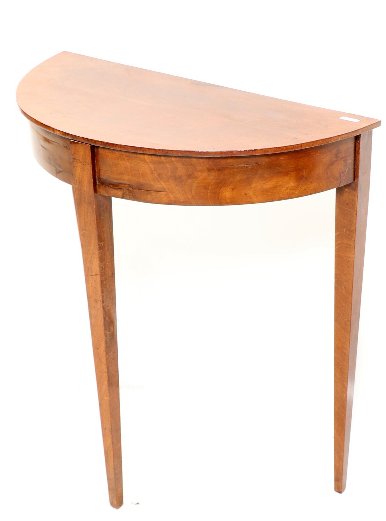 Antieke mahoniehouten half maan tafel, h.72 x b.69 x d.33 cm.