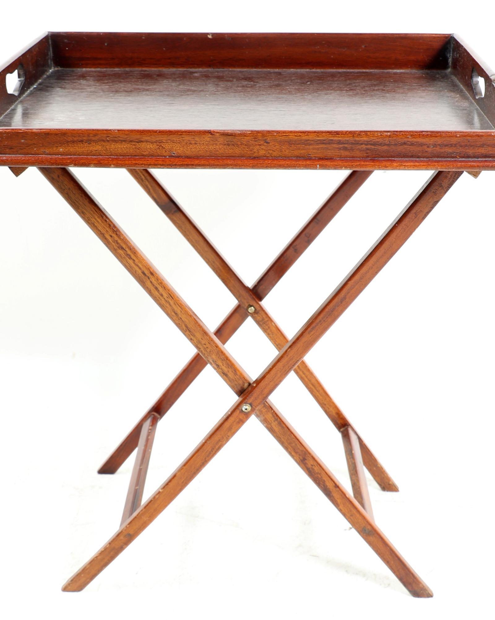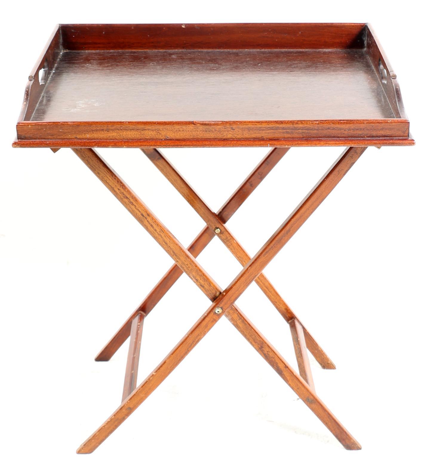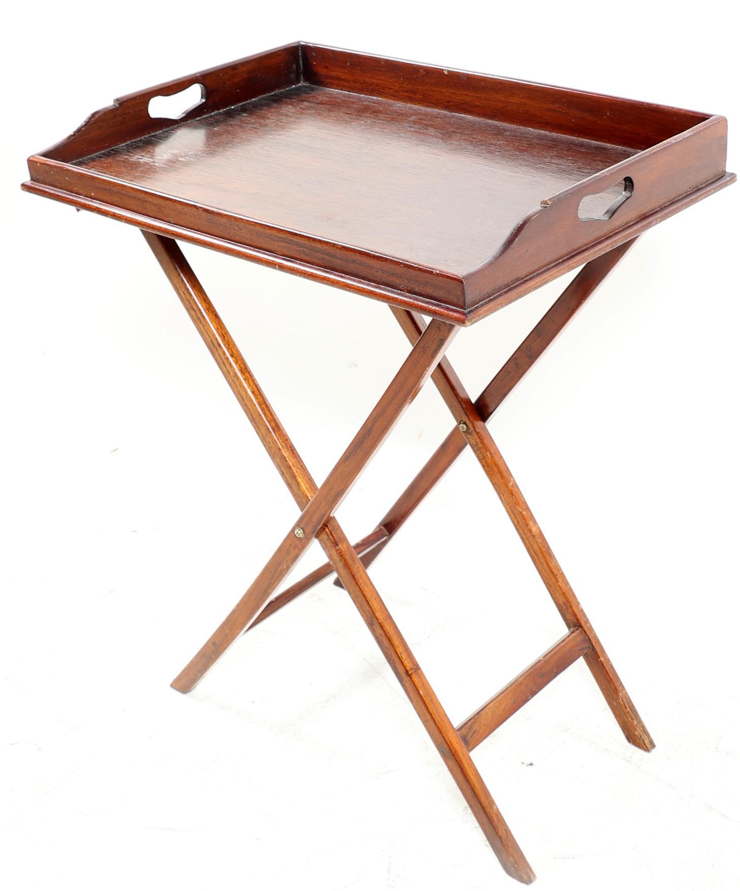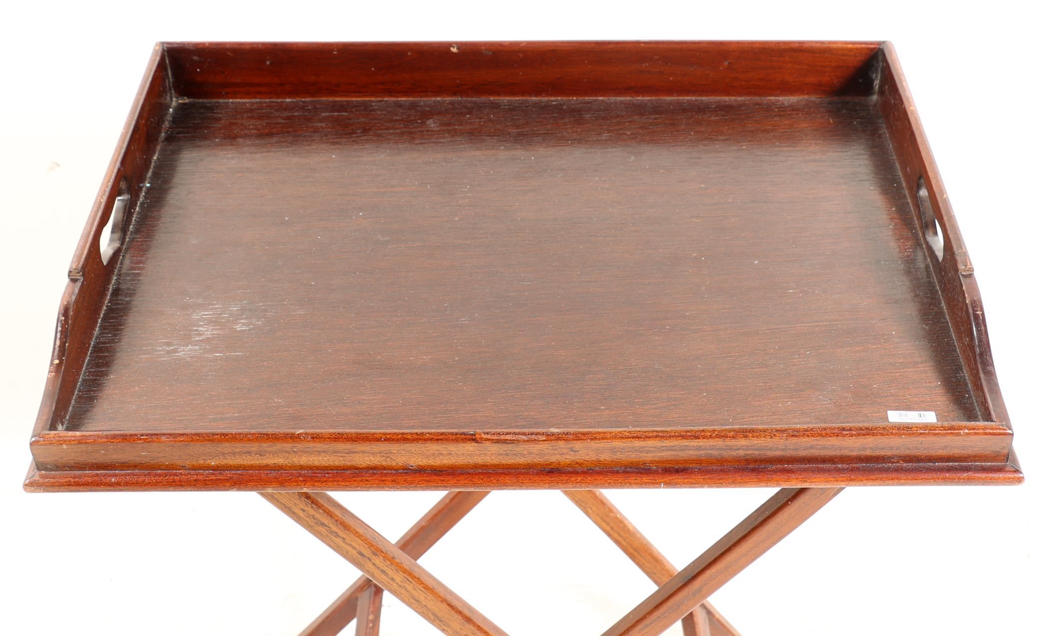 Notenhouten butlertray, h.82 x b.67 x d.47 cm.