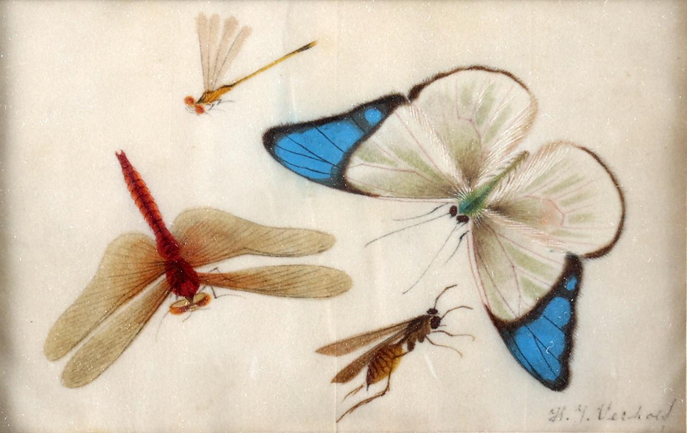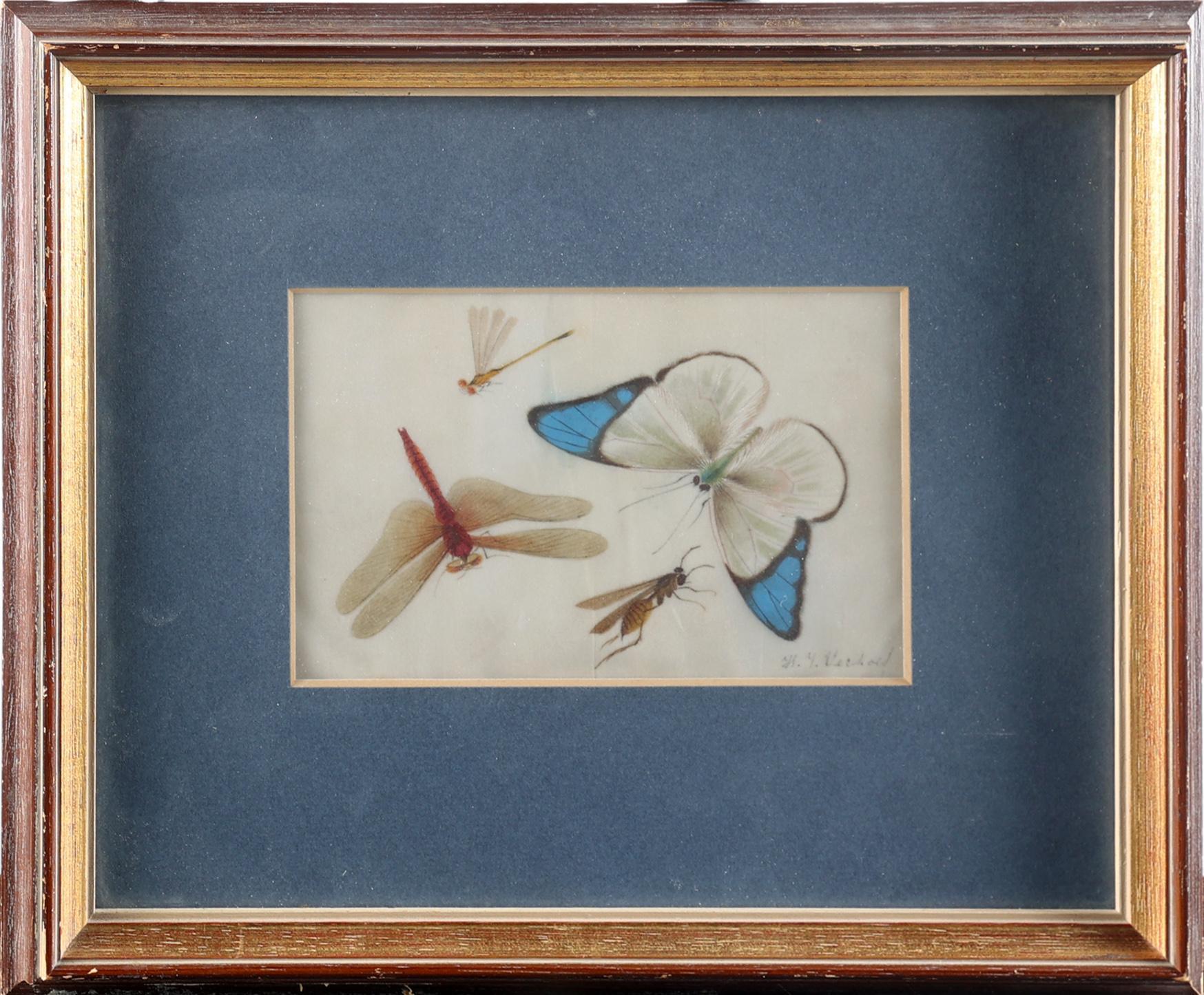 Hans Verhoef (1932-2012), Insecten, gemengde techniek, 9 x 15 cm.