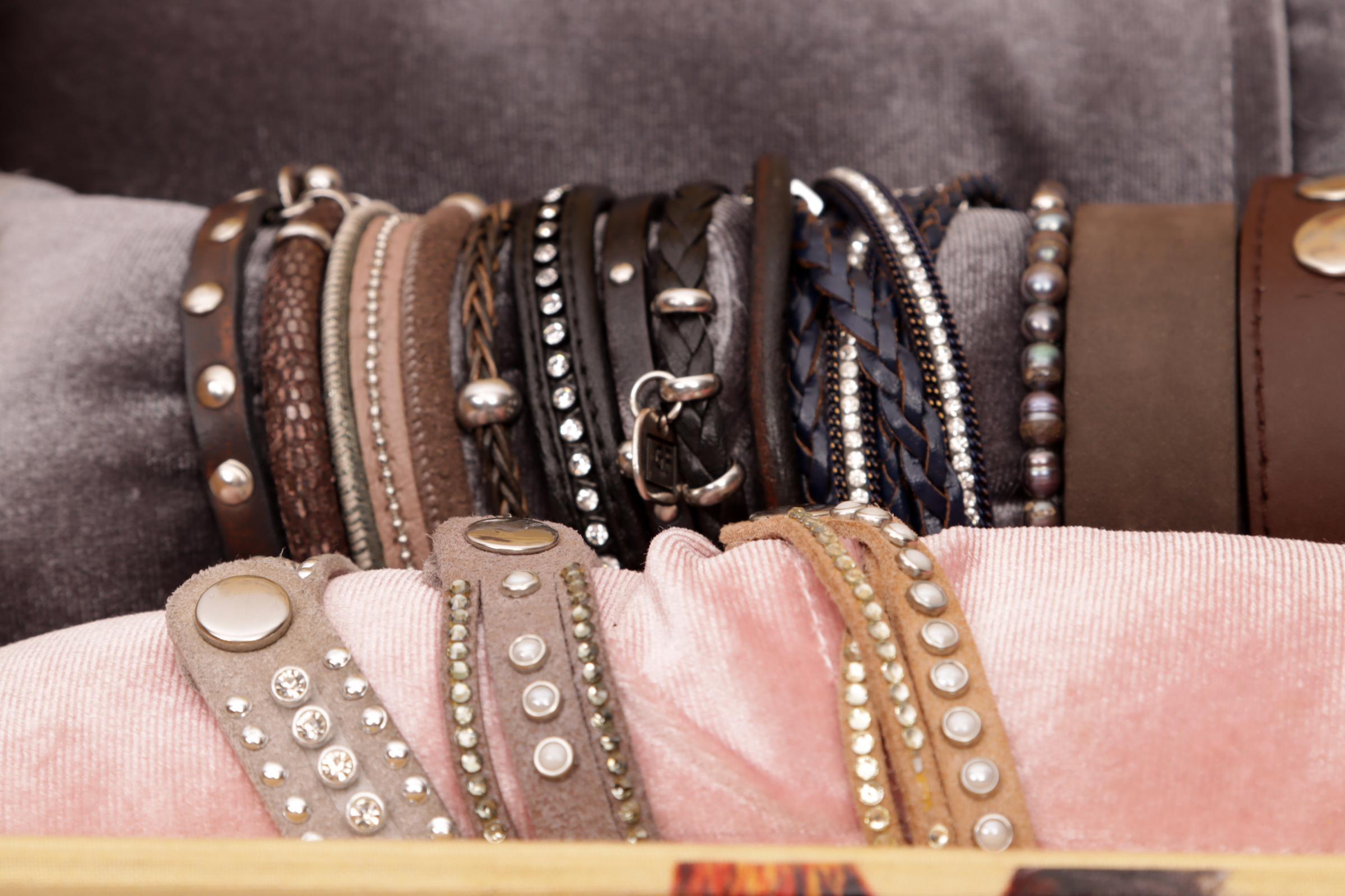 Koopje diverse lederen armbandjes, etc.