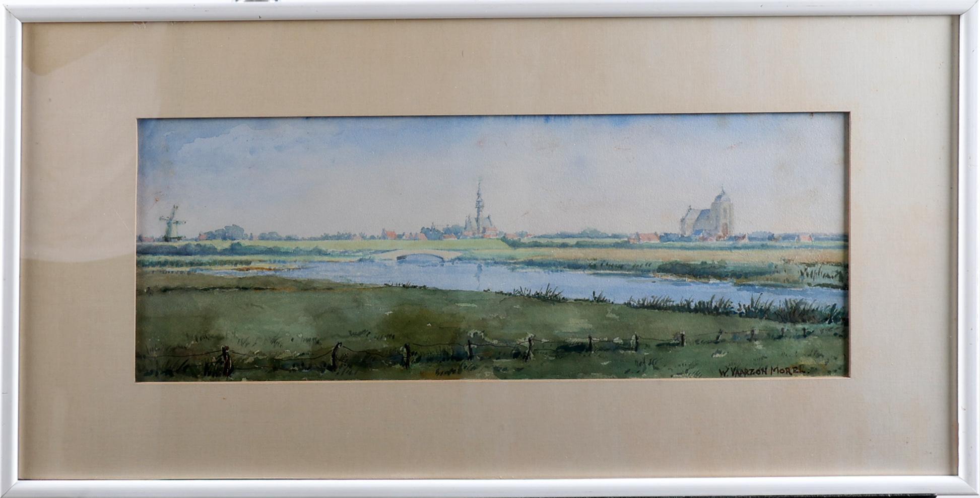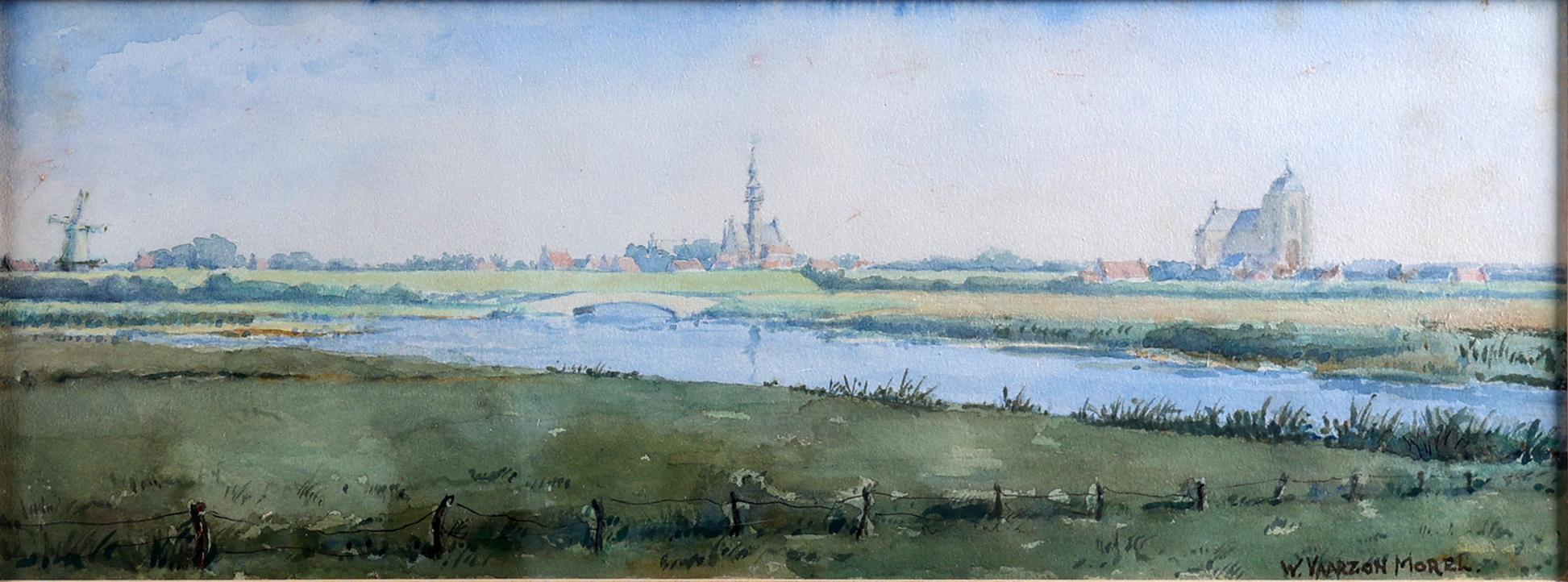Willem Vaarzon Morel (1931-2023), polderlandschap, aquarel, 18 x 49 cm.