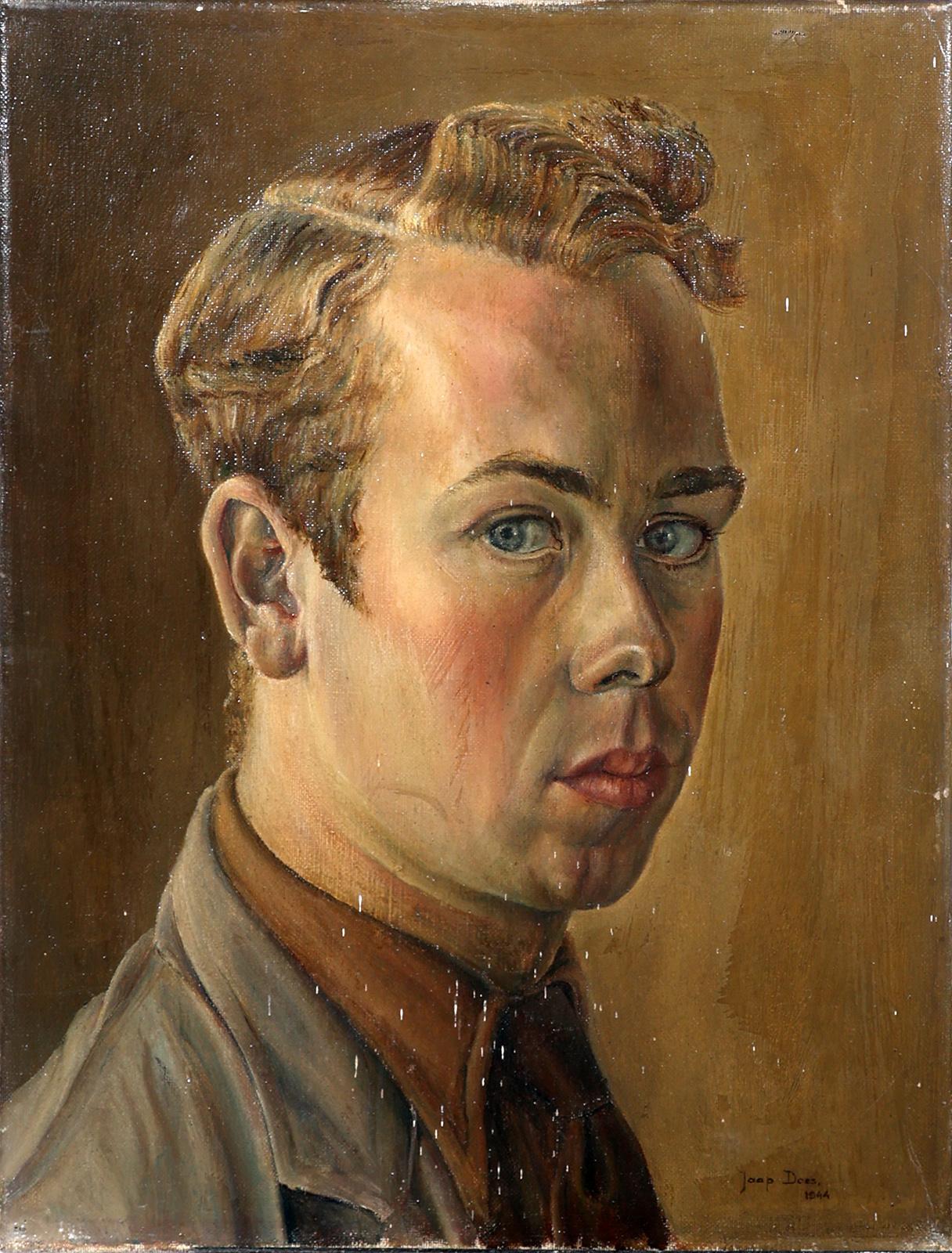 Jacob (Jaap ) Does (1924-2008), Zelfportret, olieverf op doek, 41 x 32 cm., gesigneerd r.o. en gedateerd 1944, Zelfportret, olieverf op doek, 40 x 30 cm., gesigneerd r.o. en gedateerd 1945, herkomst Atelier Jaap Does, Museums Vledder Tentoonstelling 1/12/2004 - 6/1/2008
