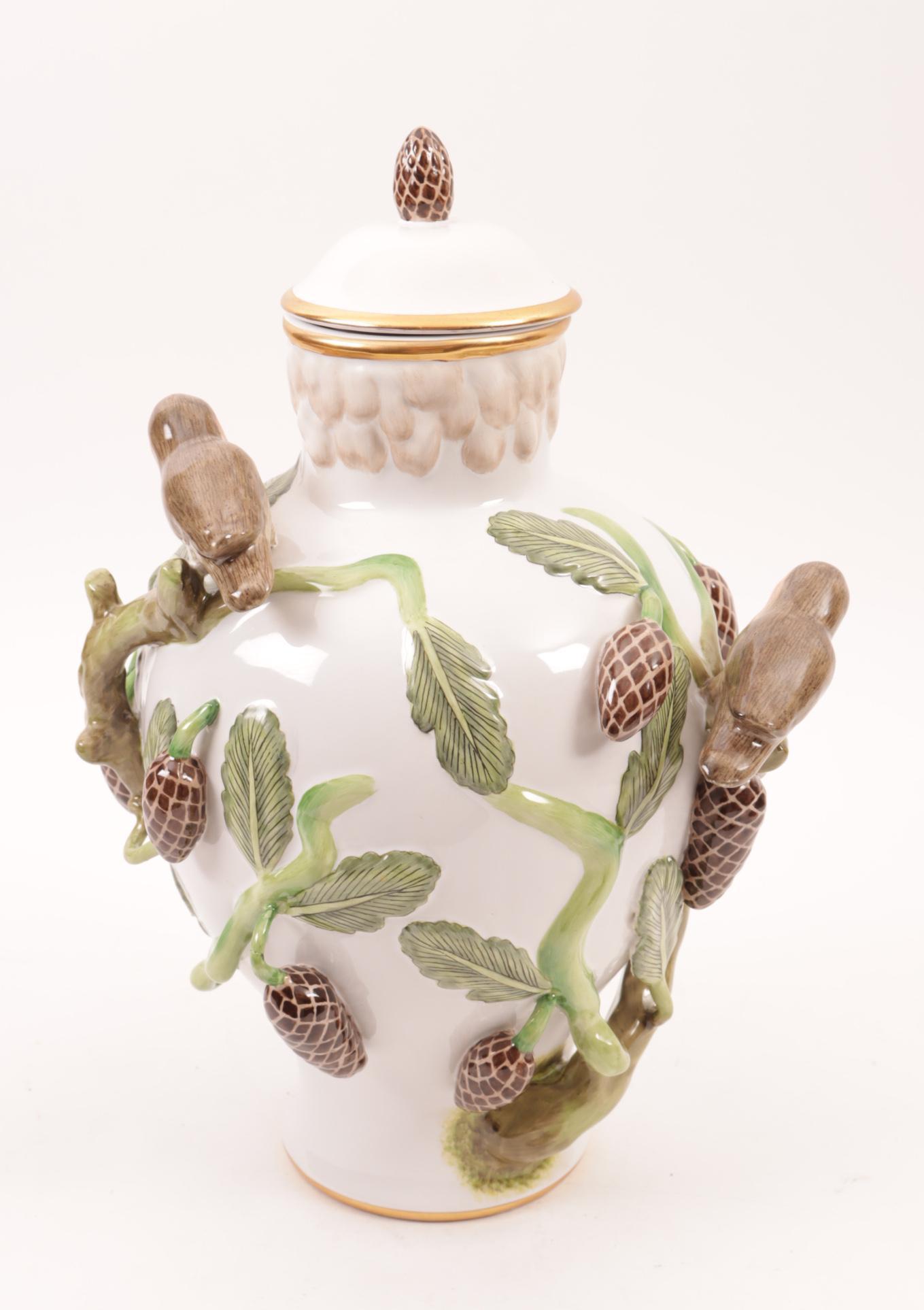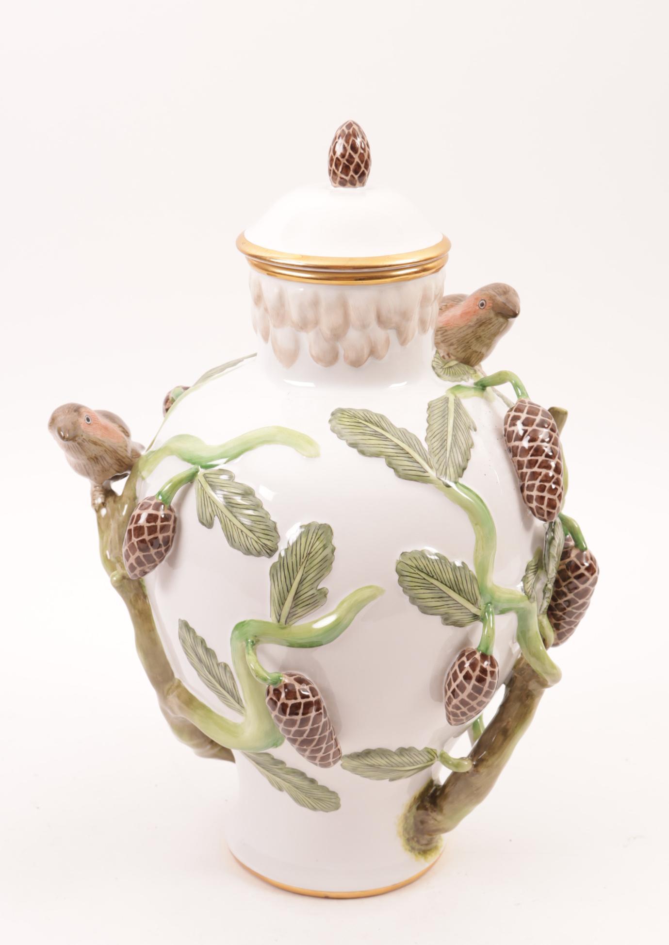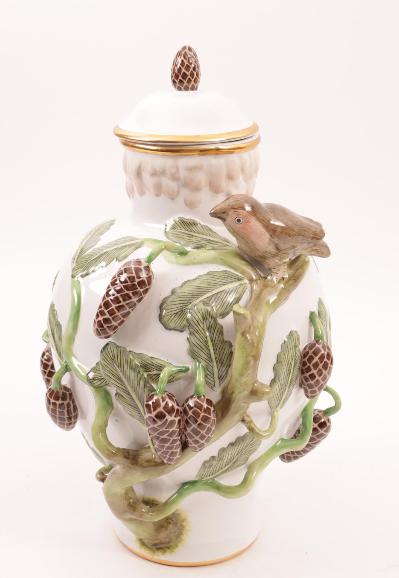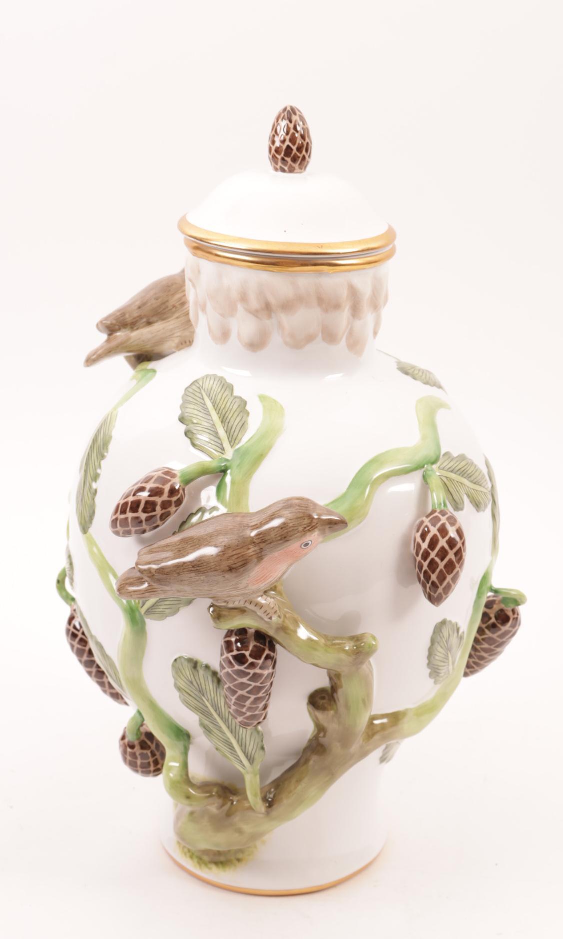 Porseleinen dekselvaas met decoraties van vogels op takken, h.35 cm.