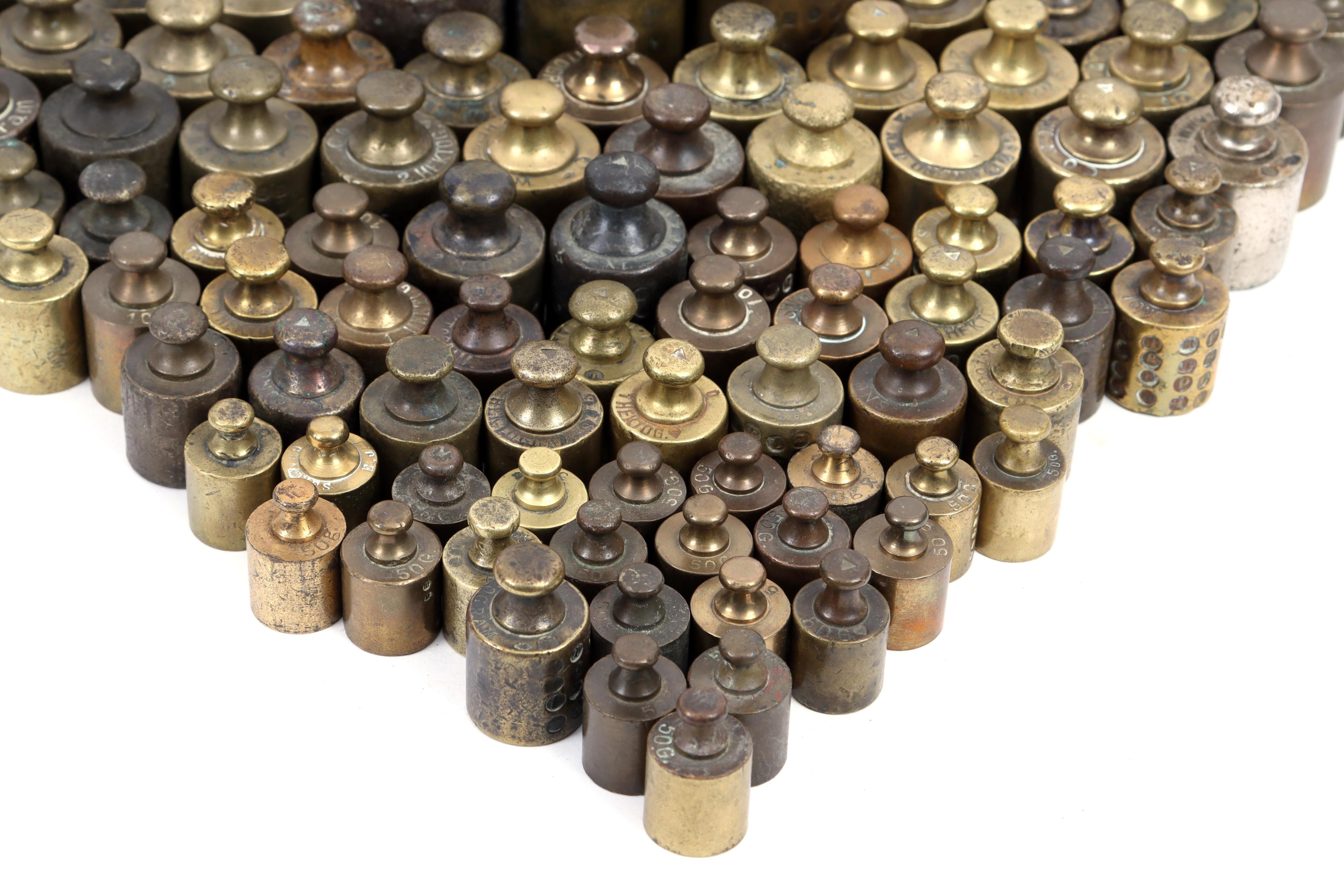 Grote koop diverse oude en antieke gewichten en een weegschaal