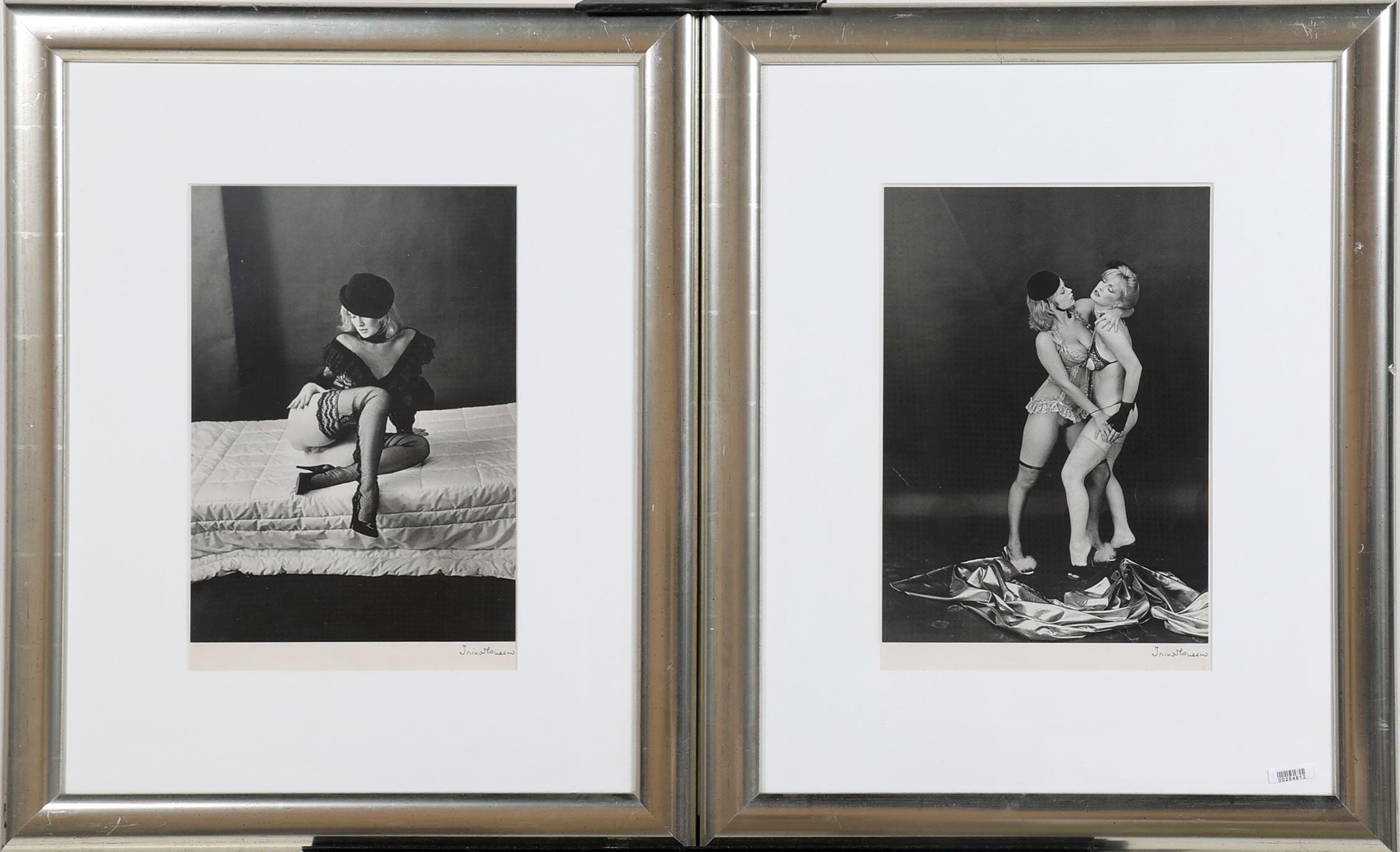 Irina Ionesco (1930-2022), twee handgesingeerde foto's, 37 x 24 cm.