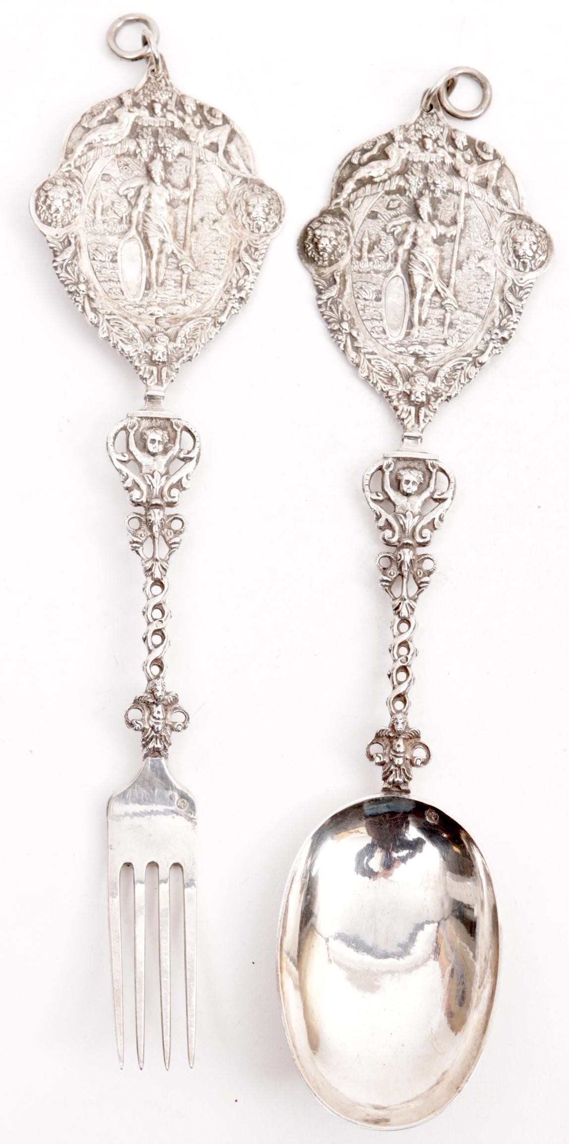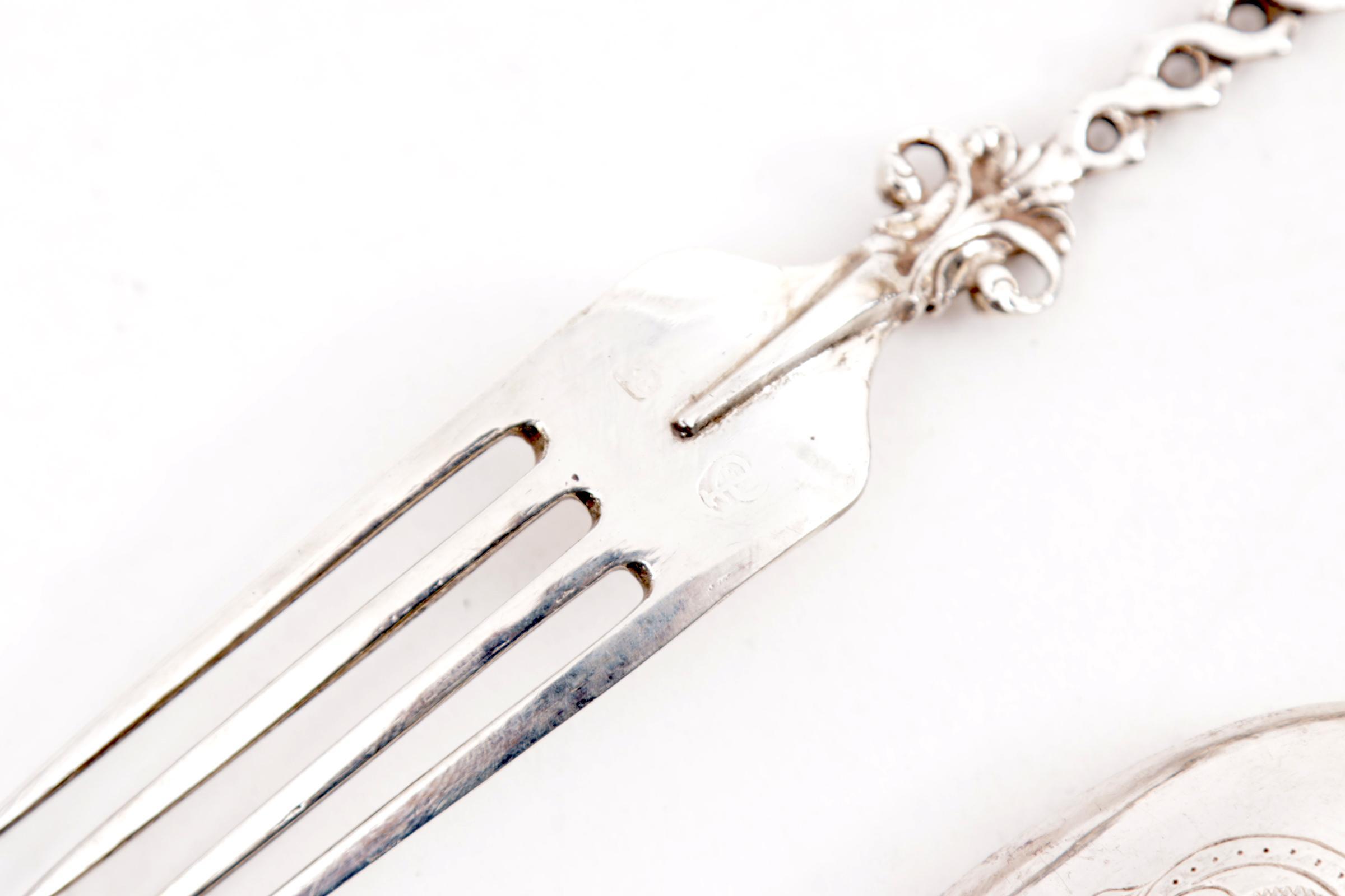 Rijk bewerkt zilveren lepel en vork, 230 gram