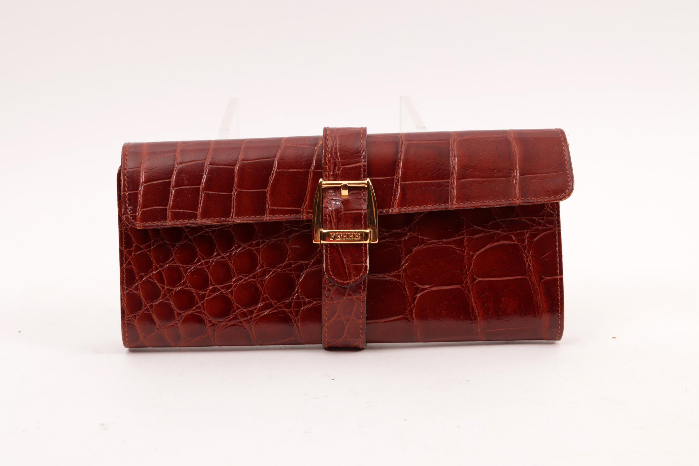 Gianfranco Ferre, vintage lederen sieradenetui met krokodillenprint