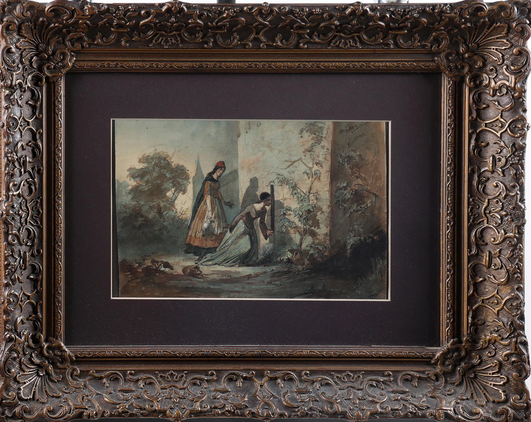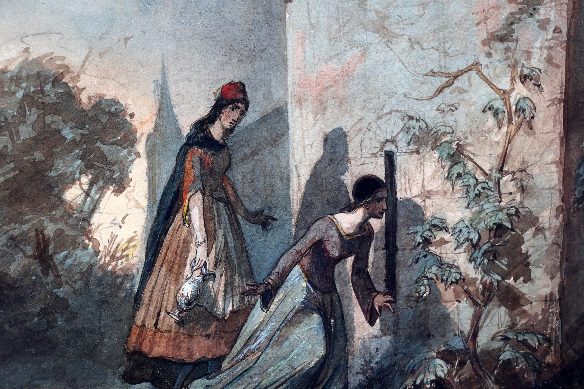 Willem de Famars Testas (1834-1896), 2 vrouwen bij een raam, gemengde techniek, 19 x 28 cm.