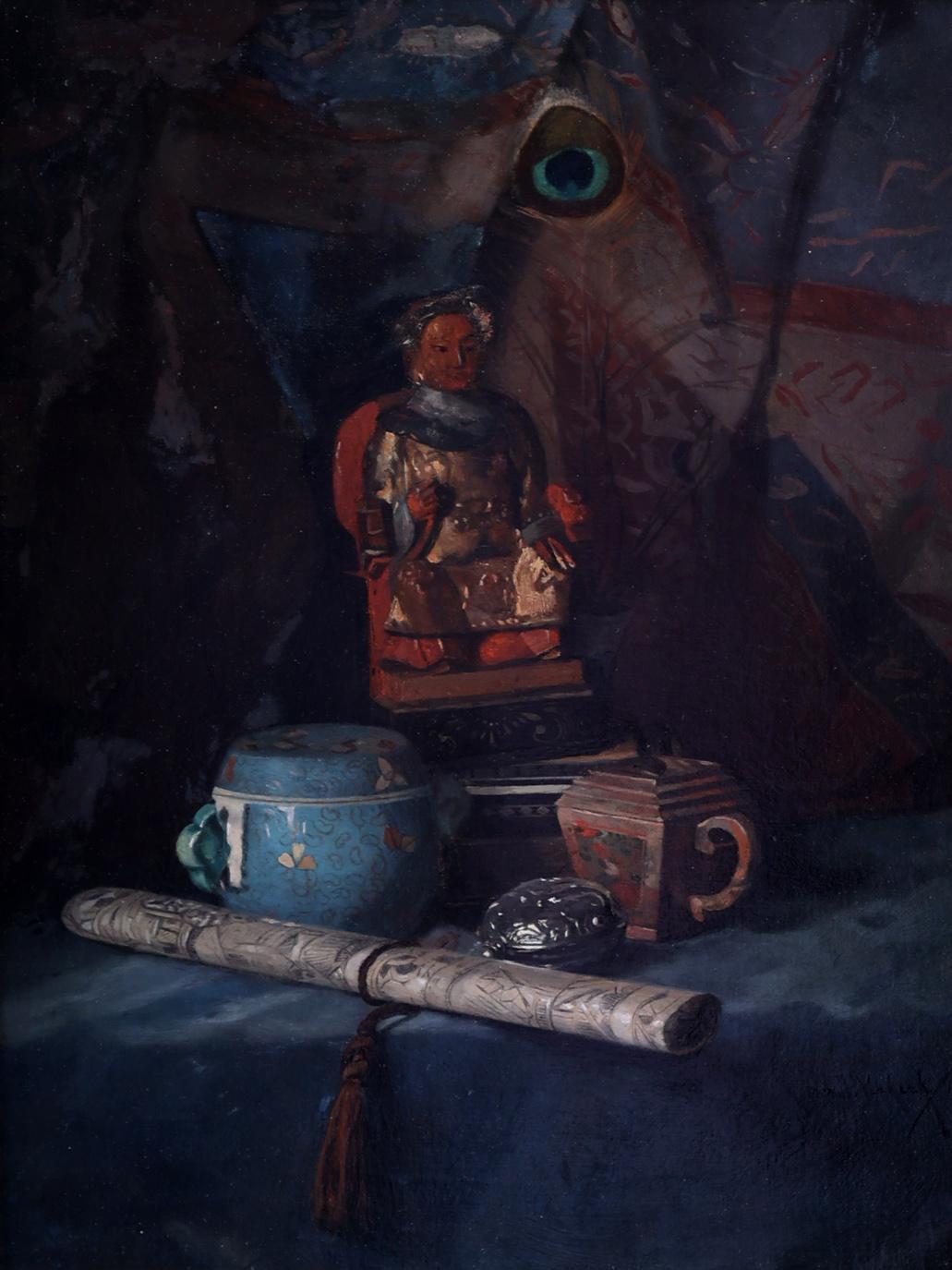 Herman M.G. Verkerk (1880-1927), Stilleven met diverse Aziatica, olieverf op doek, 47 x 36 cm.