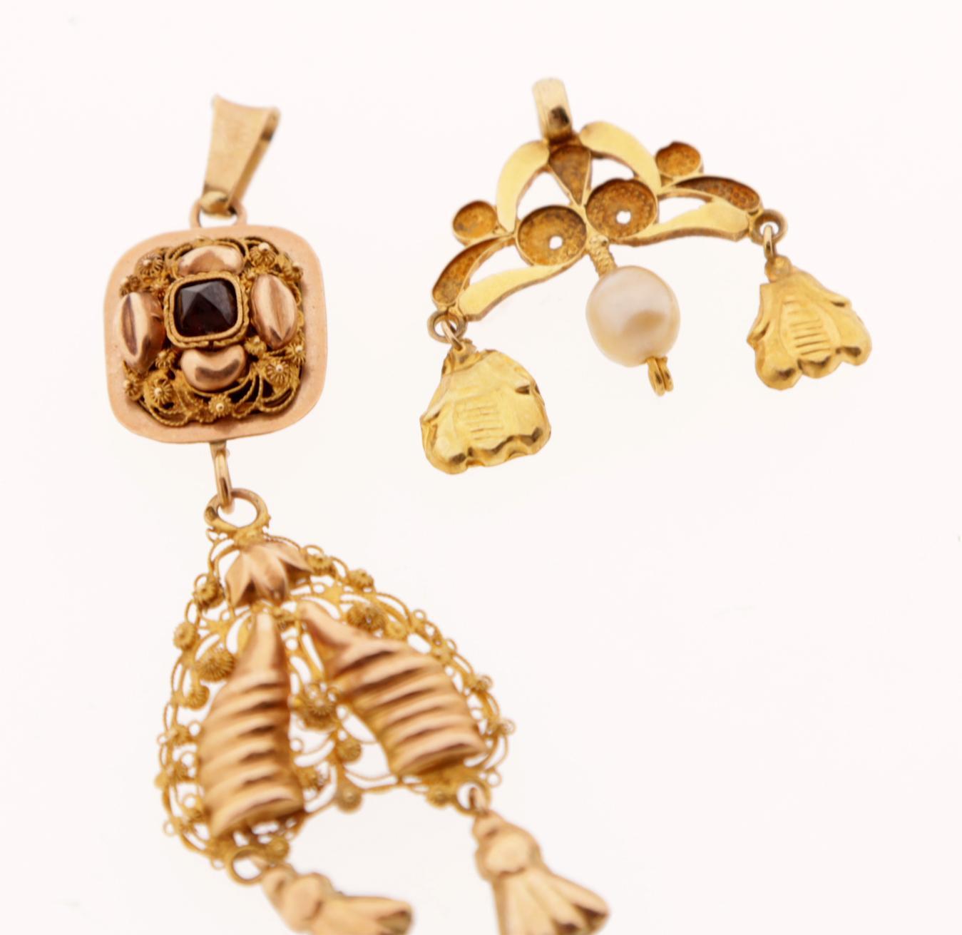 2 Diverse gouden hangers, Zeeuwse Dracht, 4,7 gram
