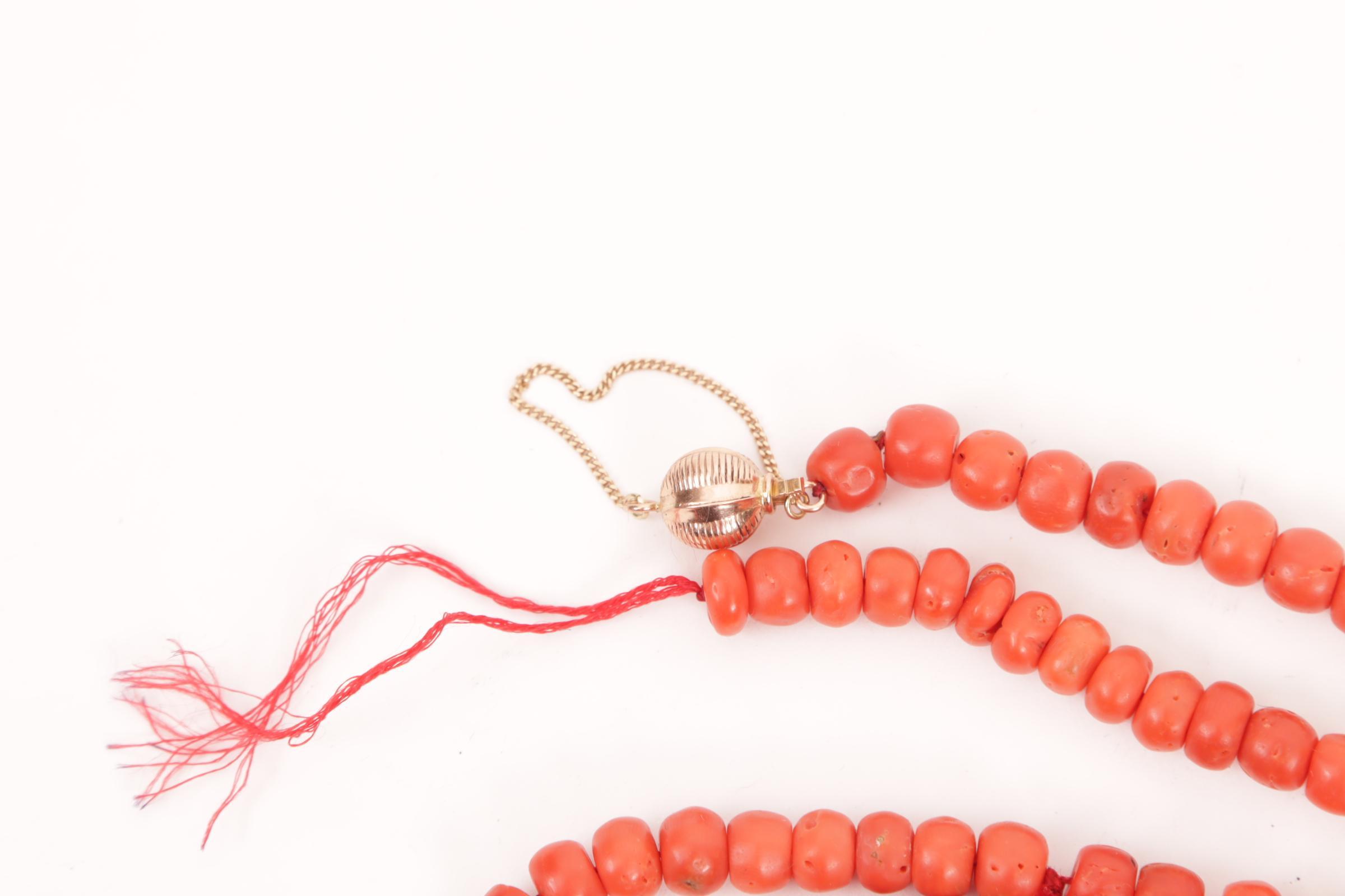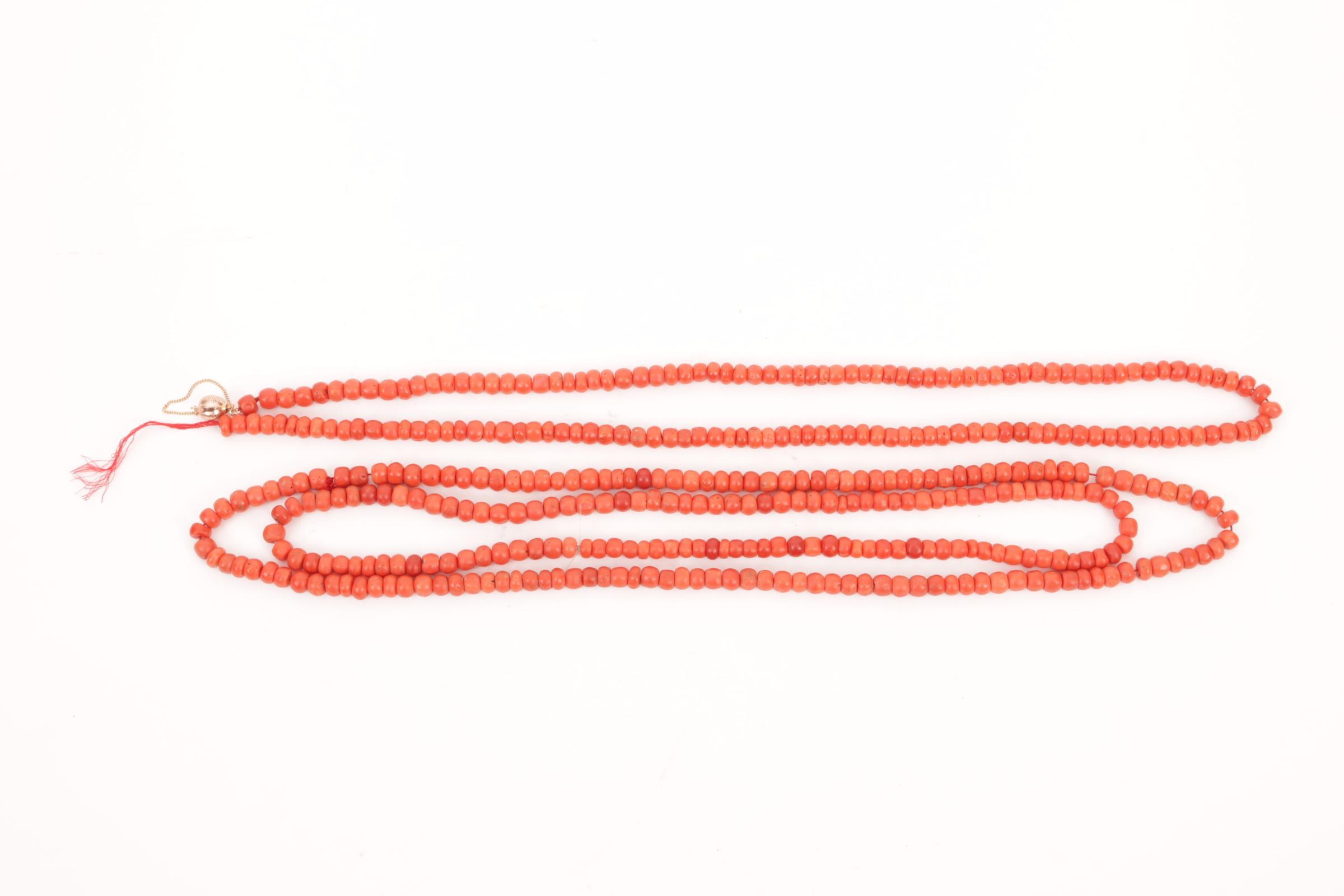 Bloedkoralen 3-strengs collier aan gouden slotje, 194 gram