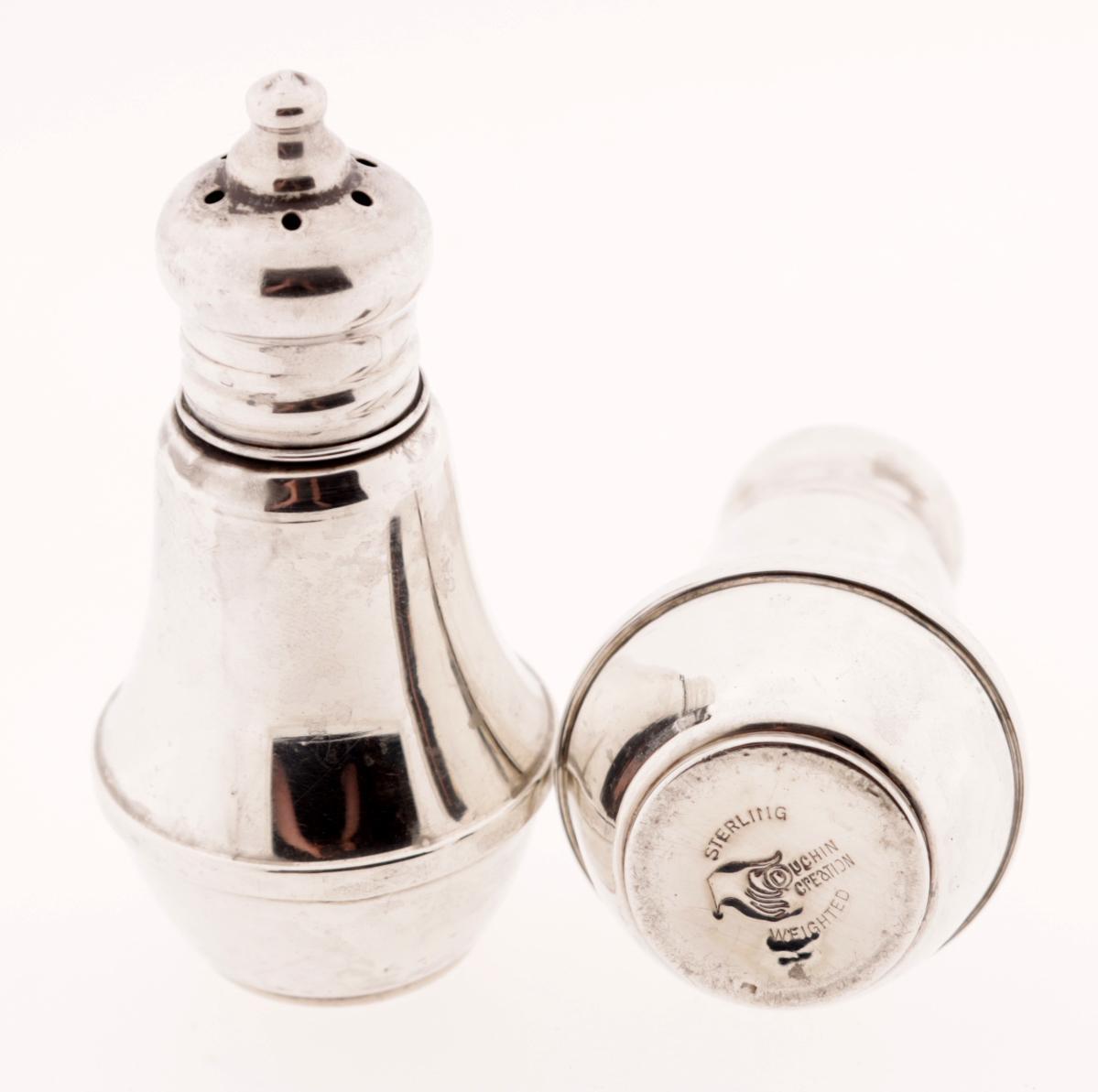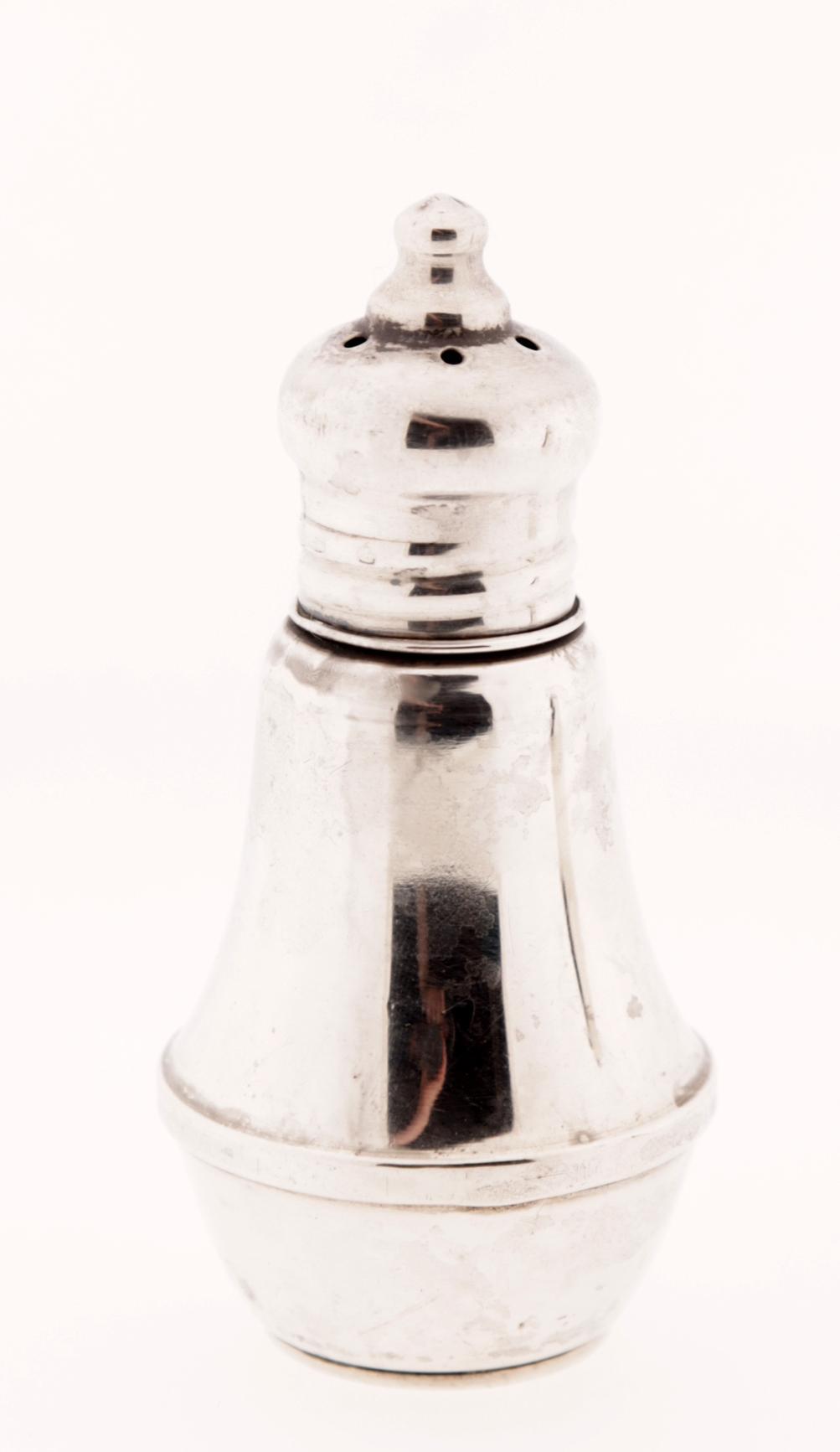 Sterling zilveren zout en peperstrooier (1 gedeukt)