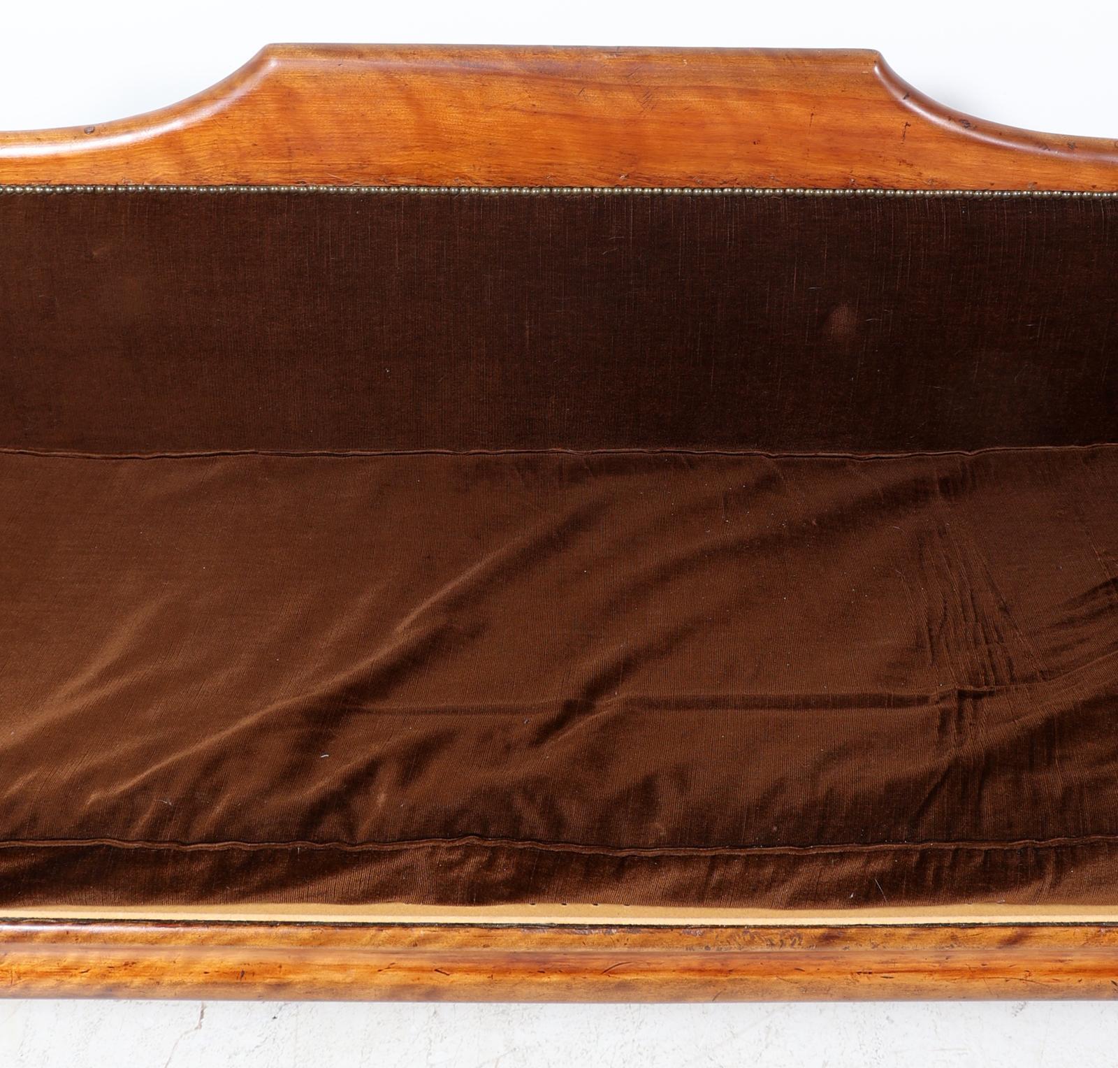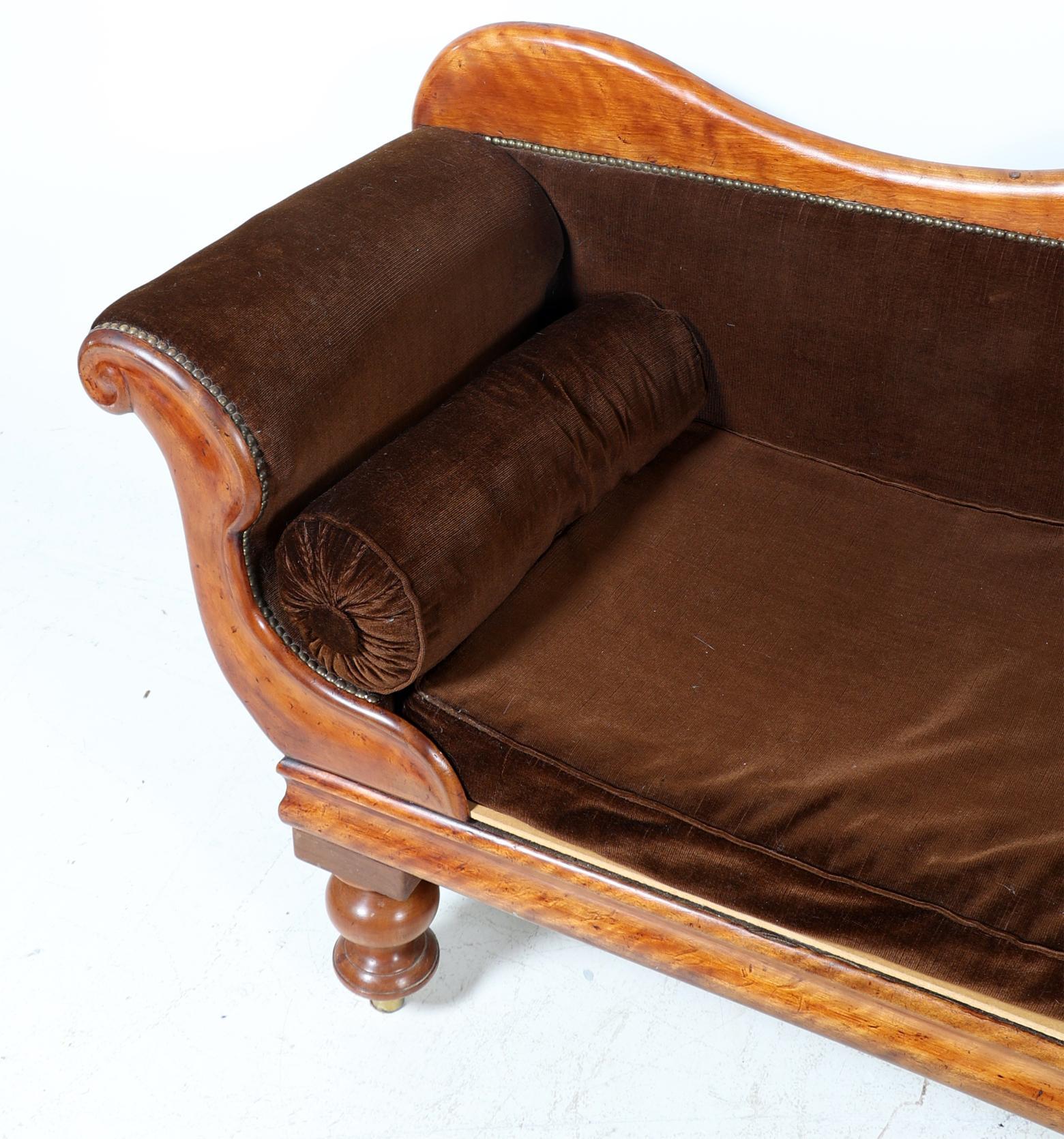 Antieke met bruin velours gestoffeerde mahoniehouten bank, Holland 1840, h.91 x b.238 x d.65 cm.