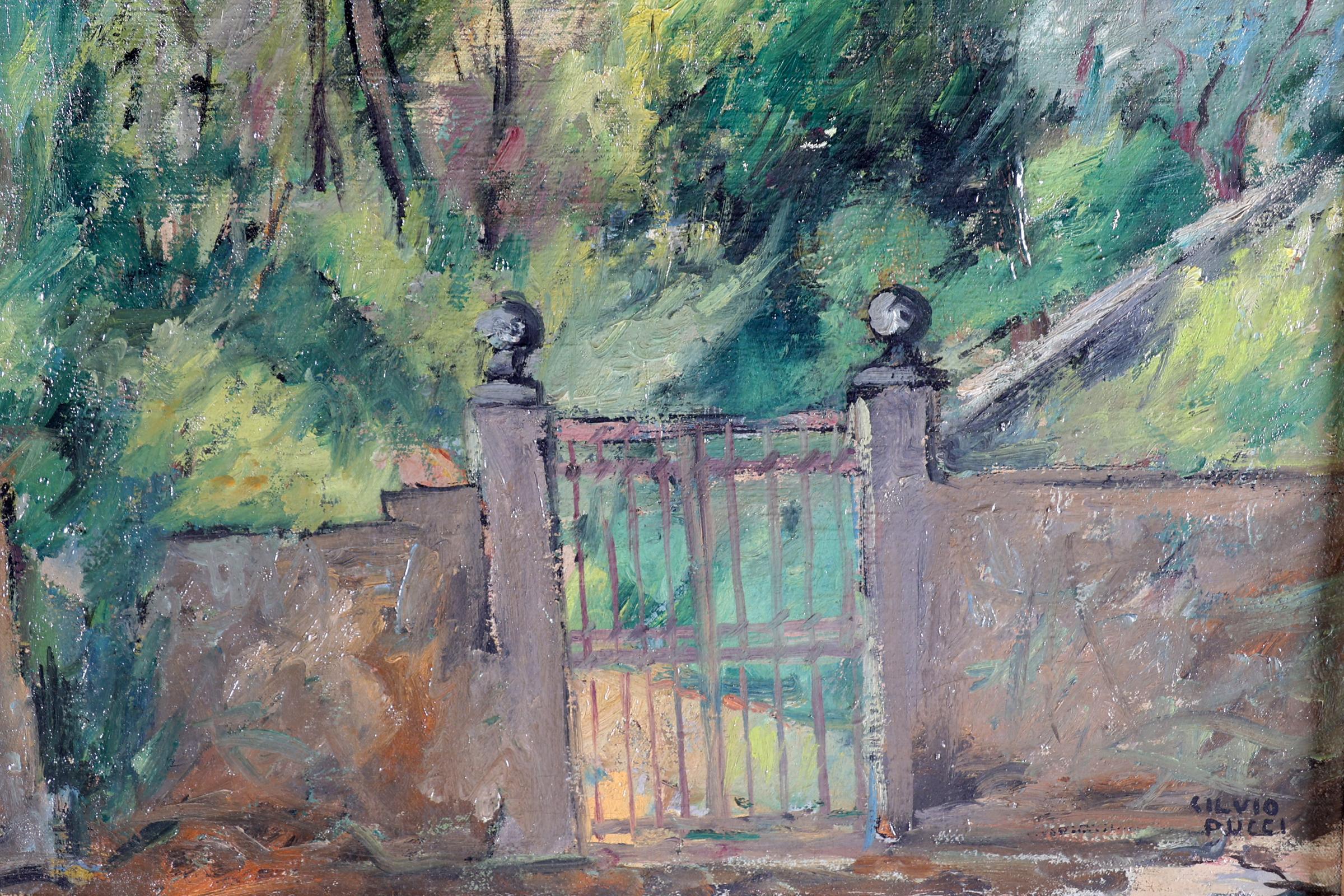 Silvio Pucci, Gezicht op tuinhek met tuin, olieverf op doek, 65 x 60 cm. of 96 x 90 cm.