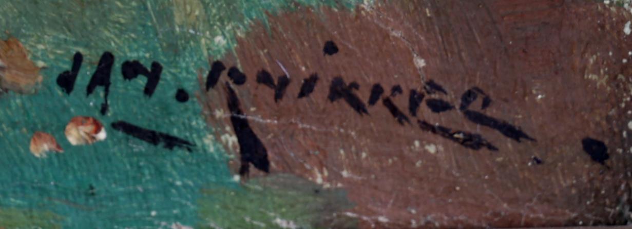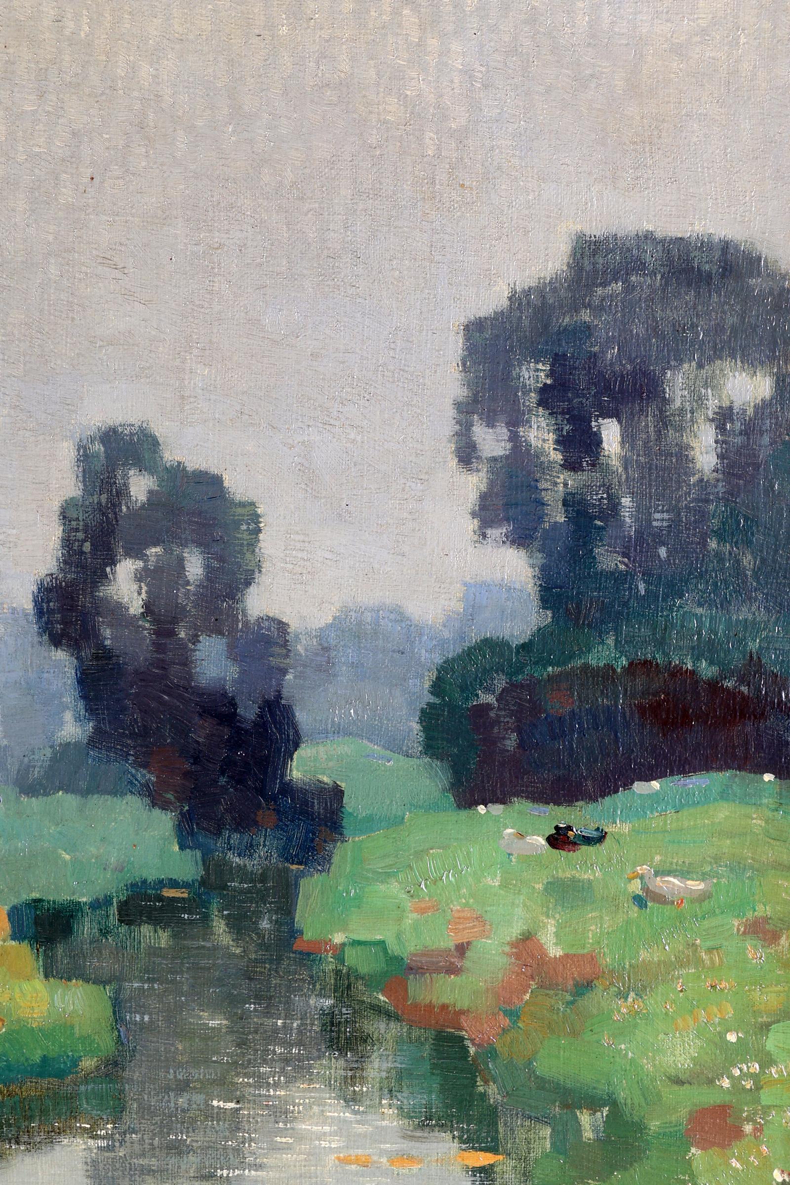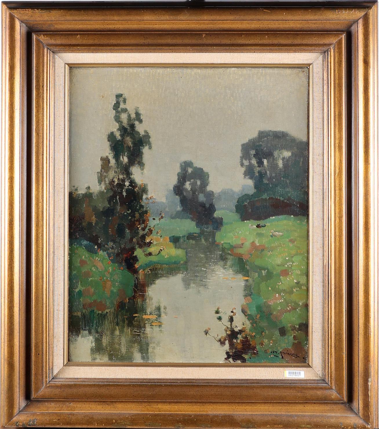 Jan Knikker, Waterrijk landschap met eenden, olieverf op doek, 52 x 40 cm.